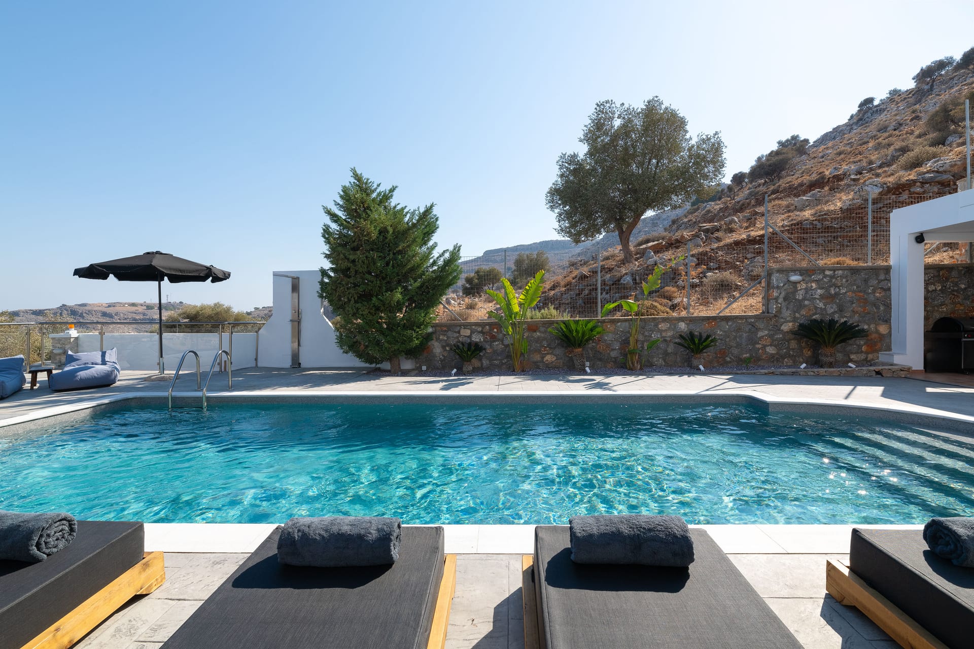 Vitzi Vista Villa is perfectly situated in the picturesque Vliha area, just minutes from the historic village of Lindos. With its iconic whitewashed houses, ancient Acropolis, and charming cobbled streets, Lindos is a treasure trove of history and culture. The villa is only 1.5 km from a pristine beach and 600 meters from a bus station, offering easy access to nearby attractions. Rhodes Town, a UNESCO World Heritage Site, is just 42 km away, while the airport is a convenient 52 km drive. This prime location combines serene seclusion with proximity to some of Rhodes' most iconic destinations.