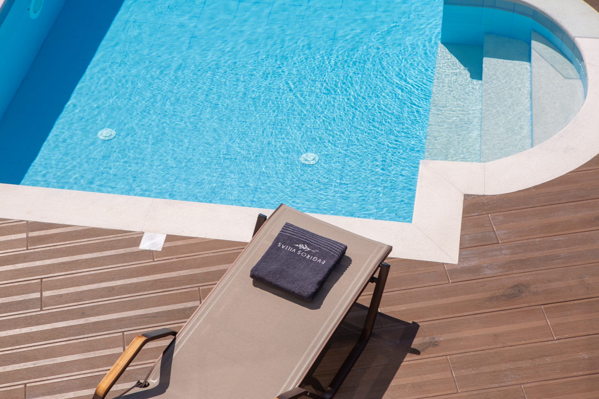 On the ground floor of the villa, guests have access to an open space, where you can find a spacious living room, a fully equipped kitchen with dinning table and a WC. A smart TV and a radio are also available for you to relax and have fun! The ground floor offers direct access to the pool and the lounging are for a comfortable stay in mind.