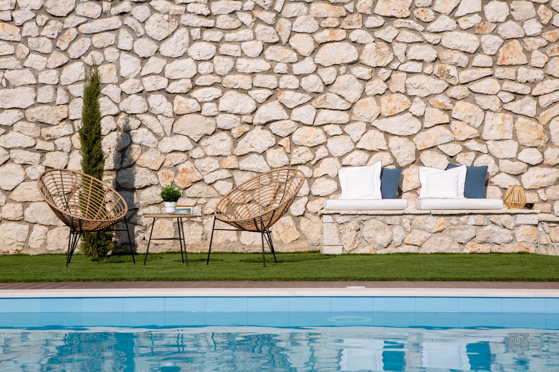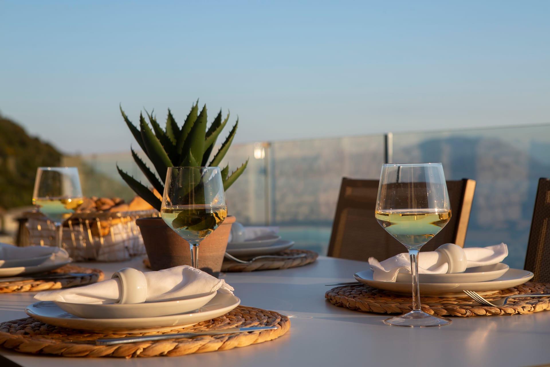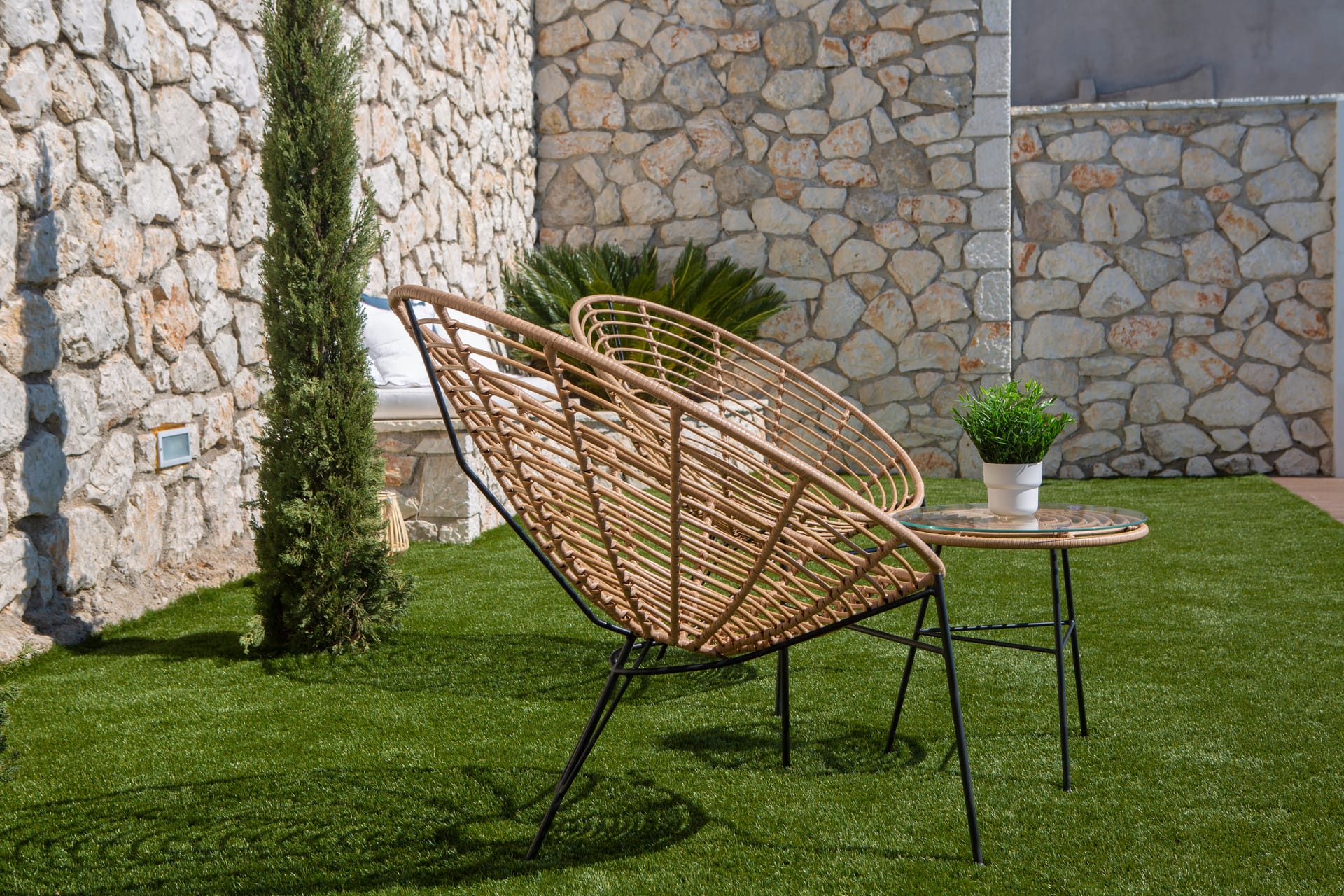 Taking the stairs up, you will find the two bedrooms of the villa. Both with its own bathroom, giving you the privacy that you need in order to feel like home. Also, both have their own small balcony settings so you can enjoy your morning coffee in peace or take look at the starts right before you go to sleep. One with a double bed and the other with two singles that can easily be united in case of preference. All bedrooms are effortlessly equipped with high quality beds and mattresses, wardrobes, TVs and air conditioning.