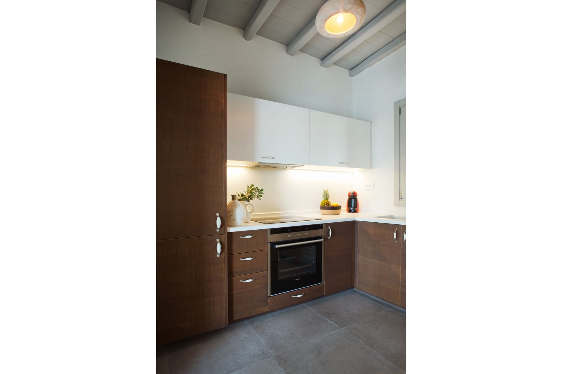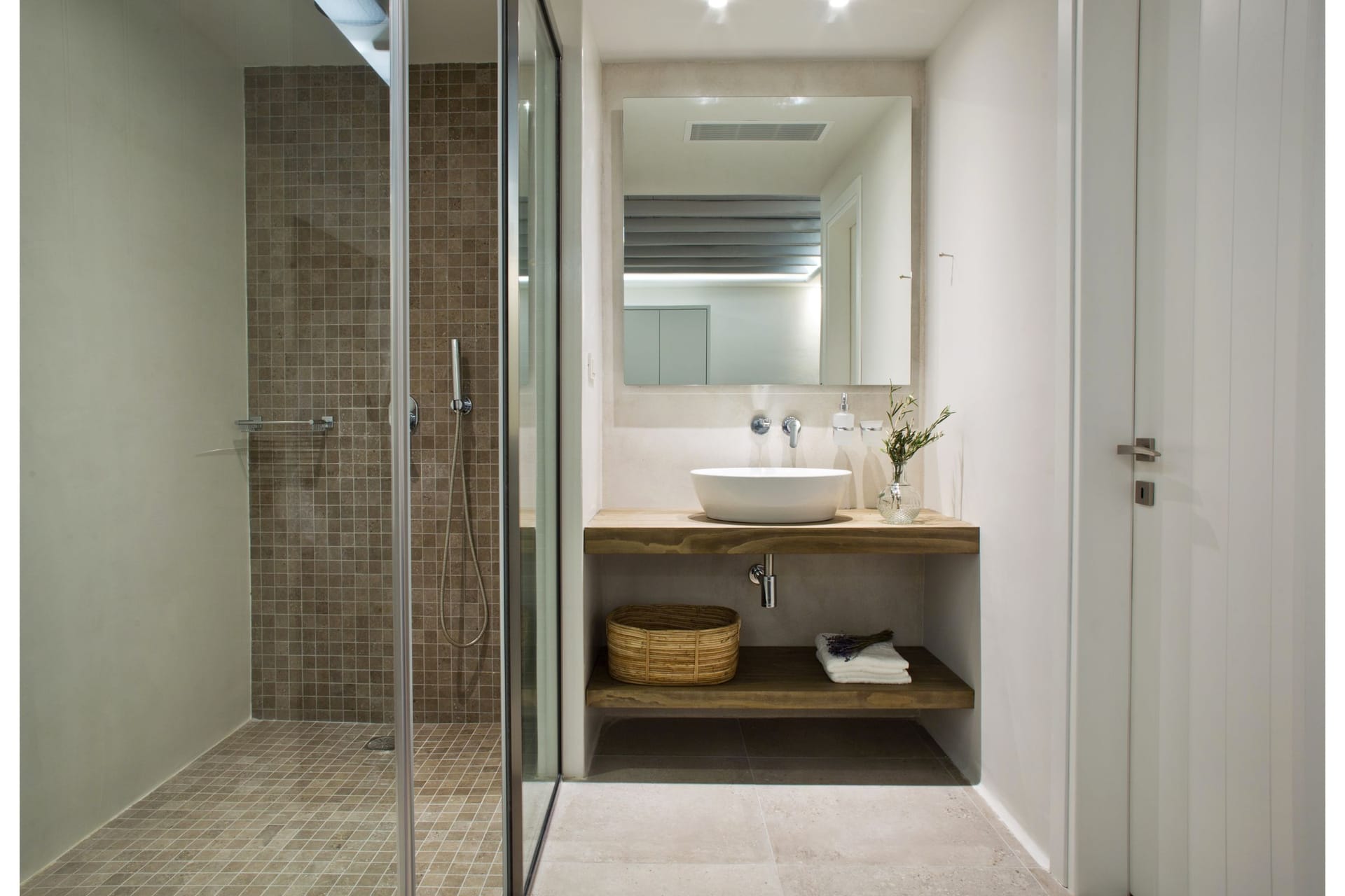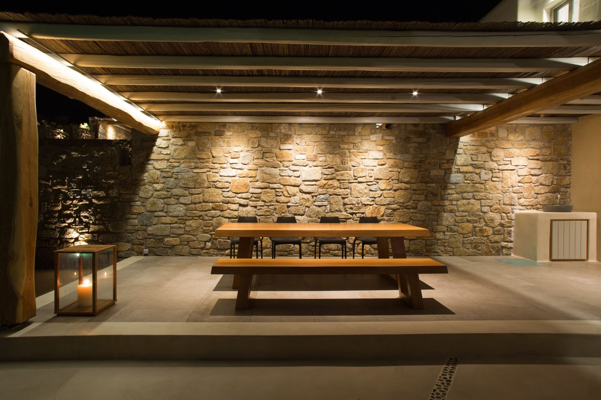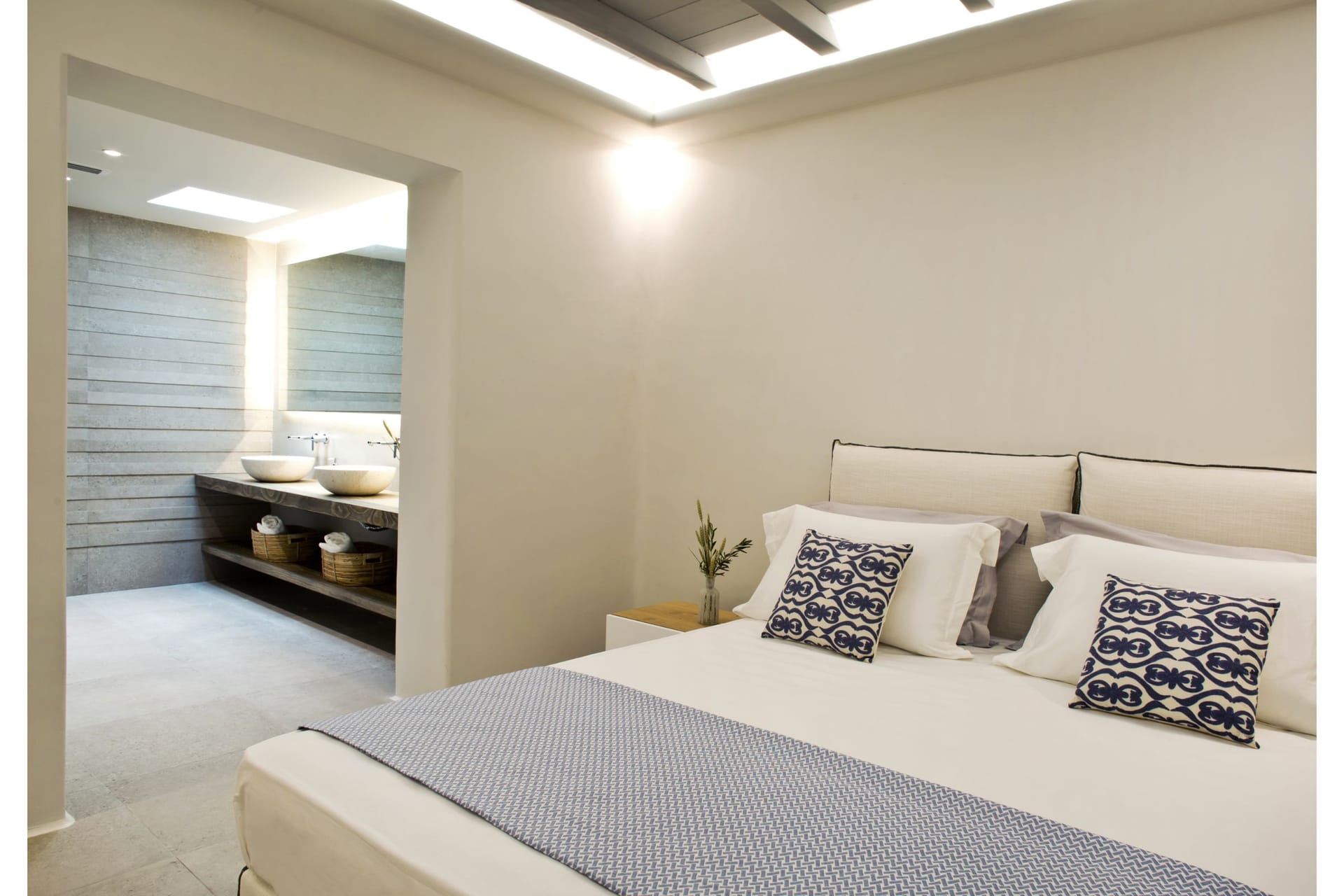 The residence is a fusion of traditional whitewashed Cycladic architecture with modern minimalism, island pallete of colors and natural, locally sourced stone adorns in the interior and exterior of the home – providing a naturally cool, ‘clima effect.’ On the outside, the large private pool offers a breathtaking view of the sleepless sea and the nearby islands. True highlight of the property is the newly built and fully equipped state-of-the-art gym in of 31sq.m, that offers great views of the area.