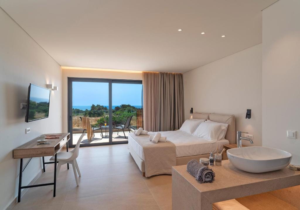 - Whitewashed minimal Mykonian design
