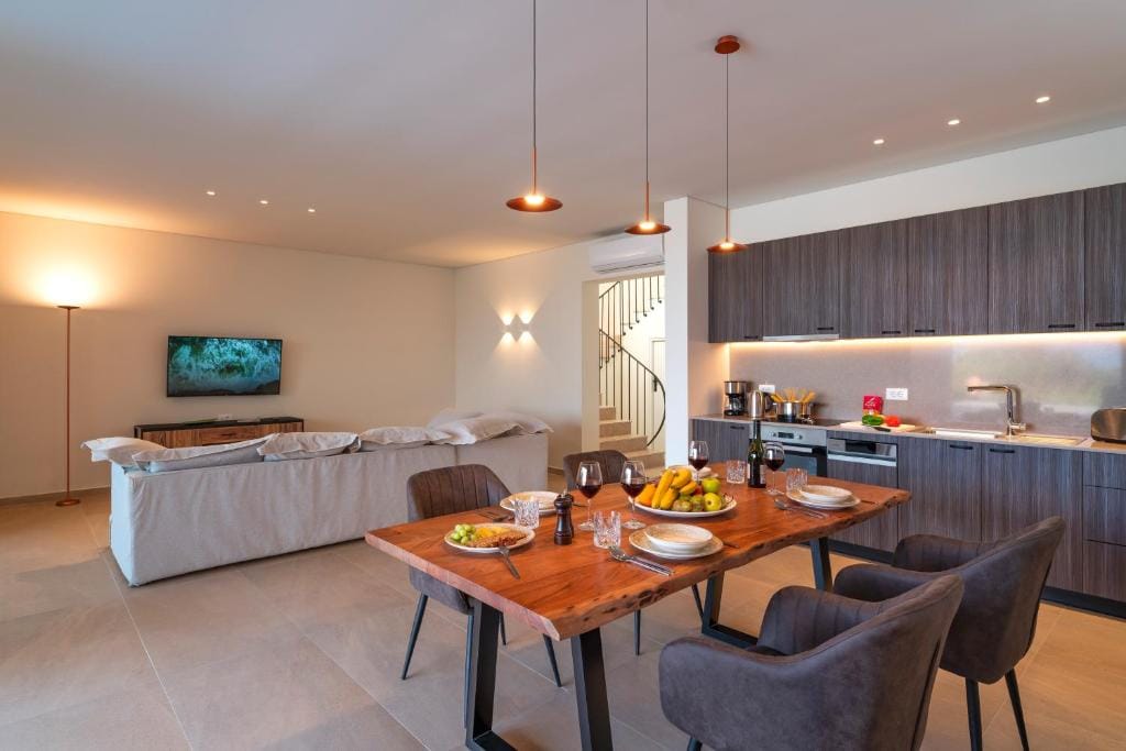 The estate can accommodate 14 guests. It is stretches on multiple levels: the ground floor, the lower ground floor and the first floor and consists of 7 en suite bedrooms total, which someone can find in the Main Villa.
