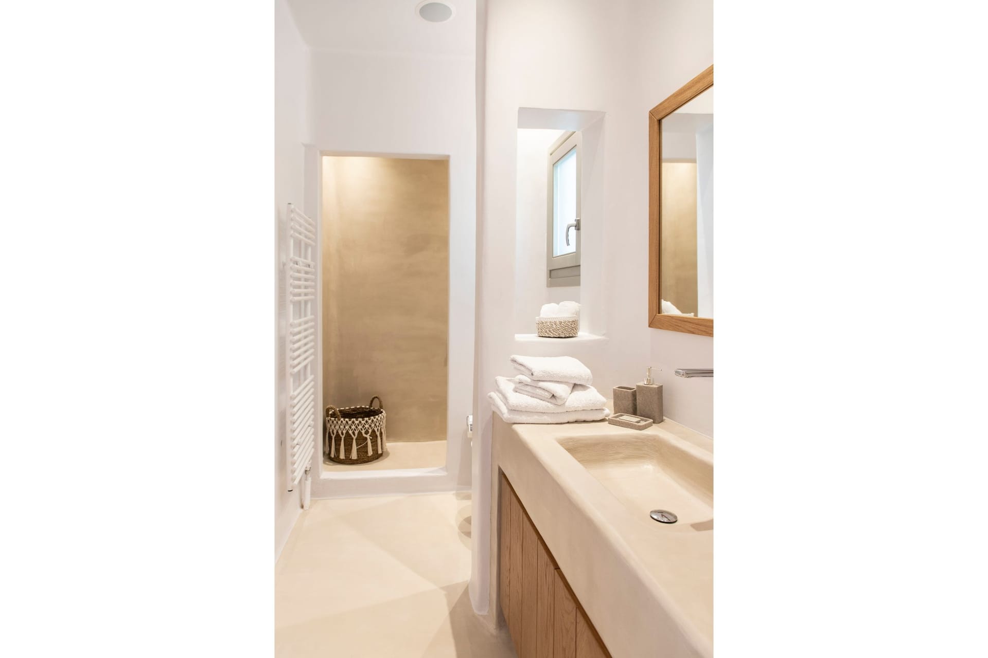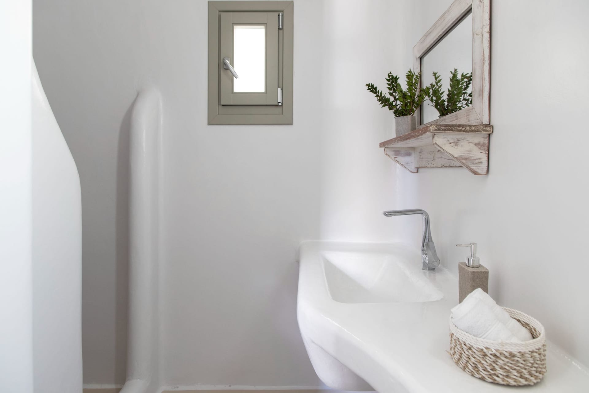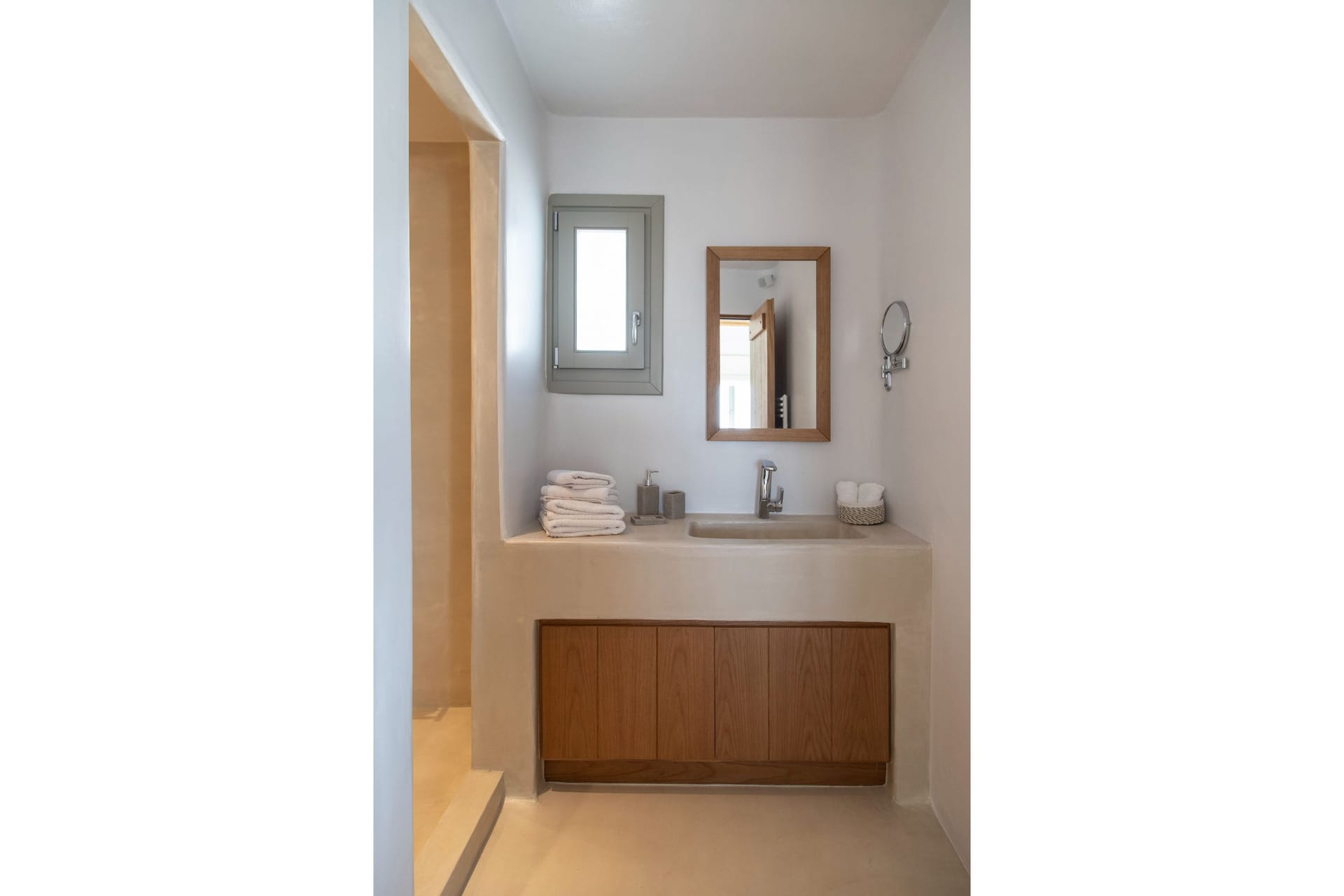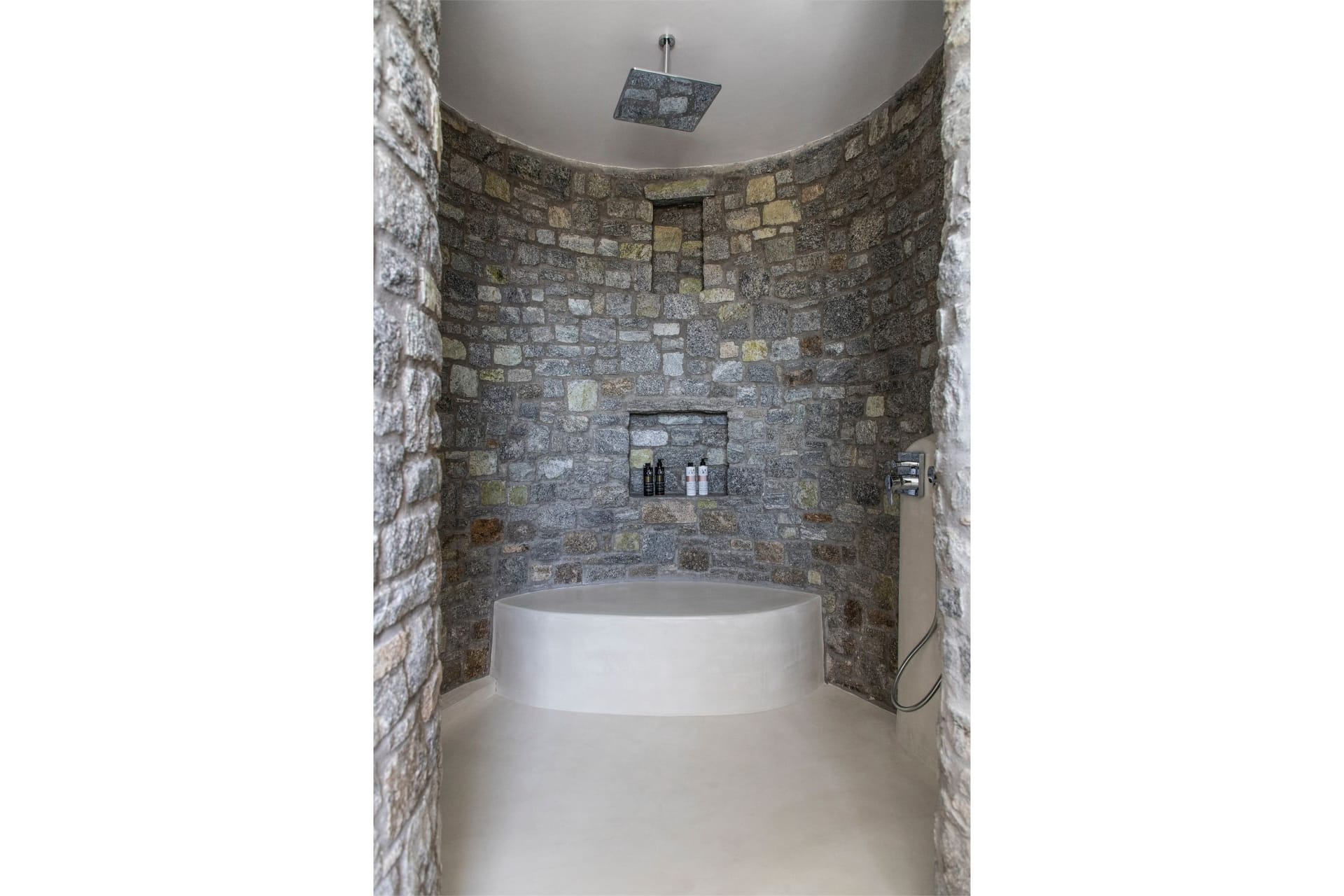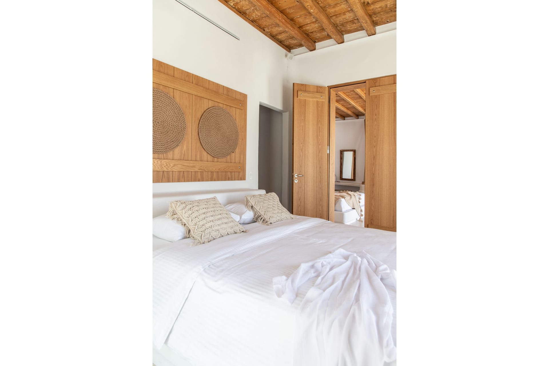 The Villa offers 5 Bedrooms, 3 guest houses and 2 Staff bedrooms with en suite bathrooms that may comfortably accommodate 16 guests. The Villa is separated in 4 different units, the main Villa and 3 Guest Houses. The main Villa is a 2-floor building; the ground floor consists of a spacious living, dining, kitchen area as well as indoor bar, and 2 staff en-suite bedrooms. The first floor has a spacious indoor lounge area, 3 bedrooms observing the islands of Paros and Naxos offering unique Aegean sea views and the 4th en suite bedroom has a northwest orientation. On the 2nd floor there is a Master Bedroom, amazing sunset views looking at Paros, Naxos, Tinos, Syros, Delos and Rhenia islands. Furthermore, the Guest House, is under a private church within the property and has panoramic views of the Aegean and the neighboring islands. The Garden house has traditional features with beautiful sea, pool, garden, and vineyard views. The Vineyard house is in front of the vineyard and has also very nice sea and garden views. All three guest houses have their own private open patio room space, kitchenette and en suite bathrooms.