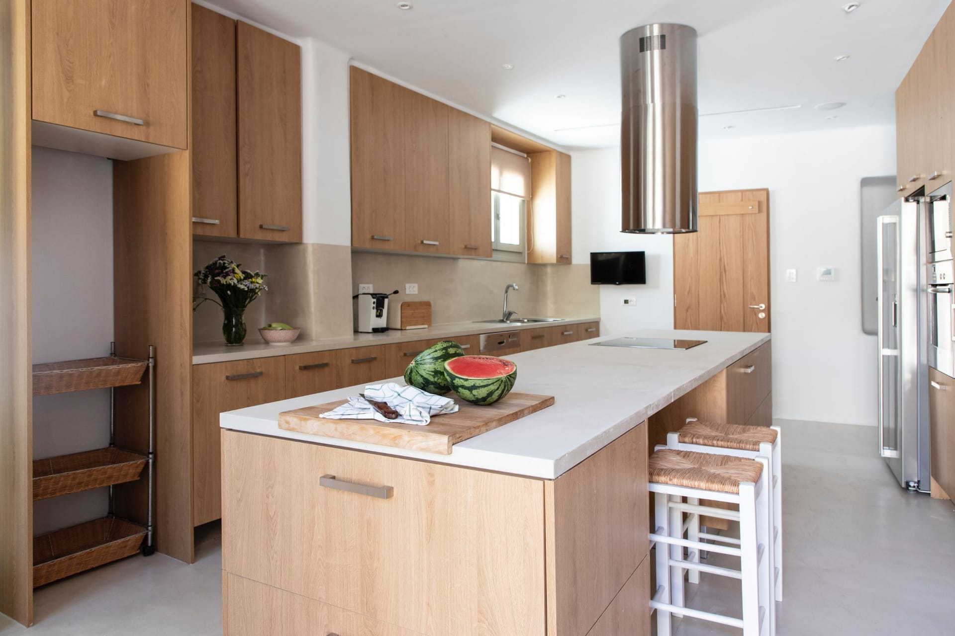Keros Villa has one of a kind sunset & Aegean views from each corner of this property and it’s located in the area of Kounoupas, which is in the center of Mykonos island. This magnificent property has its own Vineyard, Wine cellar, private Chapel, Smart house system and private pool, a combination that it makes you feel that you are the God of the island of the winds.