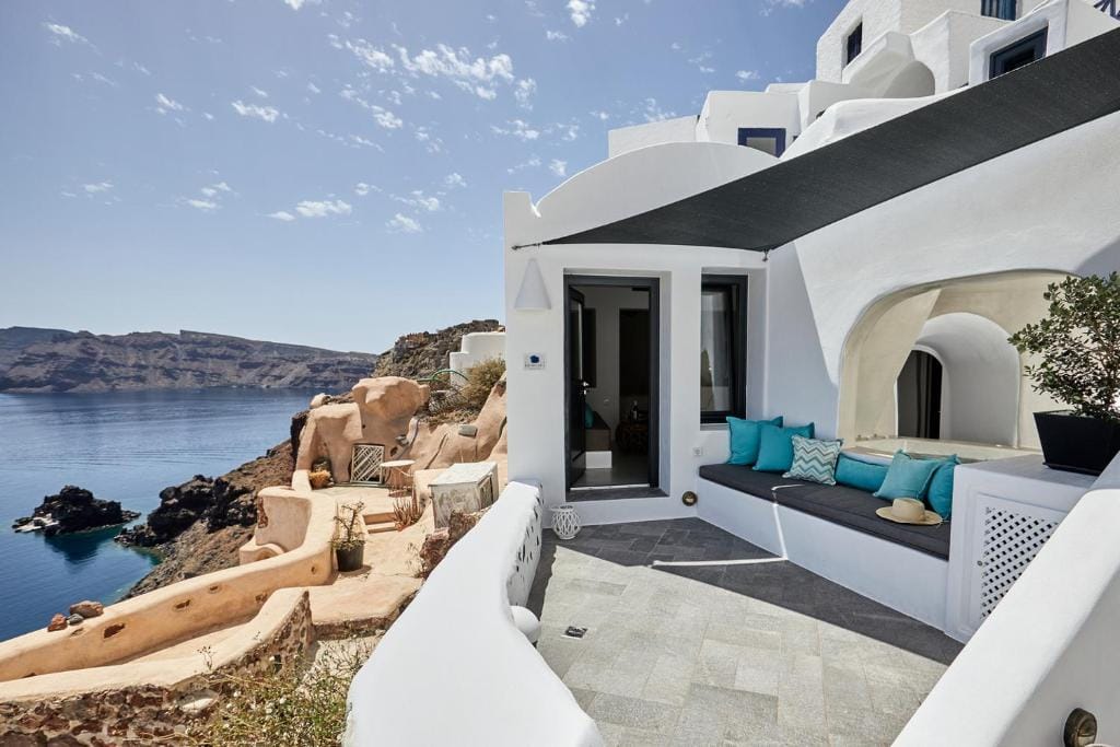 Spacious and filled with natural light, the mezonate is arranged over two levels, with the ground floor measuring 35m² and the first floor 33m². The room features a private pool on the ground level and an outdoor hot tub on the first-floor terrace, creating two distinct private outdoor experiences.