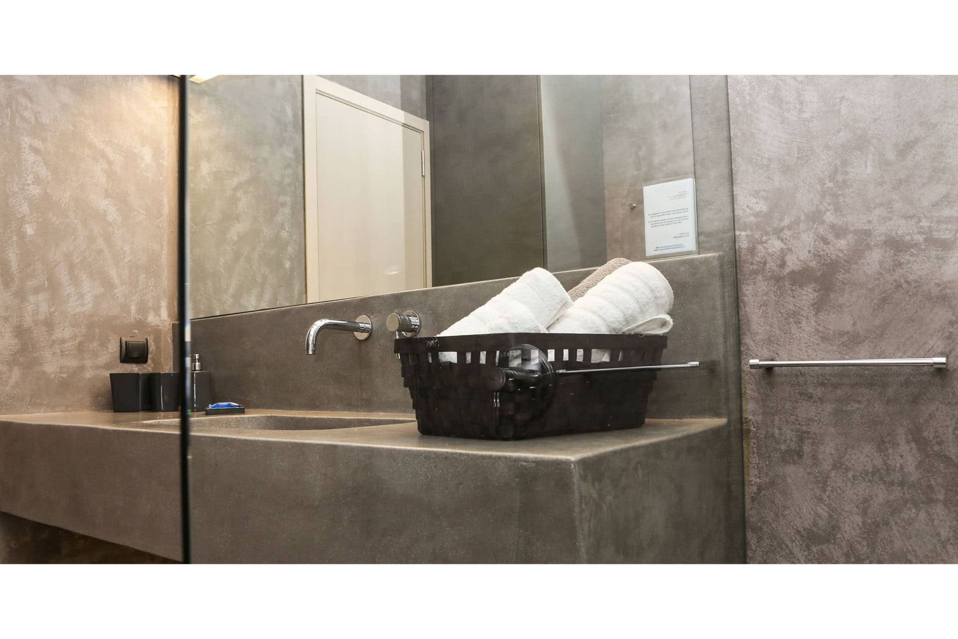 bathroom, with access to a sea view balcony that leads to the exterior pool and garden space.