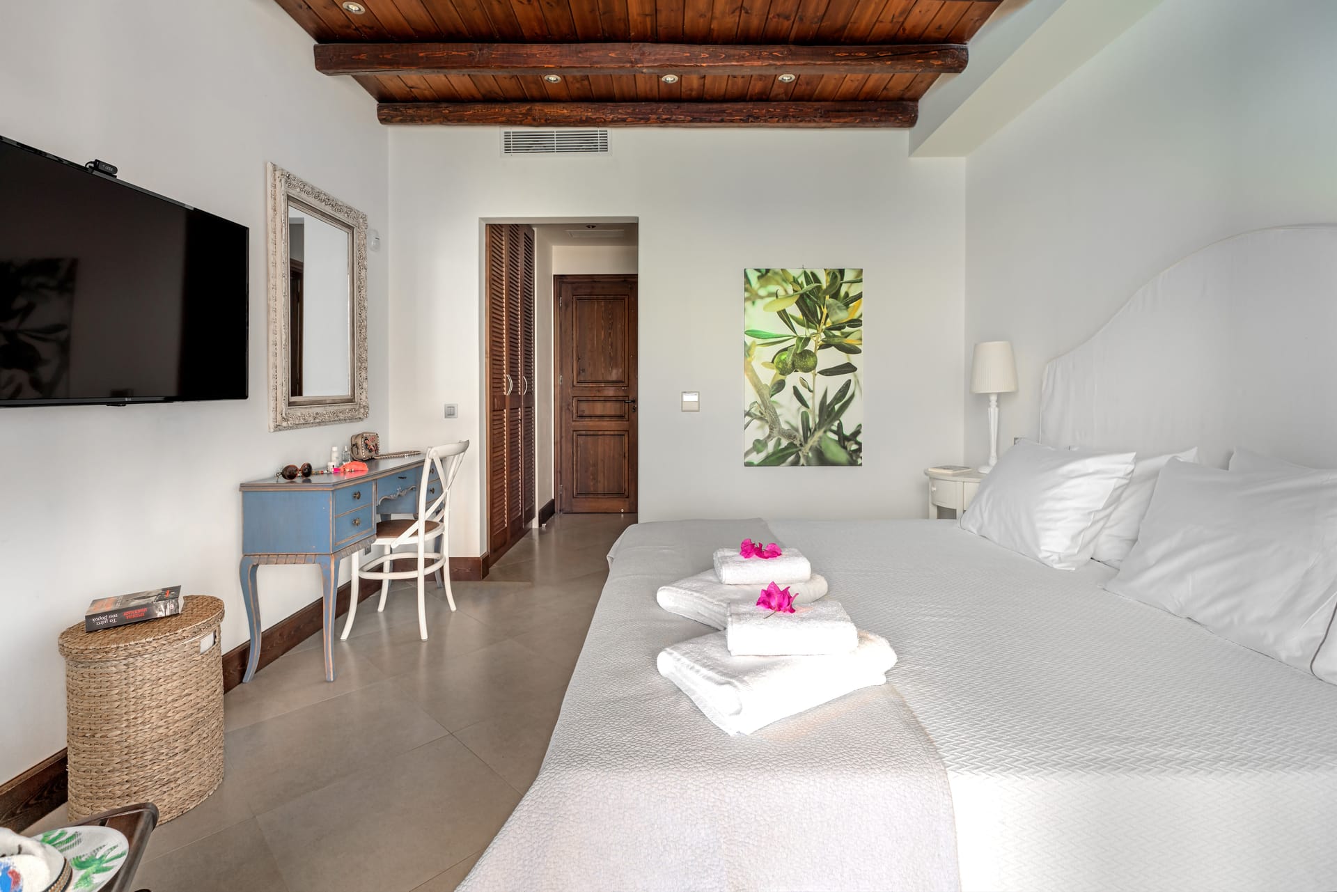 ✓ 1 x Master Bedroom with Queen size Bed, with en suite bathroom, private entrance, amazing sea view and direct access to pool area. (A/C, WI-FI, TV)