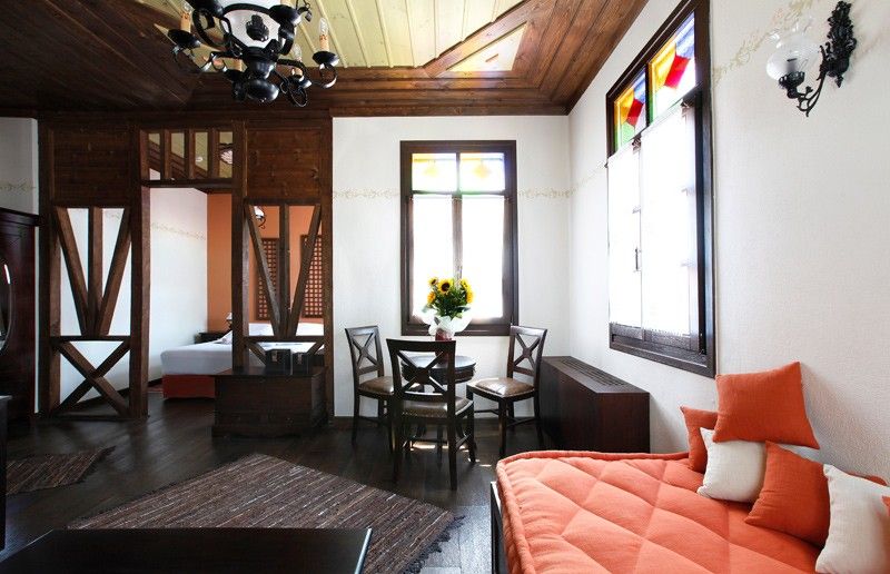 Room 211 designed for guests with reduced mobility, features a king-size bed, closet, individually controlled air conditioning, an LCD TV with satellite channels, Wi-Fi internet, mosquito nets on the windows, a refrigerator, and a fireplace for added comfort. The spacious bathroom is specially designed for accessibility and comes with bath amenities, assistive handles, support bars, a mirror, shower, hairdryer, and other necessary accessories.
