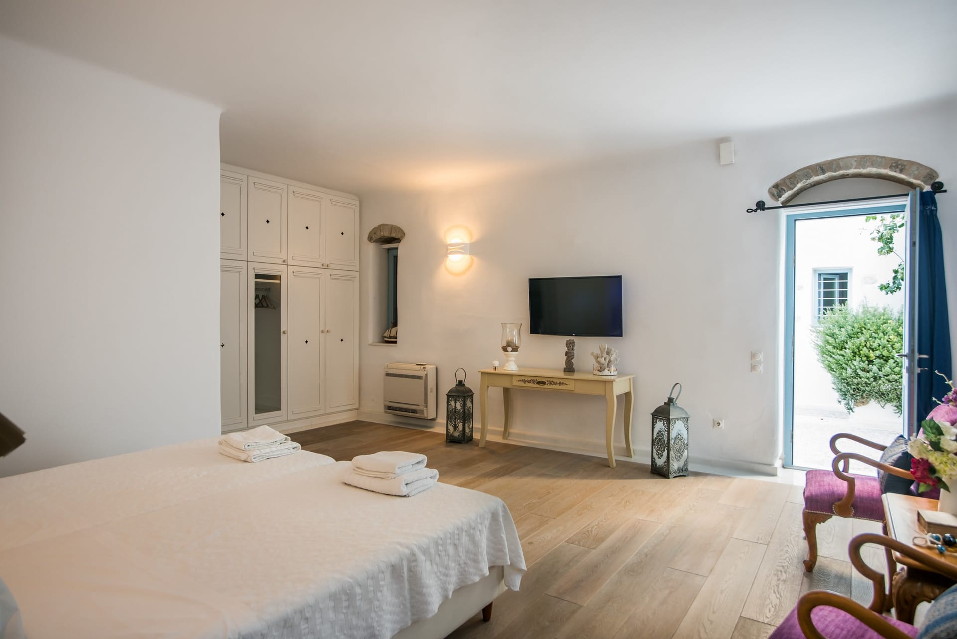 - Double/Twin bedroom with en-suite bathroom (shower), Smart TV, A/C and courtyard view