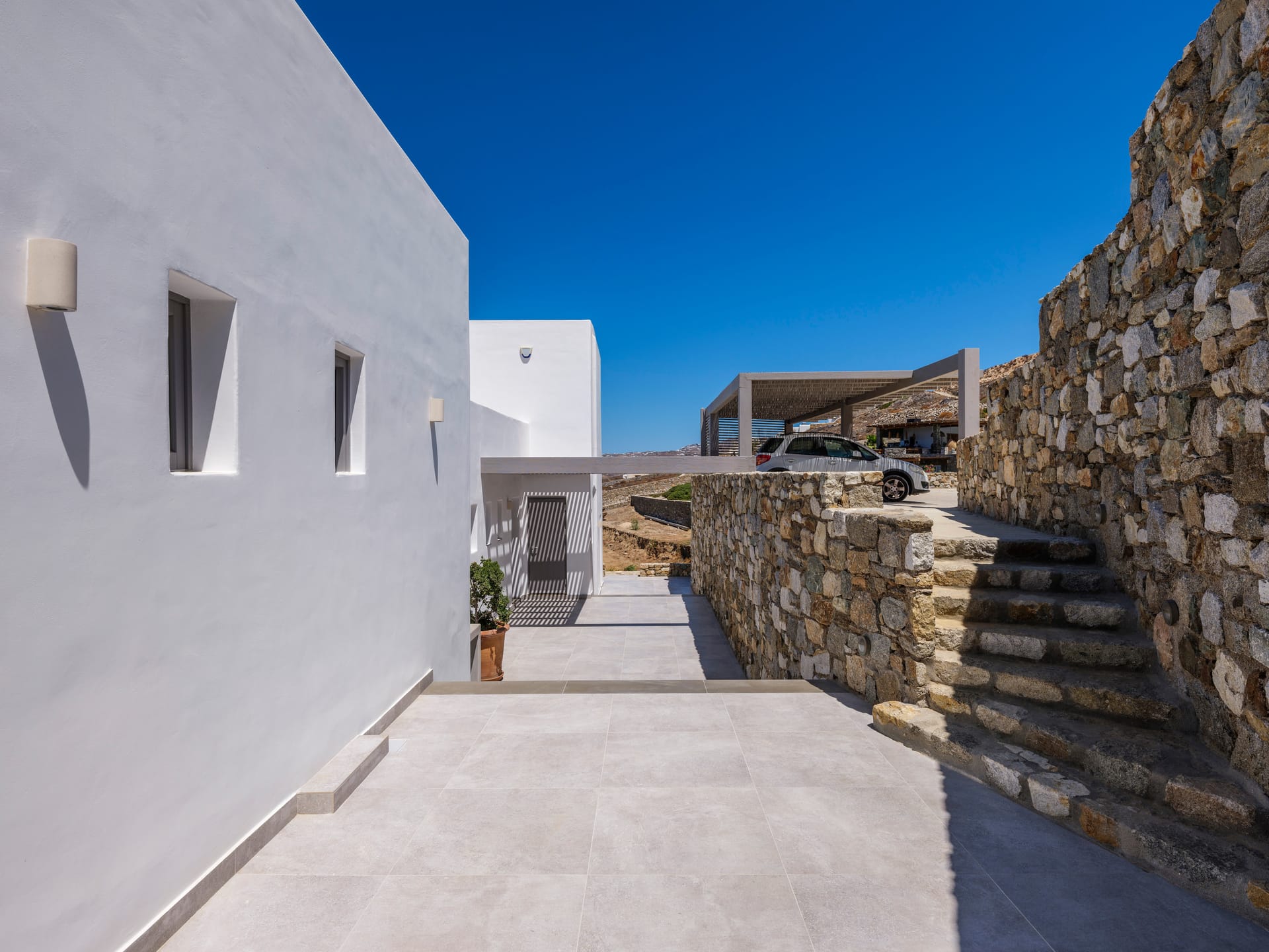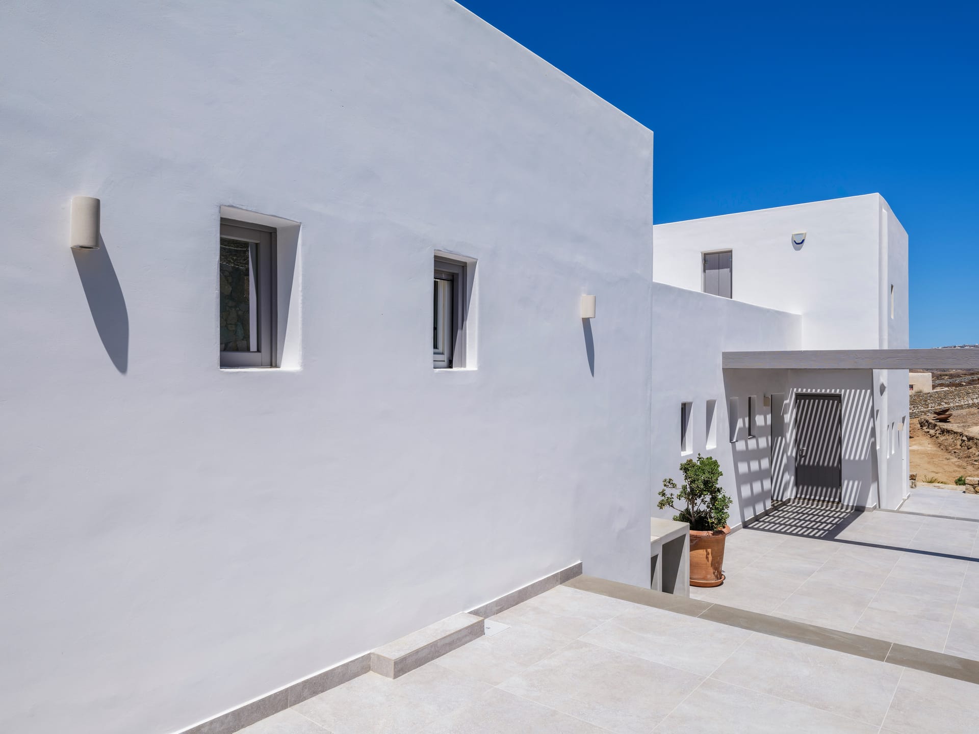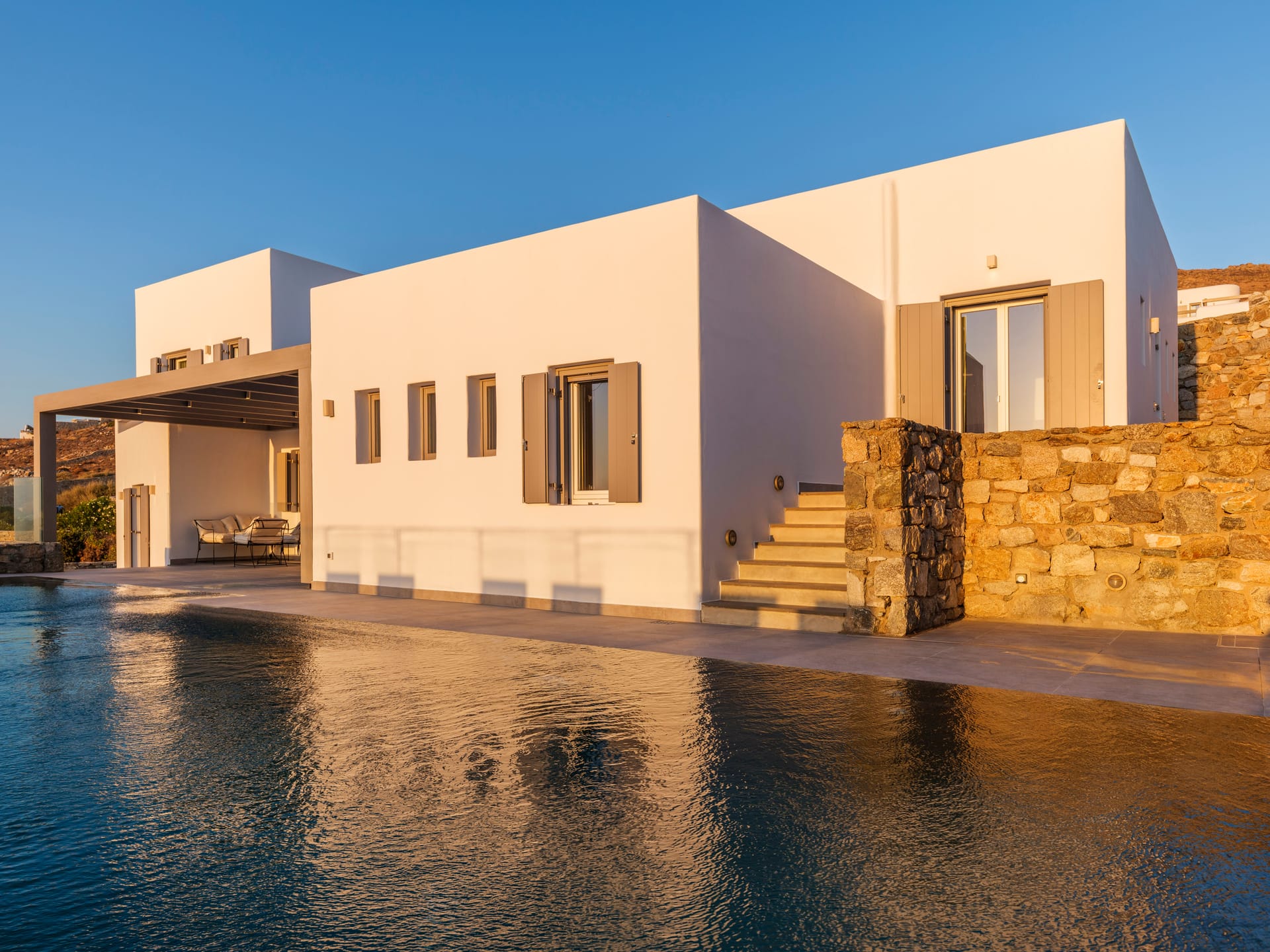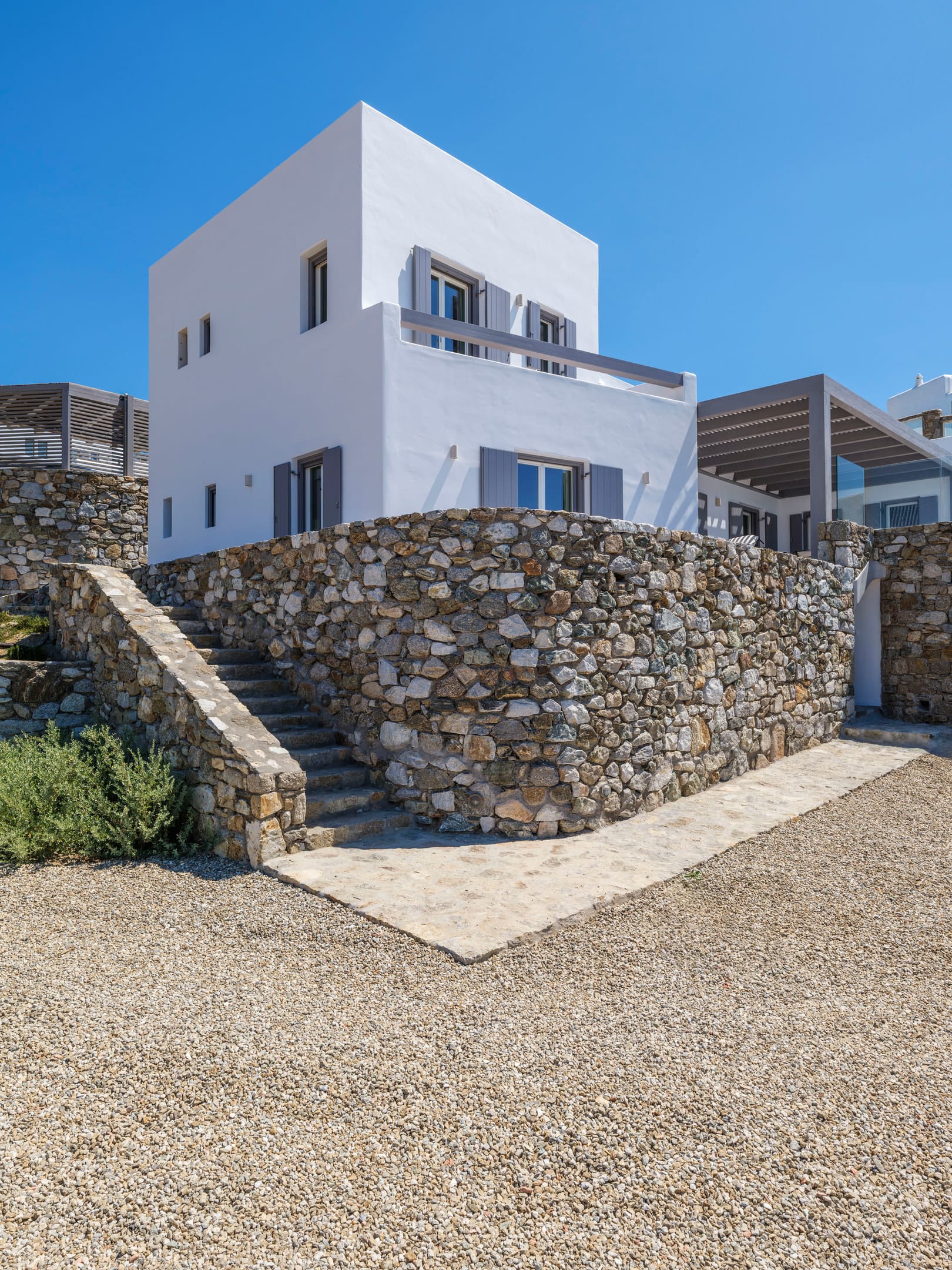 Located at Pouli, this newly constructed two-story villa (300m2) offers unobstructed sea views, complete seclusion, and yet close access to Mykonos town. It gazes across the waters towards the islands of Tinos, Rhinia, and Delos with breathtaking sunsets and exclusive access to a private beach.