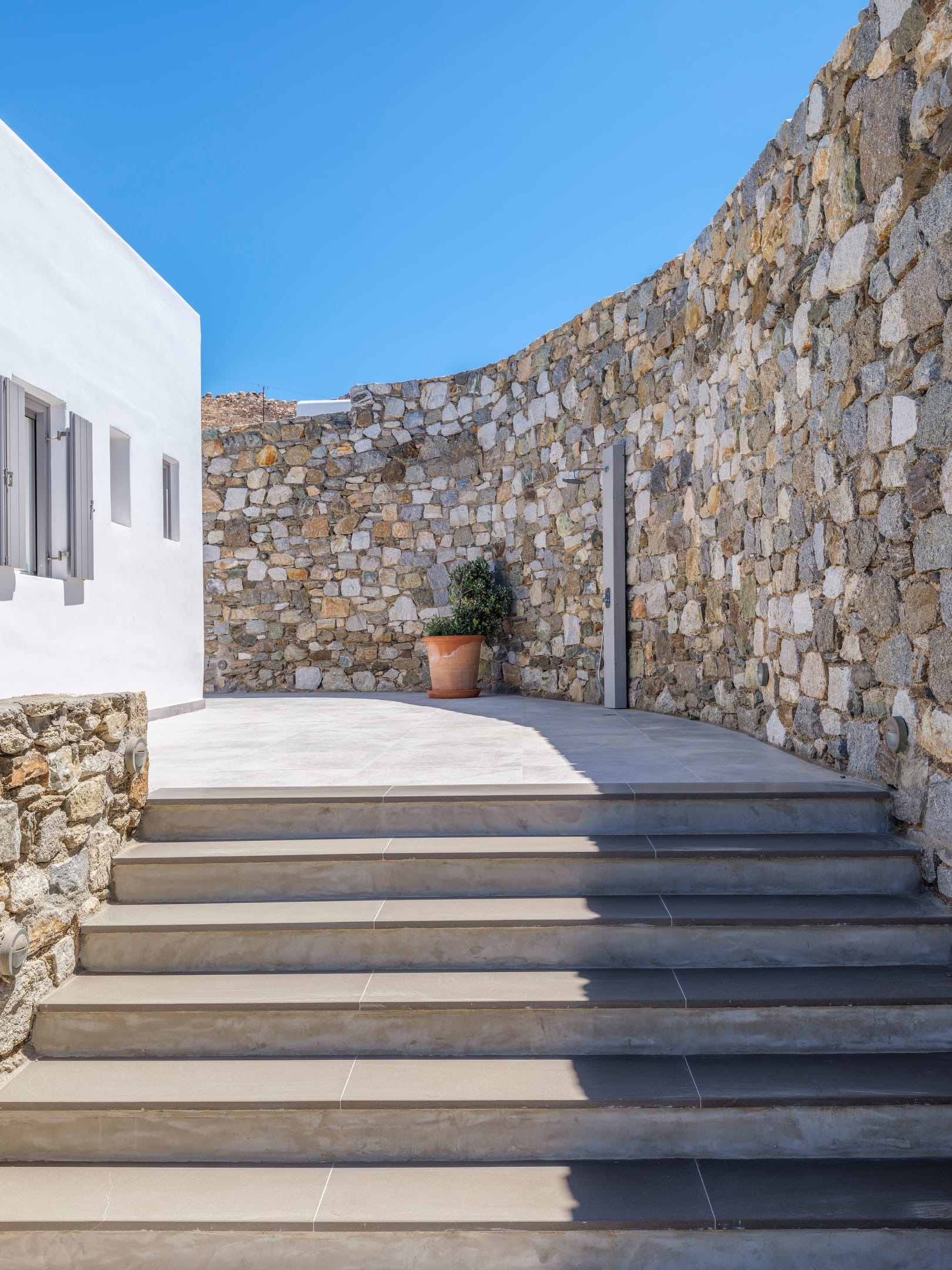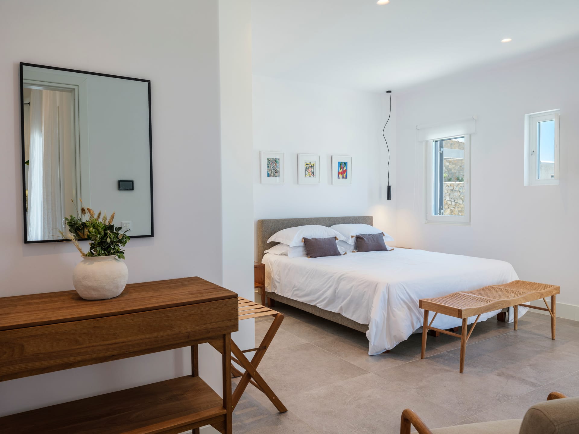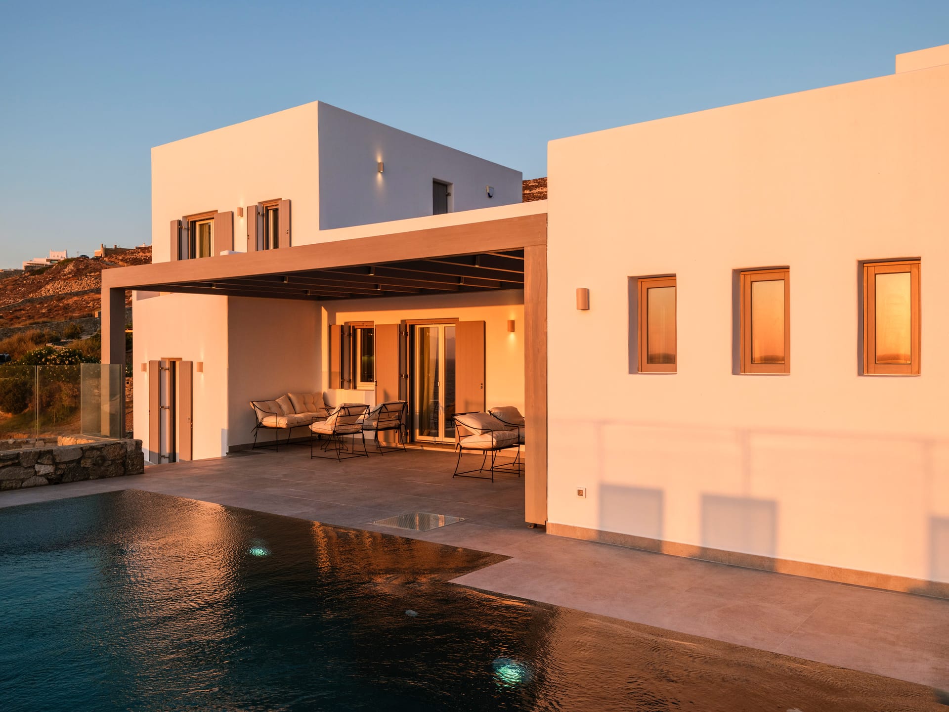 Located at Pouli, this newly constructed two-story villa (300m2) offers unobstructed sea views, complete seclusion, and yet close access to Mykonos town. It gazes across the waters towards the islands of Tinos, Rhinia, and Delos with breathtaking sunsets and exclusive access to a private beach.
