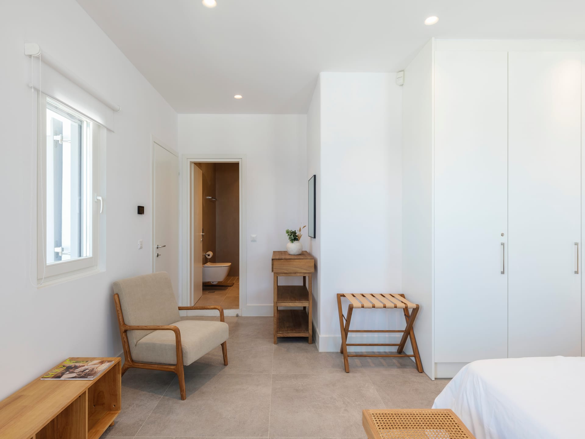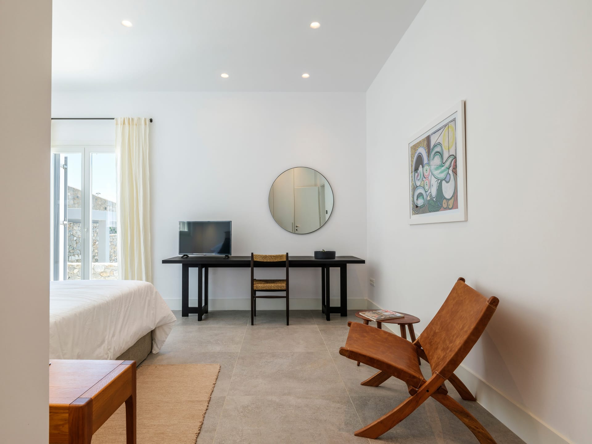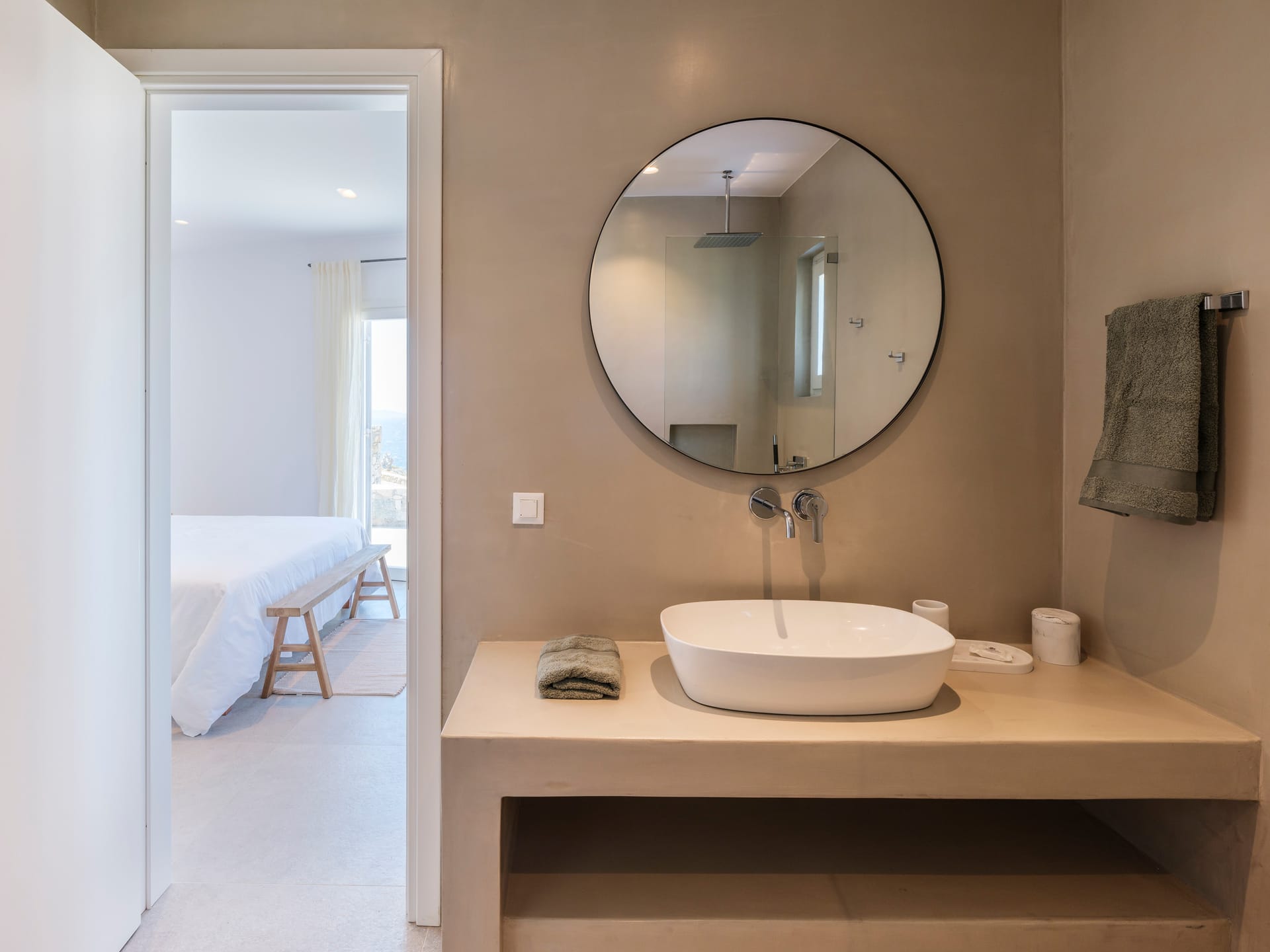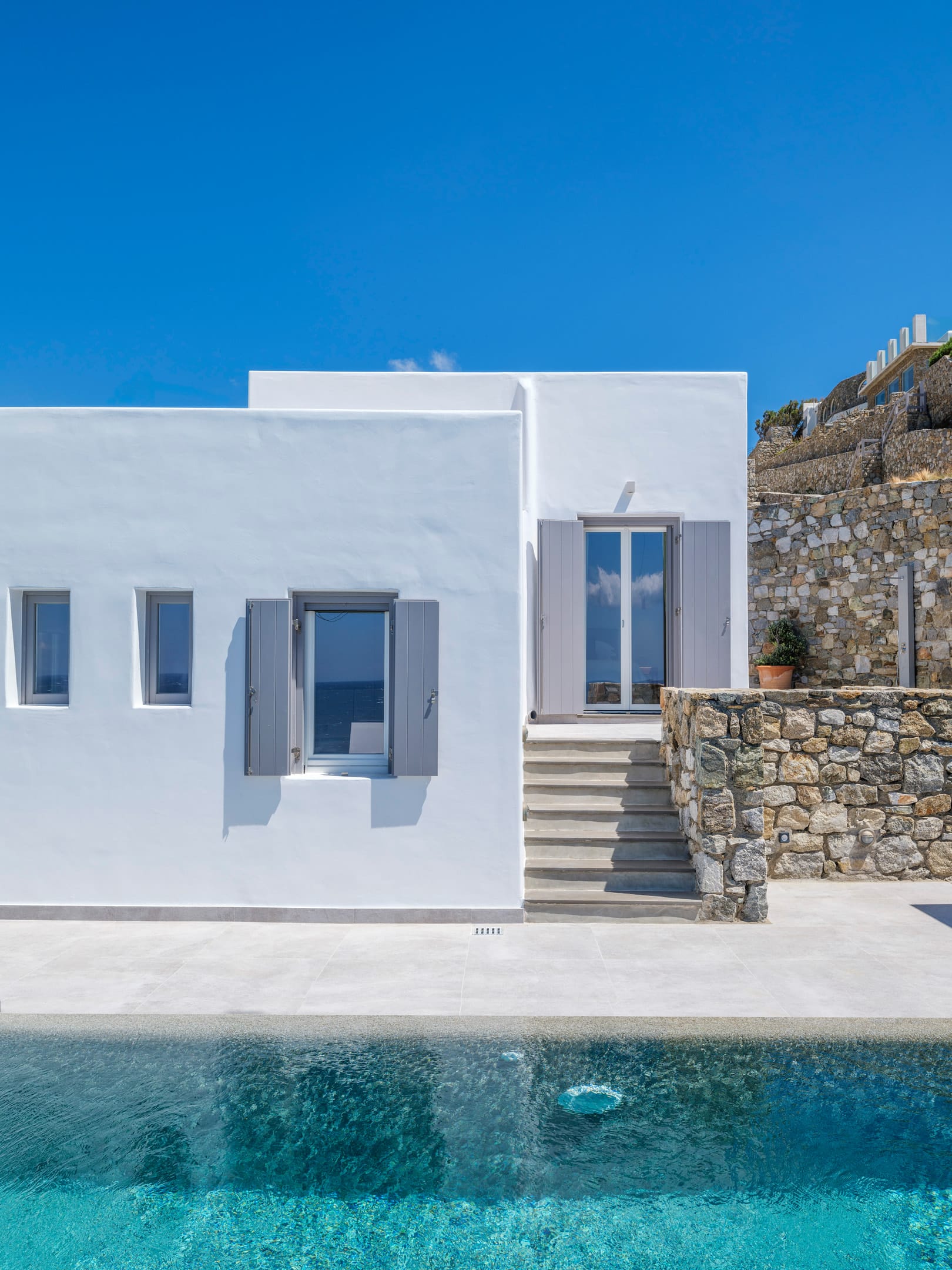Located at Pouli, this newly constructed two-story villa (300m2) offers unobstructed sea views, complete seclusion, and yet close access to Mykonos town. It gazes across the waters towards the islands of Tinos, Rhinia, and Delos with breathtaking sunsets and exclusive access to a private beach.