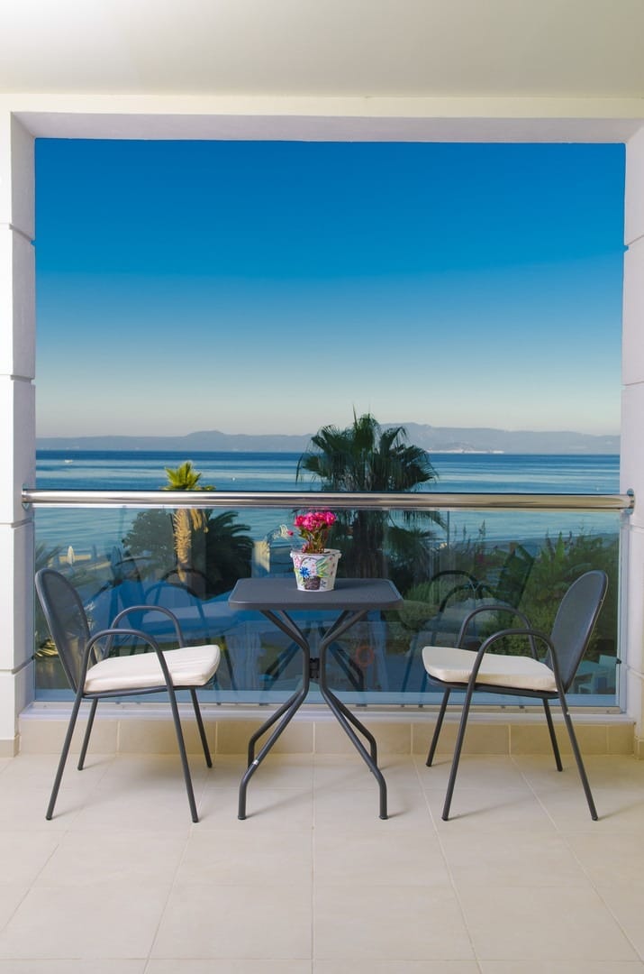 Step into a spacious sanctuary featuring a plush king-size bed, a chic living area with a cozy sofa and stylish coffee table, and an en suite bathroom complete with a rejuvenating rain shower. Floor-to-ceiling windows flood the suite with natural light, while offering breathtaking views of the sparkling Aegean Sea.
