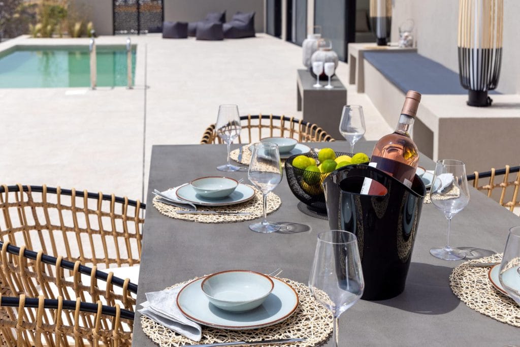 Wake to the sound of waves, enjoy breakfast prepared by your chef in the outdoor dining area, sunbathe on in-water loungers, or relax in the outdoor hot tub. Return after an evening at Nammos or Scorpios for a sunset swim or a pre-night-out siesta.