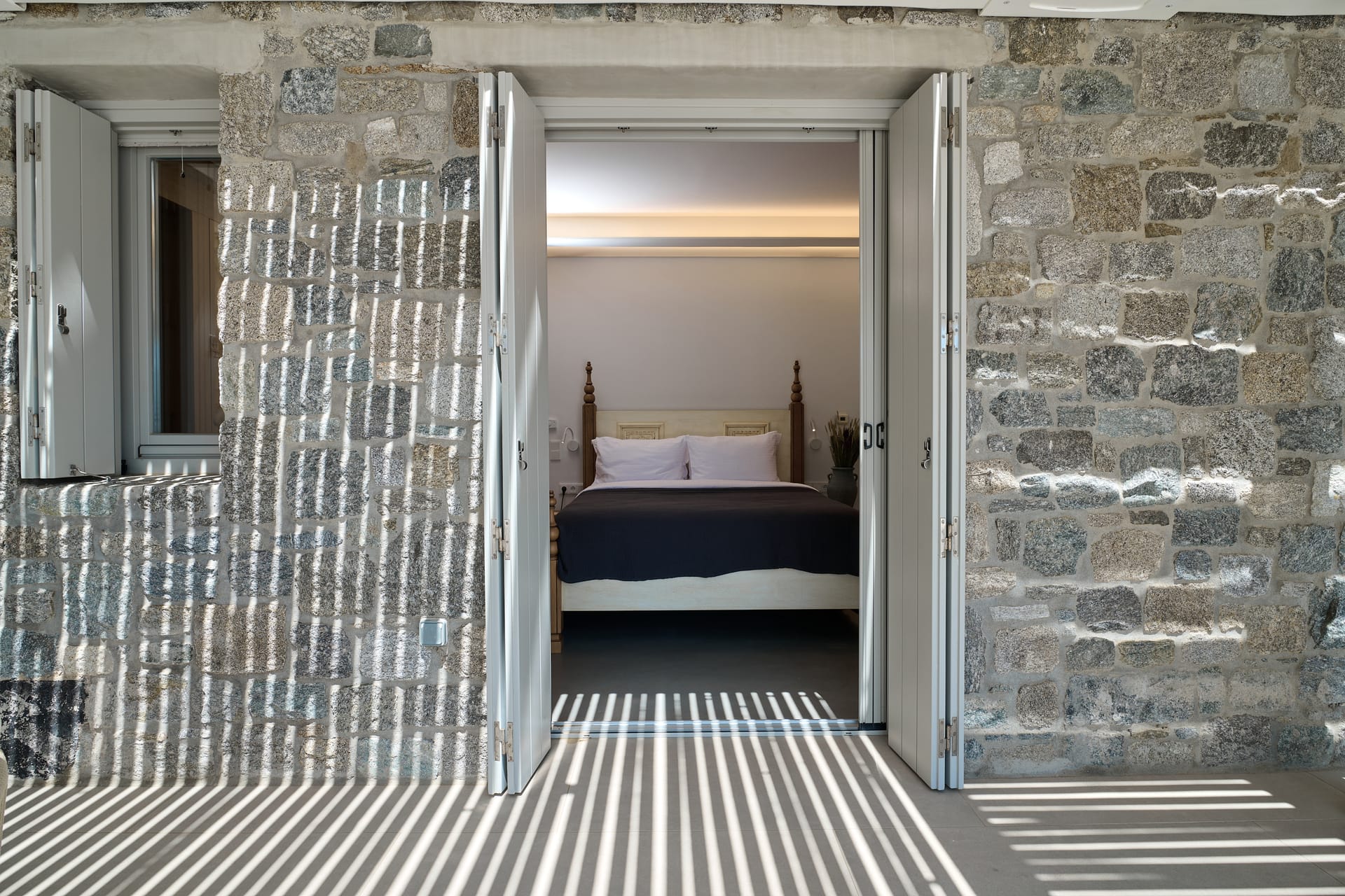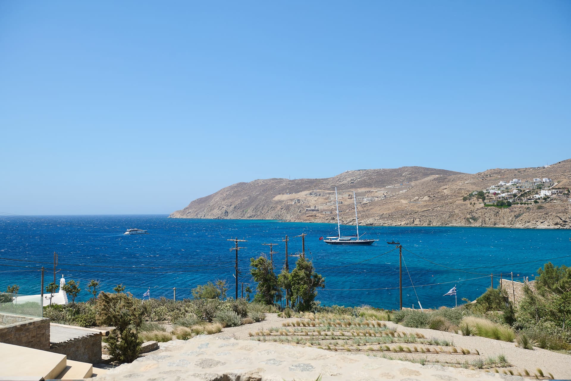 Perched on the edge of the Aegean Sea, Villa Blue Diamond captivates with its unrivaled location, where the golden sands of Kalo Livadi seamlessly meet the azure horizon. The architecture is a testament to modern elegance, with crisp lines and a minimalist aesthetic that effortlessly integrates with the natural beauty of the surroundings.