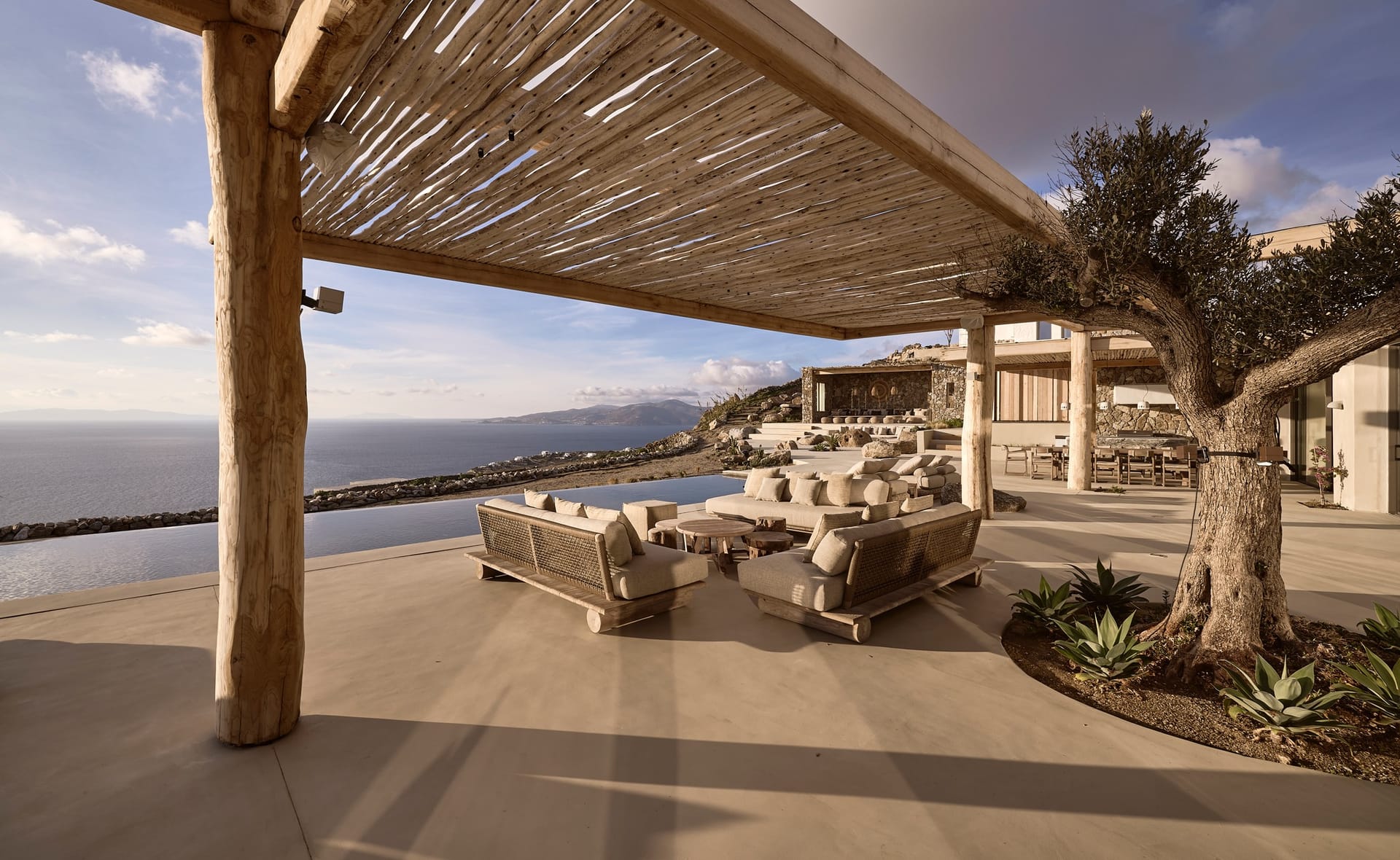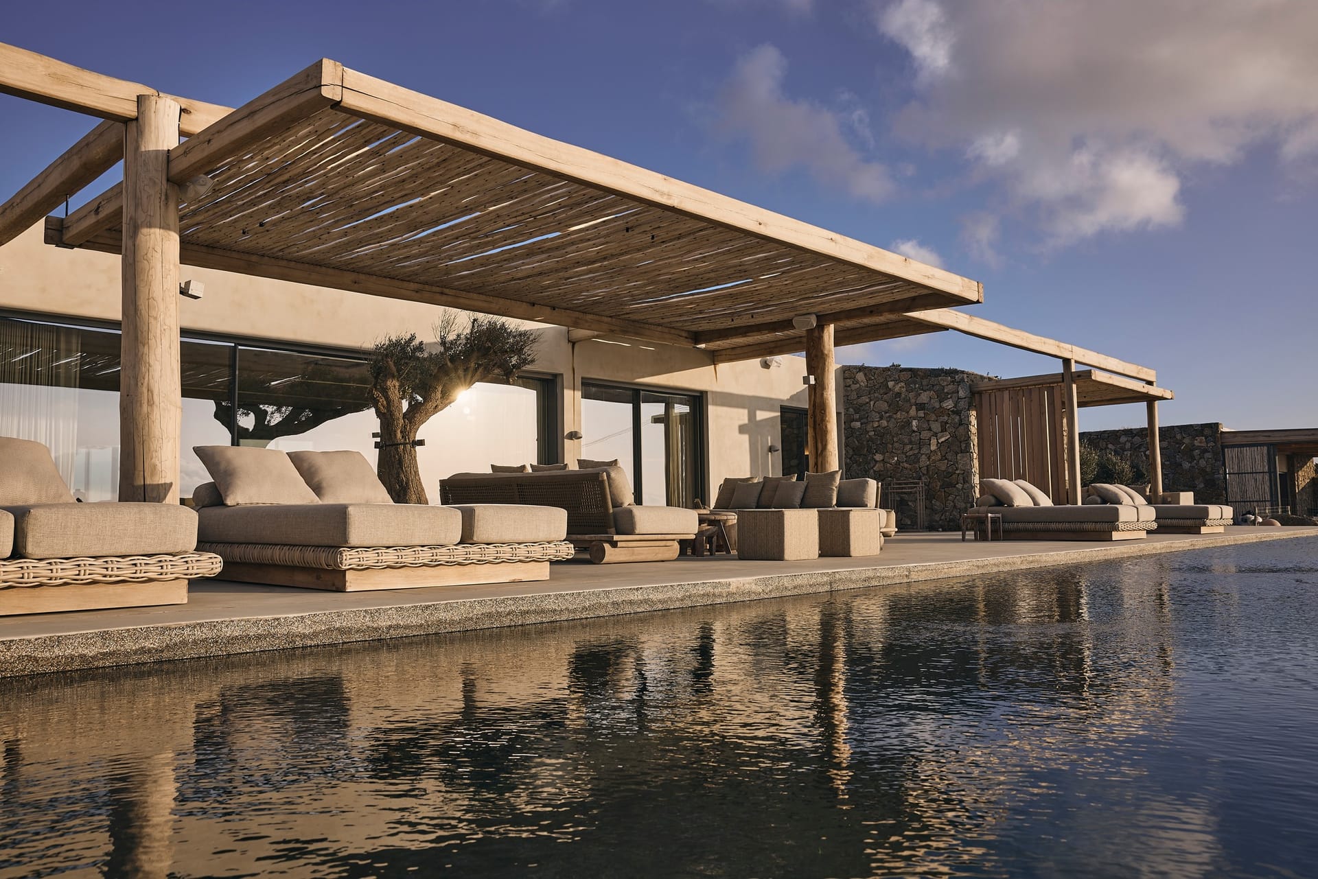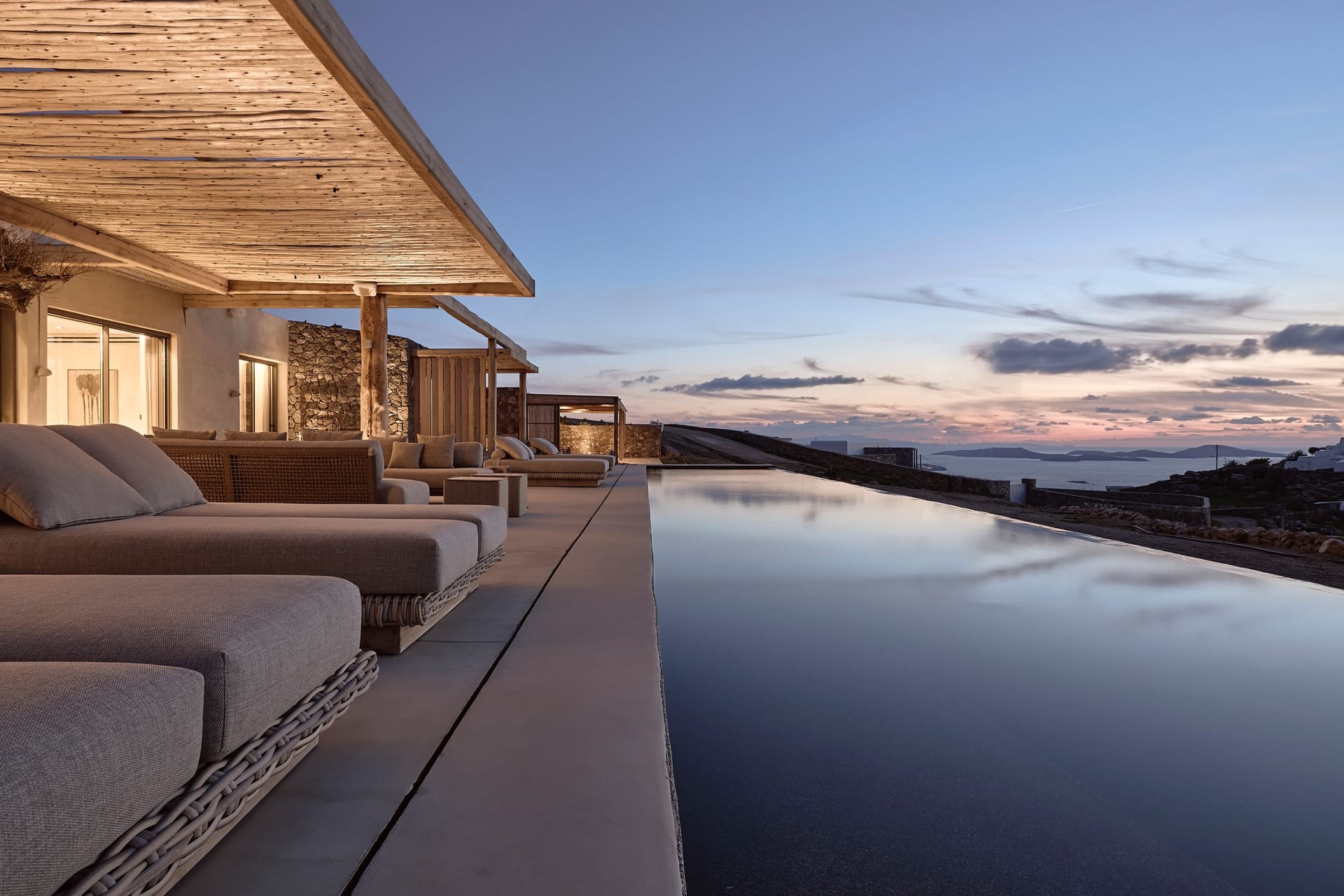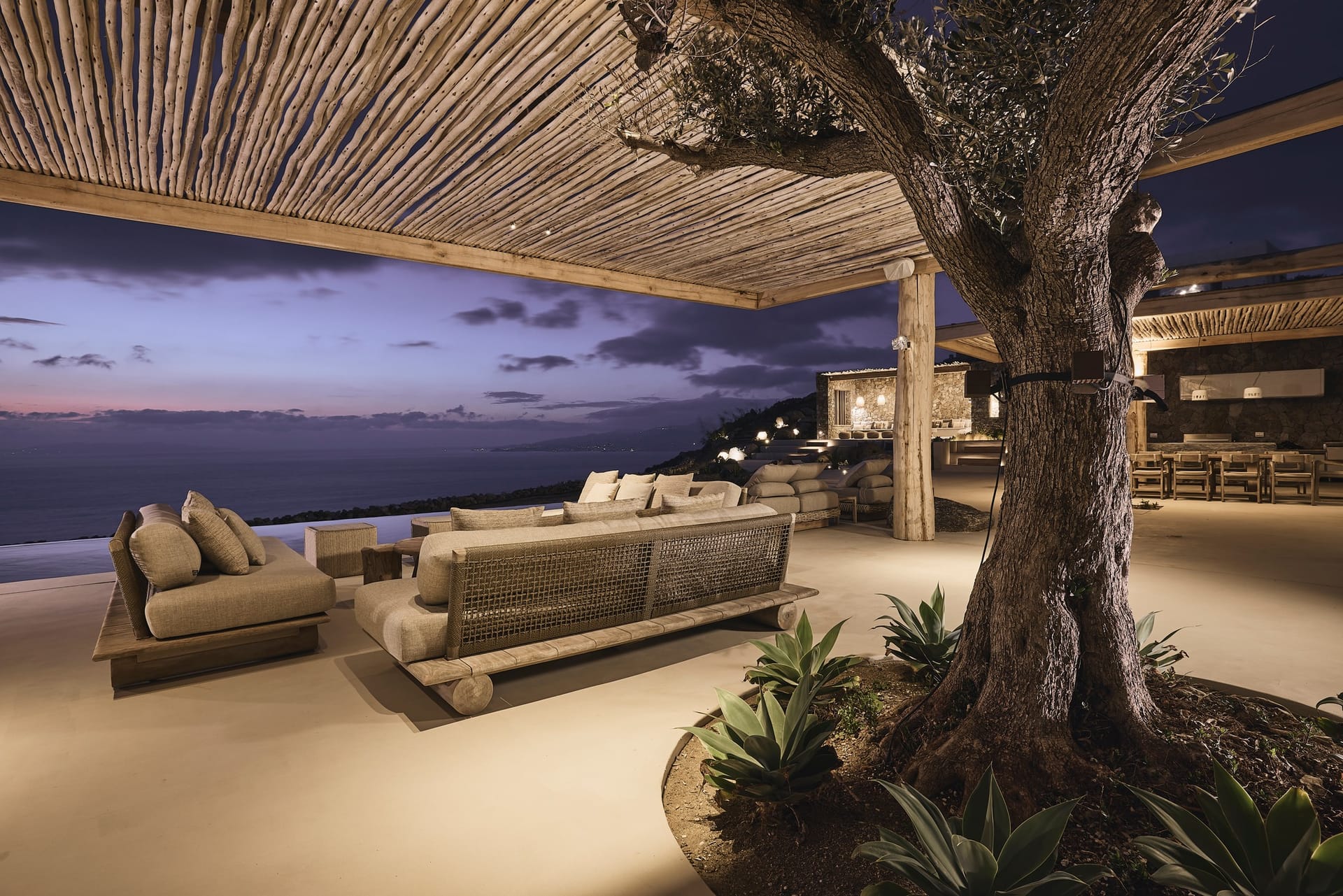 The outdoor space hosts a 26-meter Infinity pool (heated upon request), an open pool bar, a pool lounge with WC and shower, a pool deck with sun loungers, the BBQ and main outdoor dining areas and multiple sitting spots. The second unit is located on the upper level of the property, overlooking the villa, and hosts two (2) guest apartments with independent entrances, a pool lounge and a mini Infinity pool (outdoor). Last but not least, the property features private parking space.