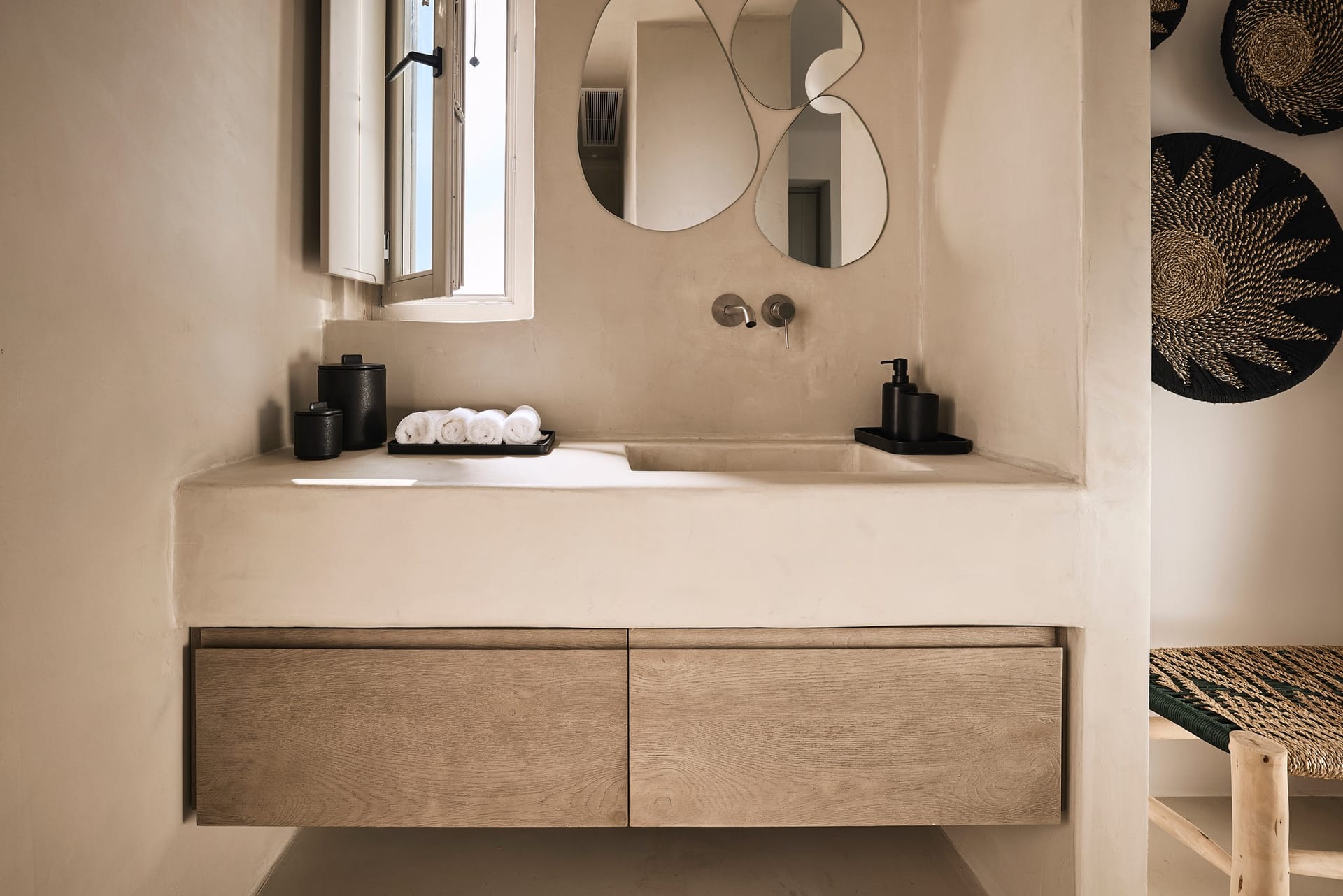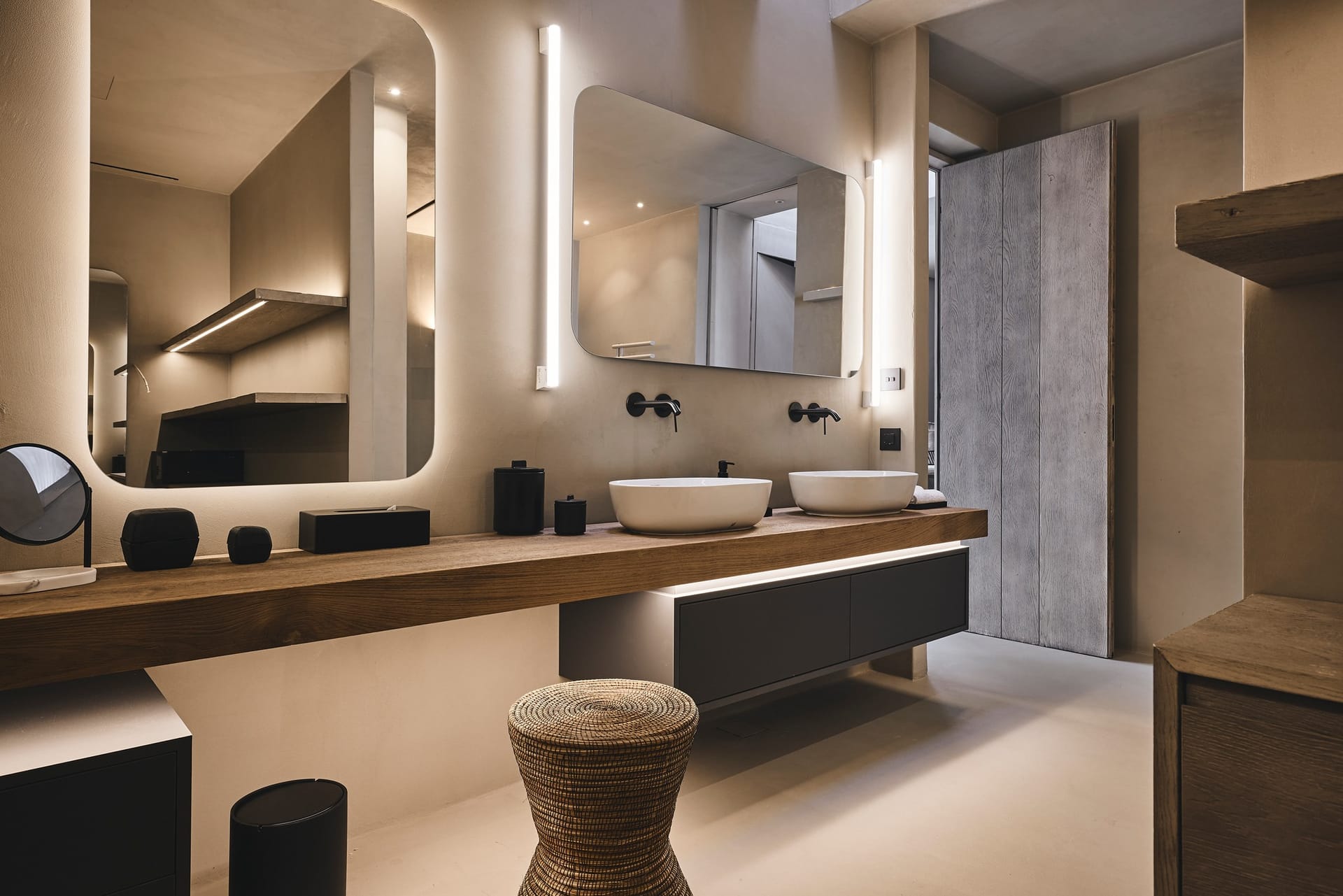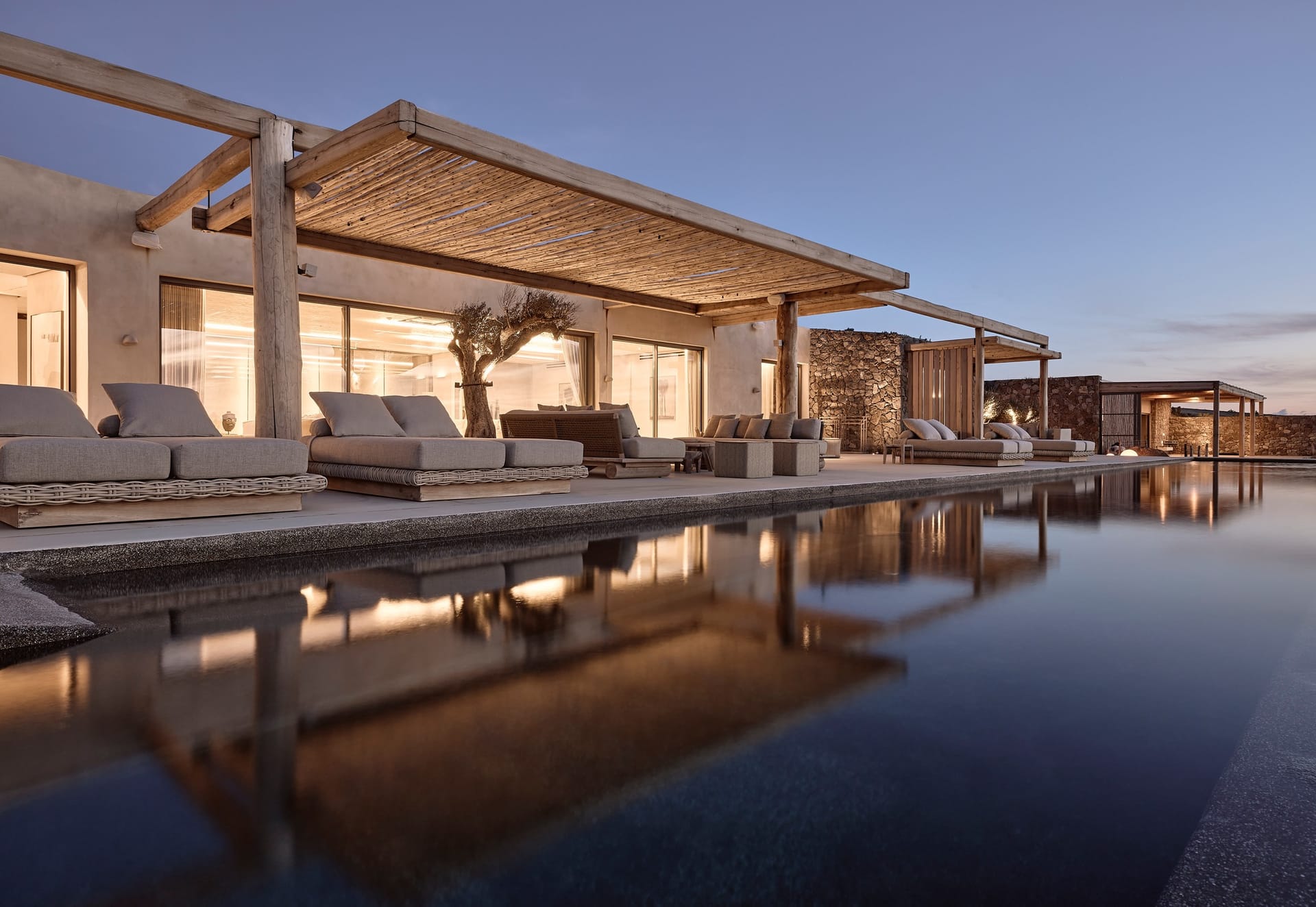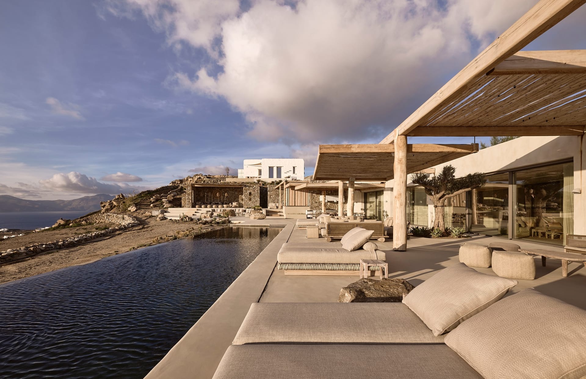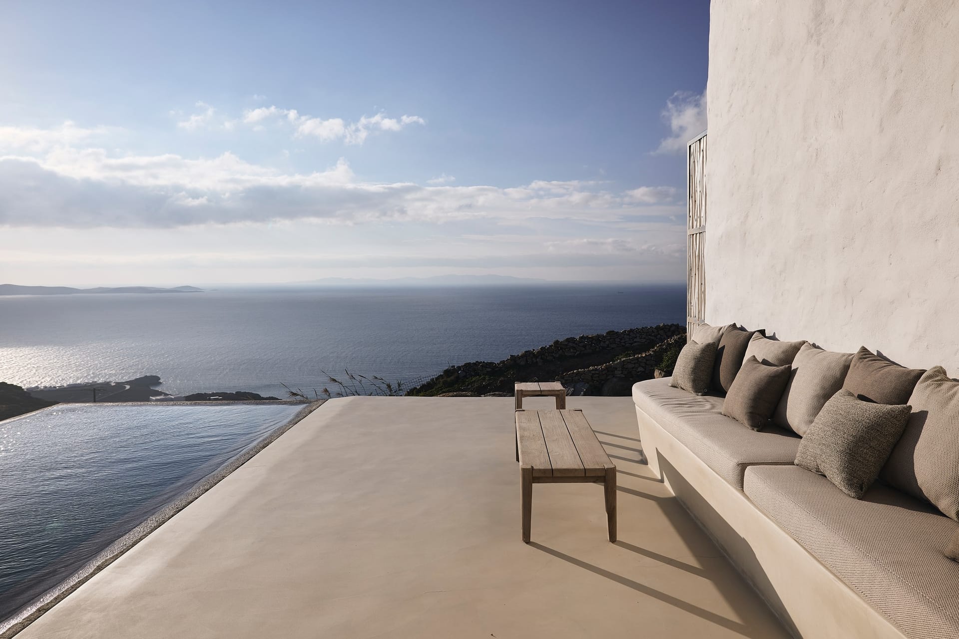 The outdoor space hosts a 26-meter Infinity pool (heated upon request), an open pool bar, a pool lounge with WC and shower, a pool deck with sun loungers, the BBQ and main outdoor dining areas and multiple sitting spots. The second unit is located on the upper level of the property, overlooking the villa, and hosts two (2) guest apartments with independent entrances, a pool lounge and a mini Infinity pool (outdoor). Last but not least, the property features private parking space.