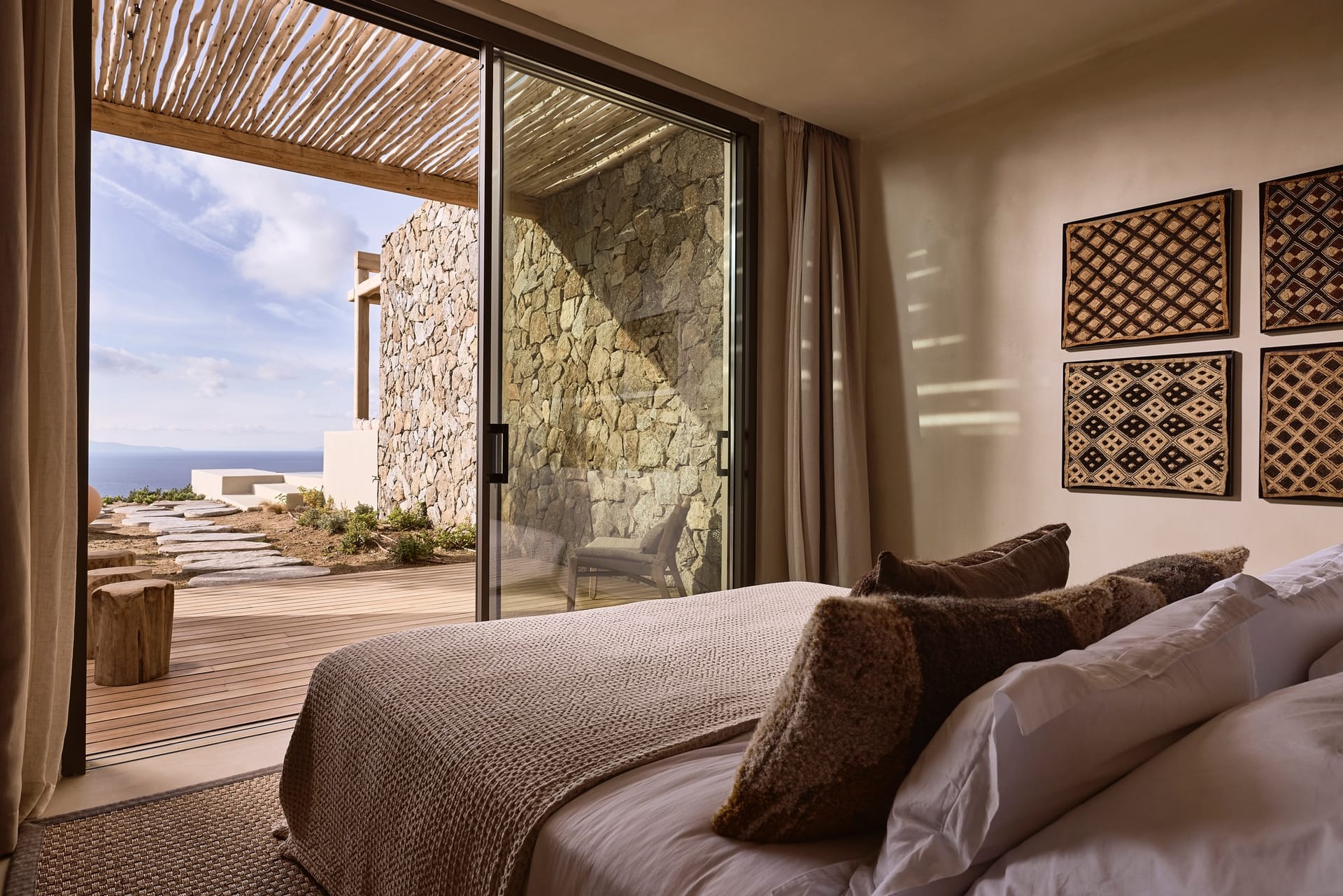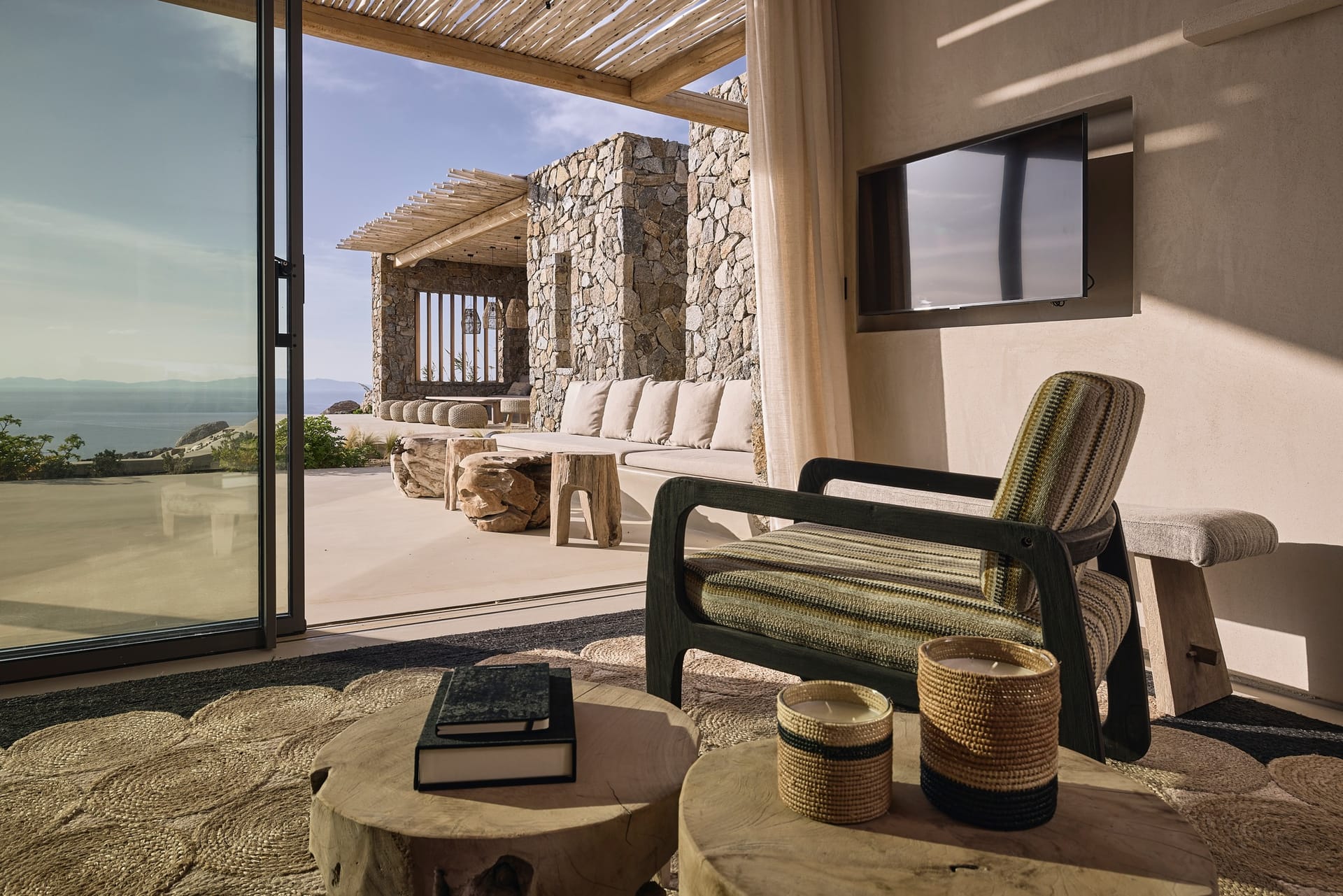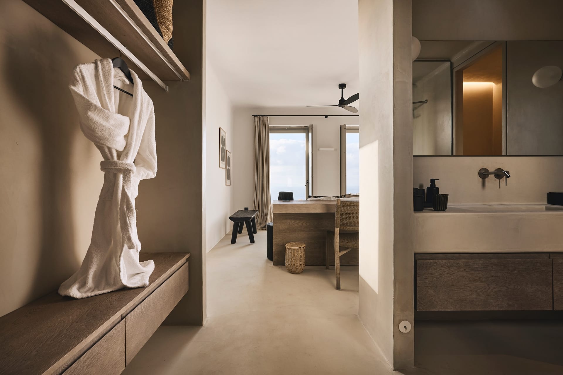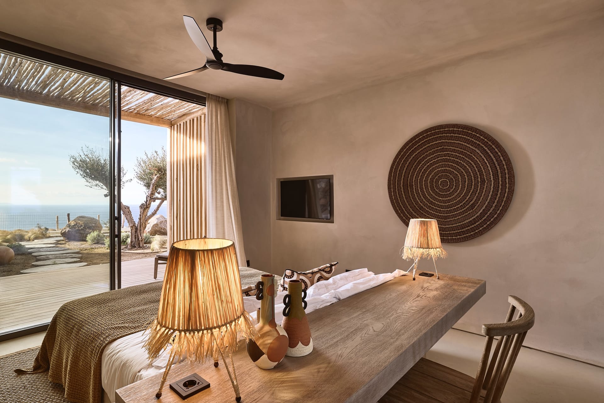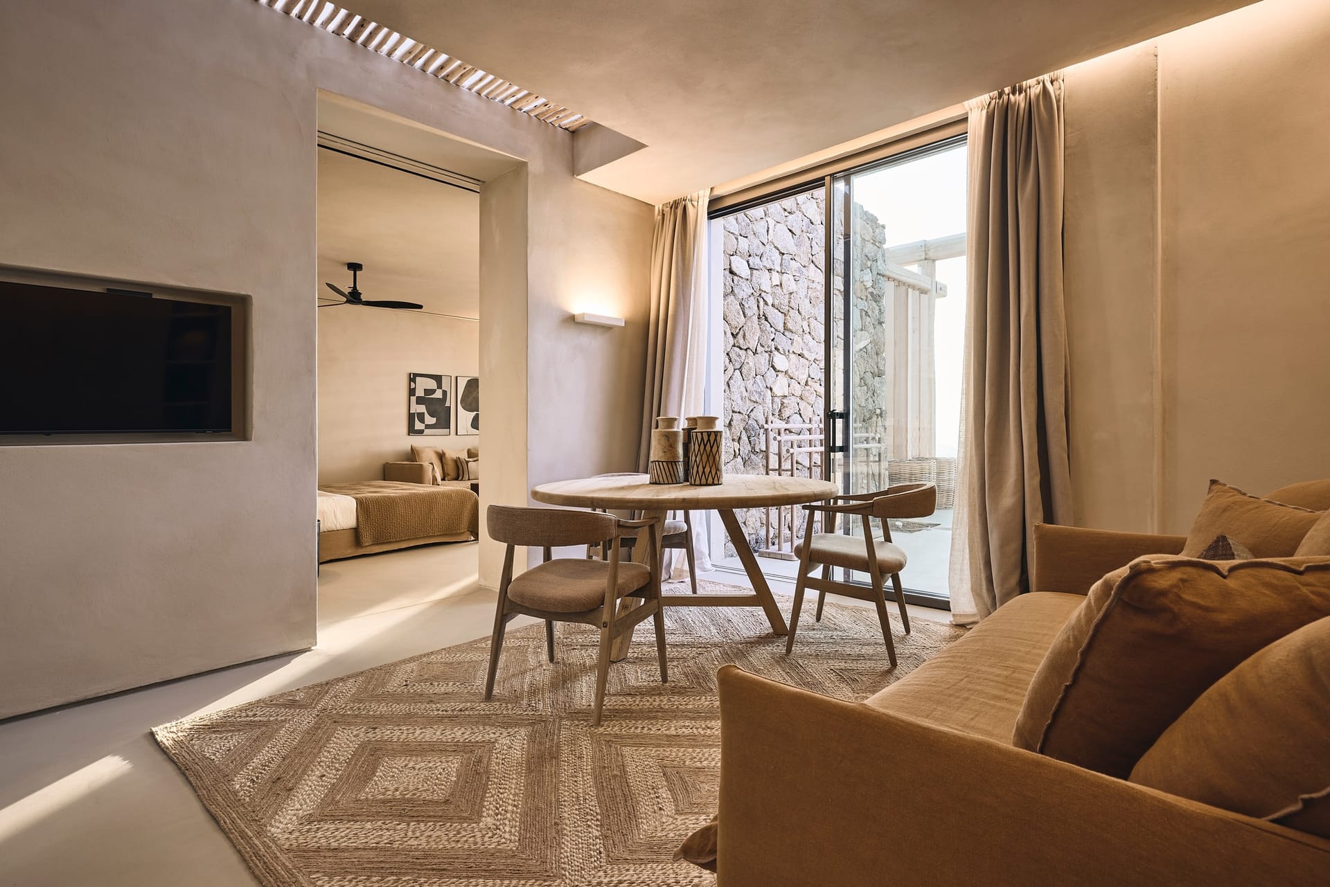 - 1 master suite (84 m2) with lounge/workspace area, en-suite bathroom with shower, safe room, kingsize bed, mini bar, safe box, flat Smart TV, type-C fast charge ports, outdoor lounge, direct access tothe main pool area, unobstructed sea and sunset views.