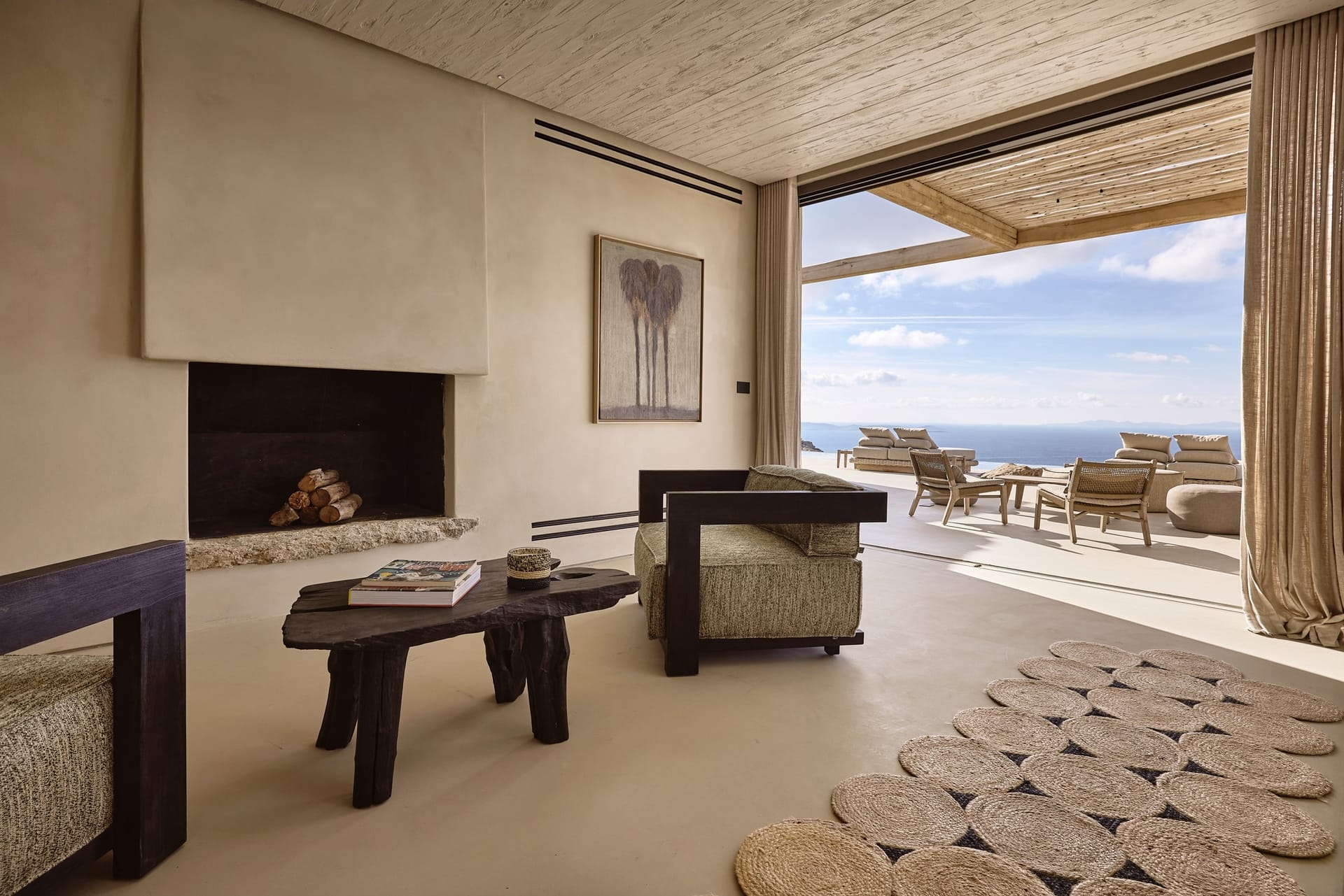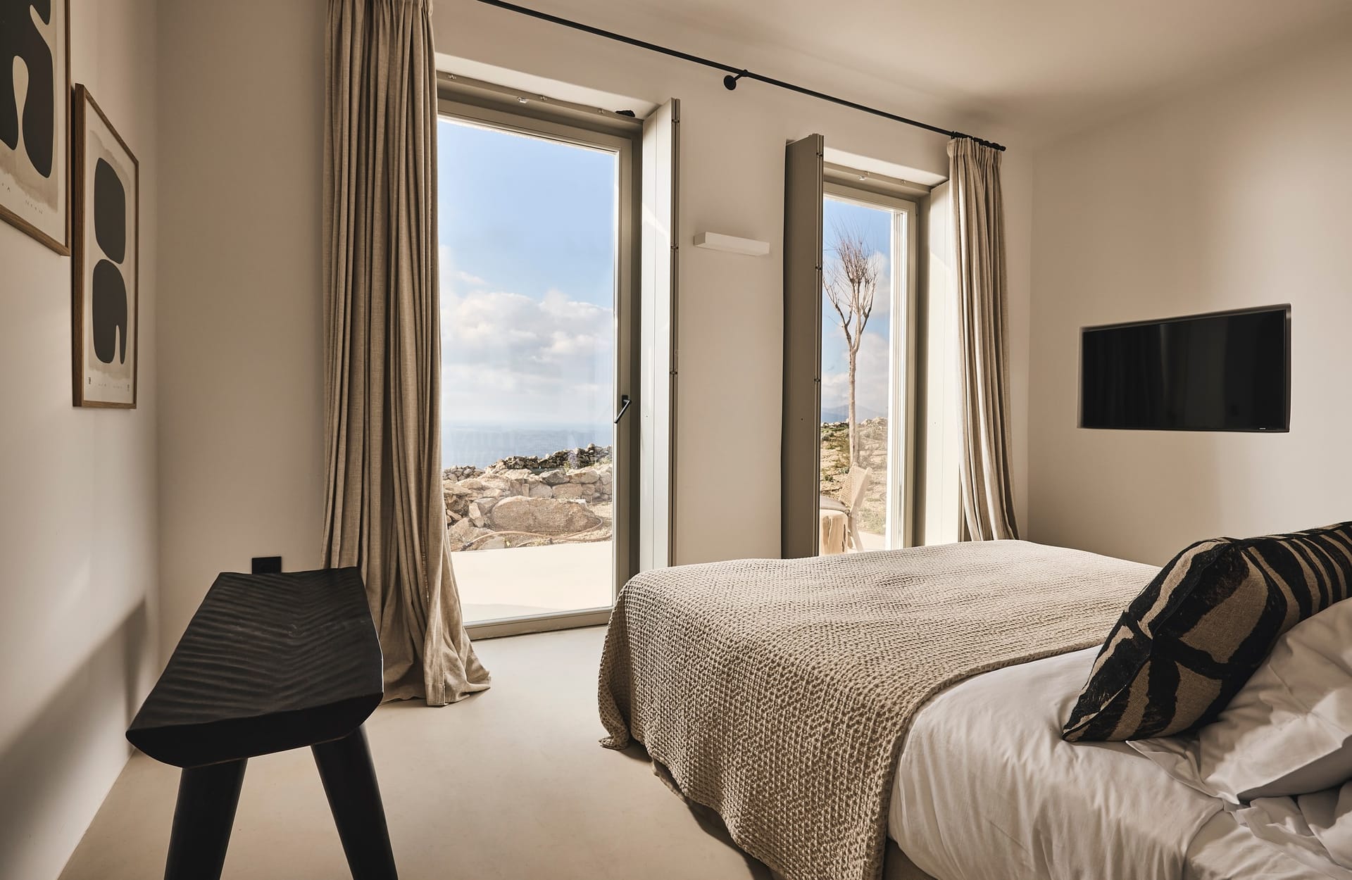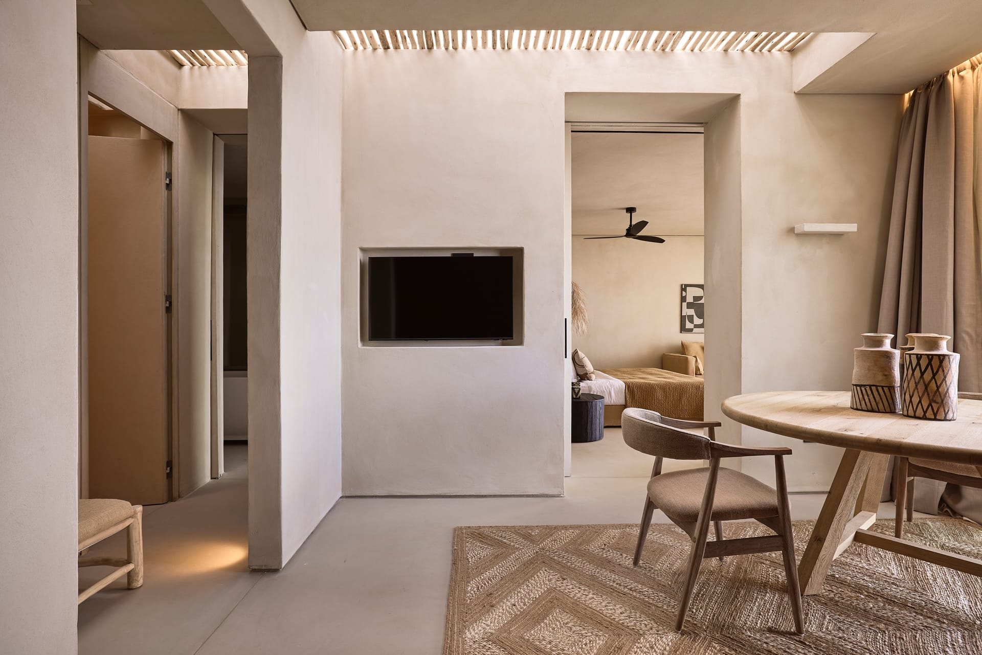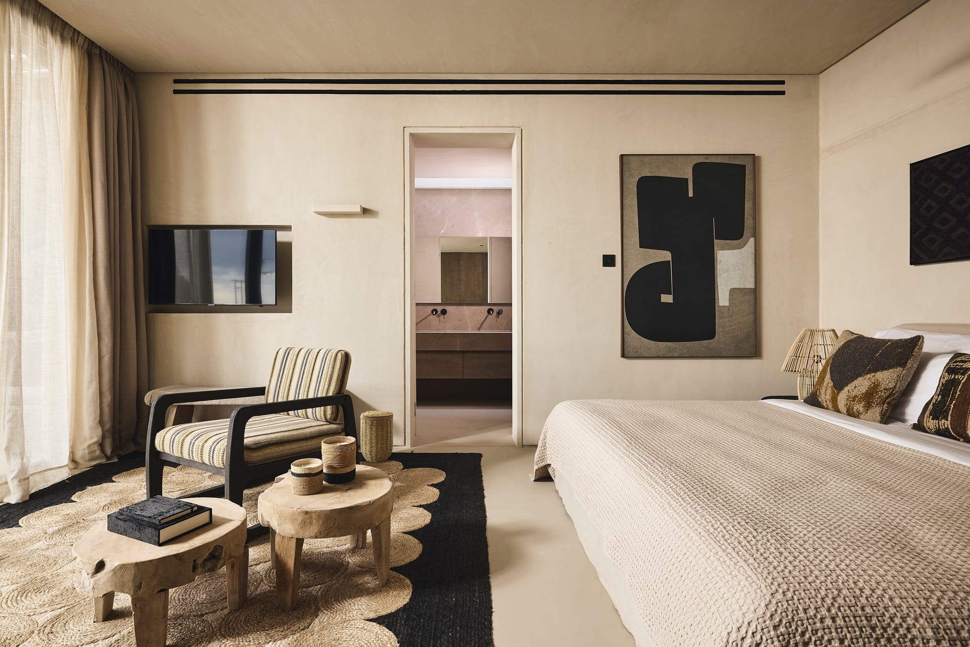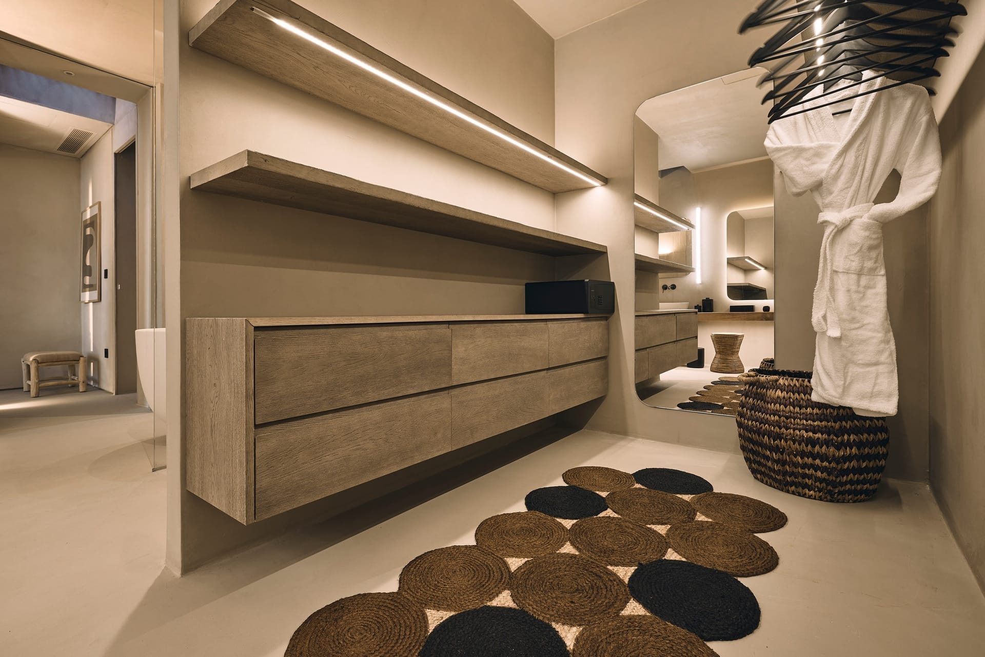 - 1 master suite (84 m2) with lounge/workspace area, en-suite bathroom with shower, safe room, kingsize bed, mini bar, safe box, flat Smart TV, type-C fast charge ports, outdoor lounge, direct access tothe main pool area, unobstructed sea and sunset views.