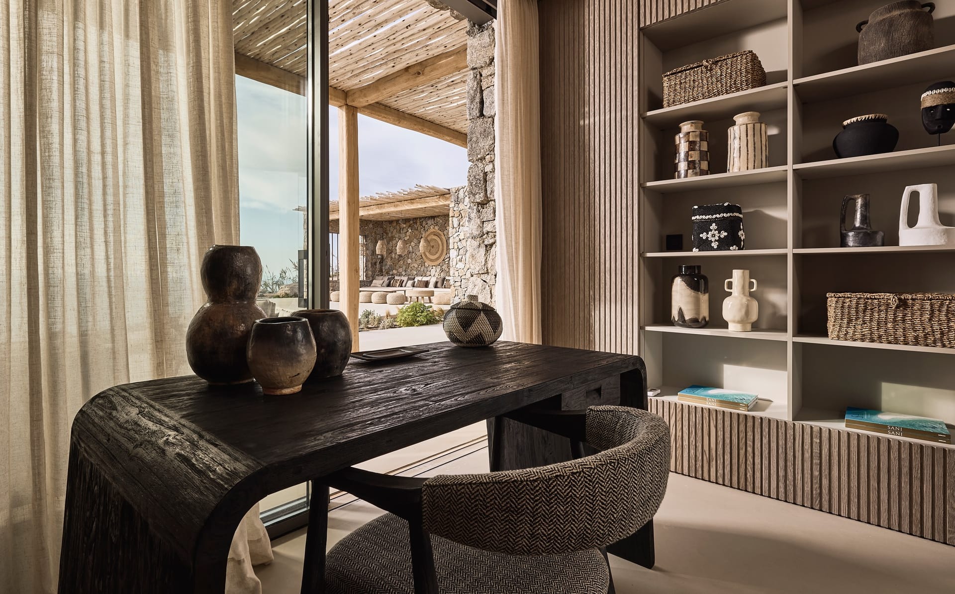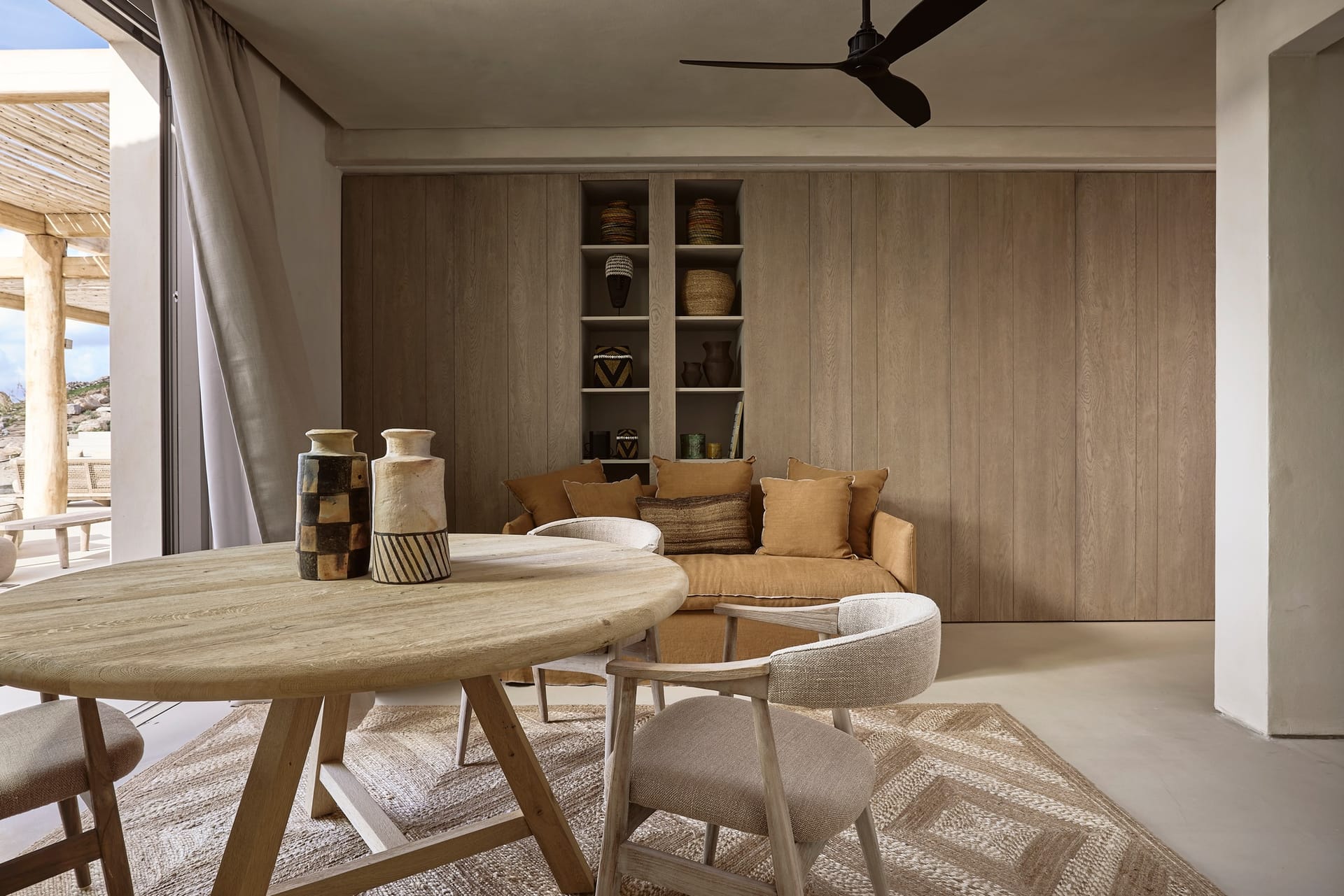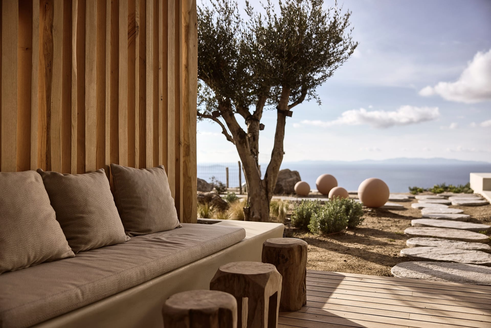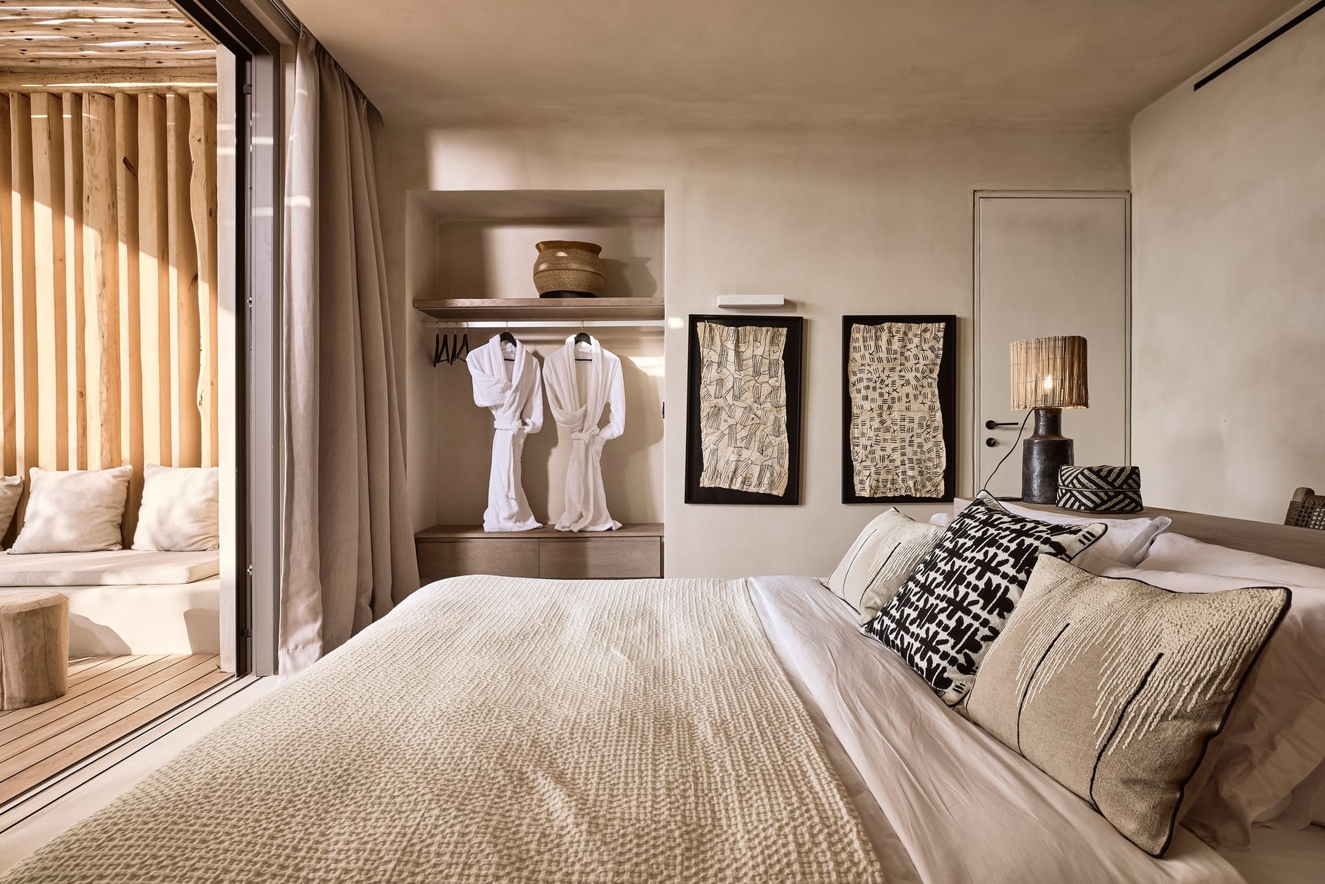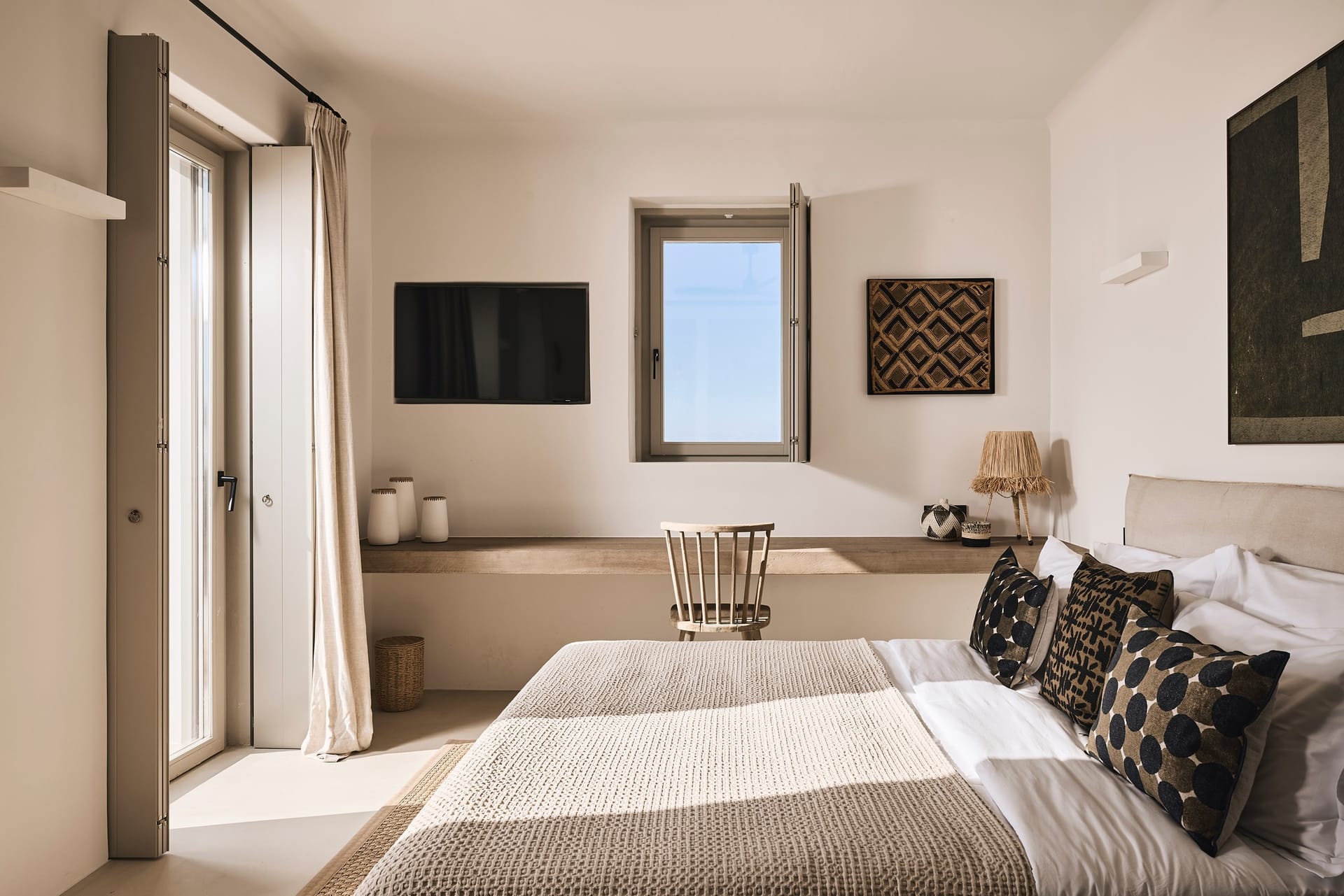 - 1 master suite (84 m2) with lounge/workspace area, en-suite bathroom with shower, safe room, kingsize bed, mini bar, safe box, flat Smart TV, type-C fast charge ports, outdoor lounge, direct access tothe main pool area, unobstructed sea and sunset views.