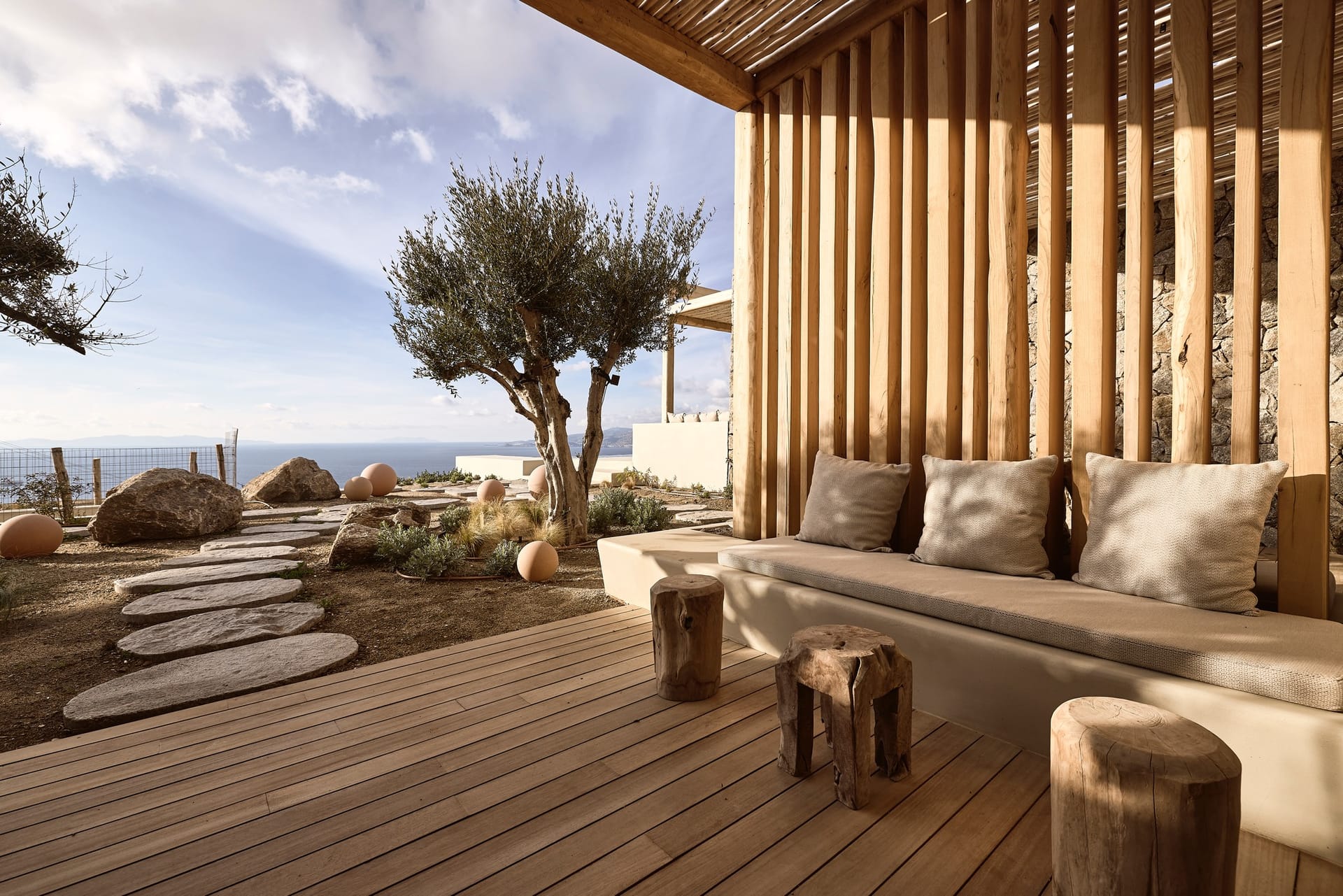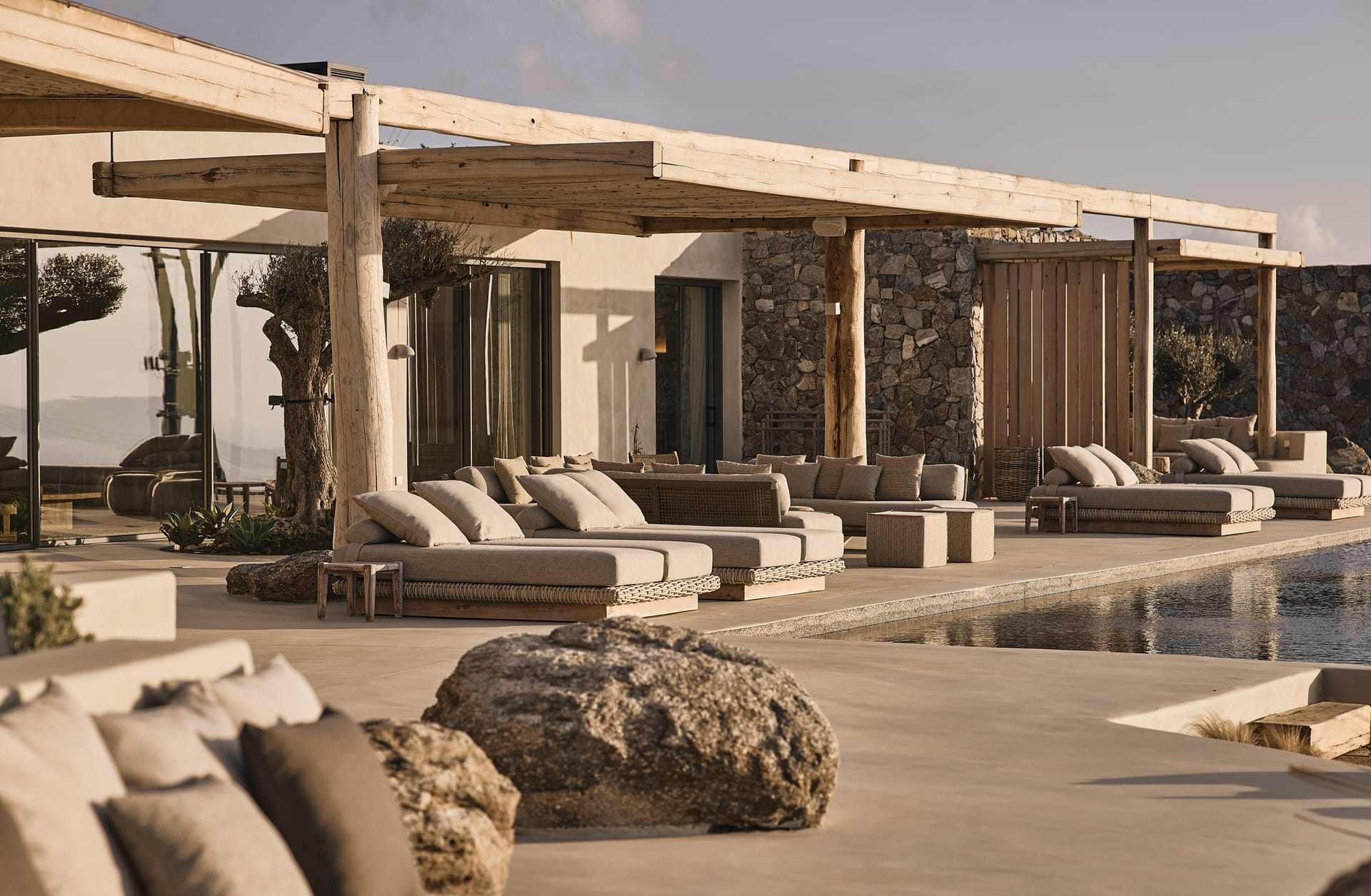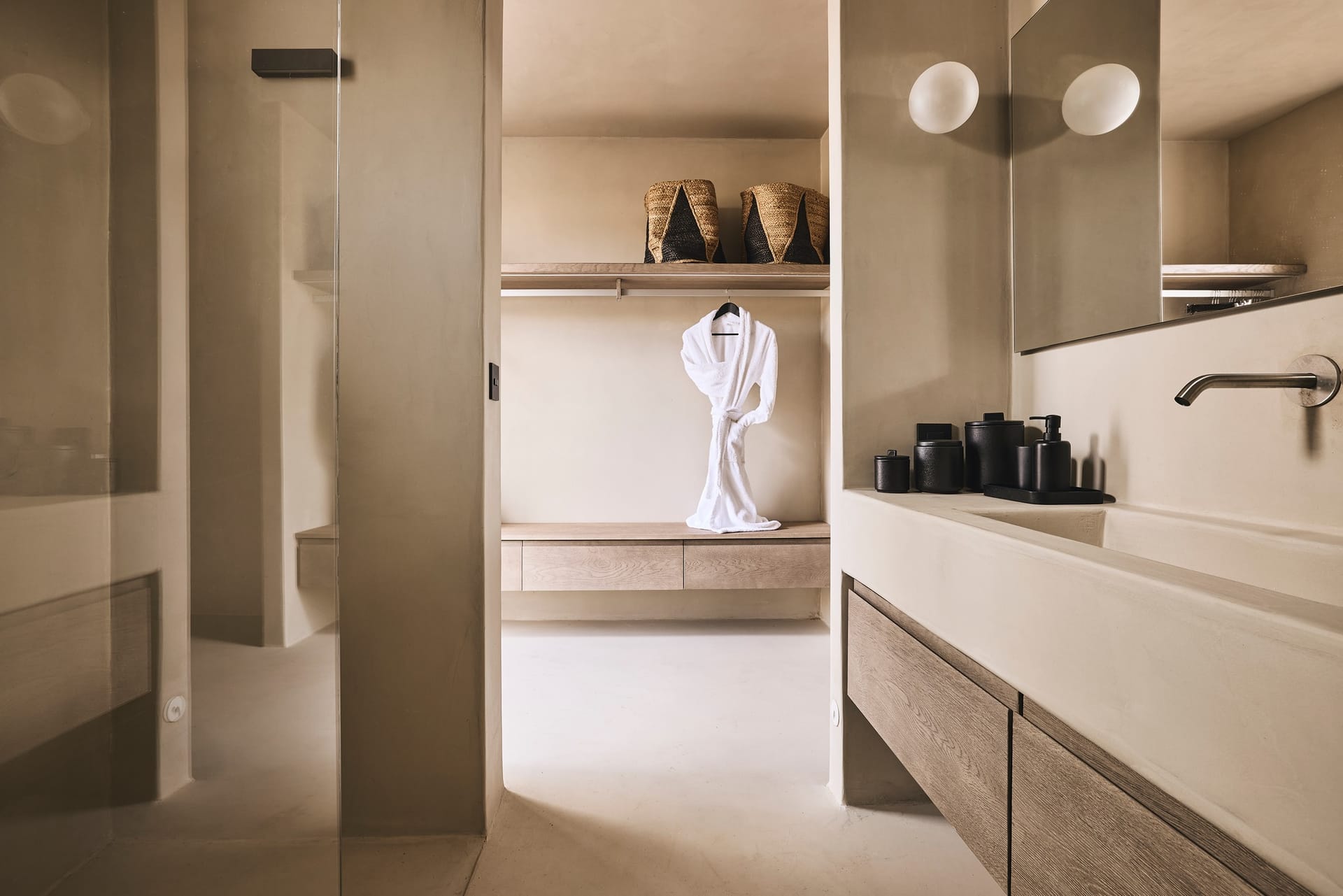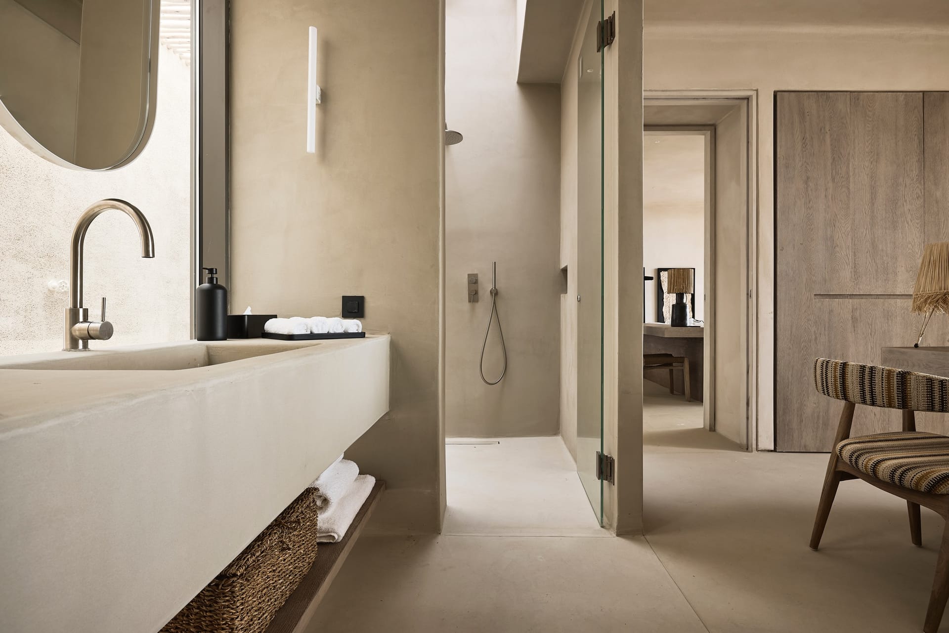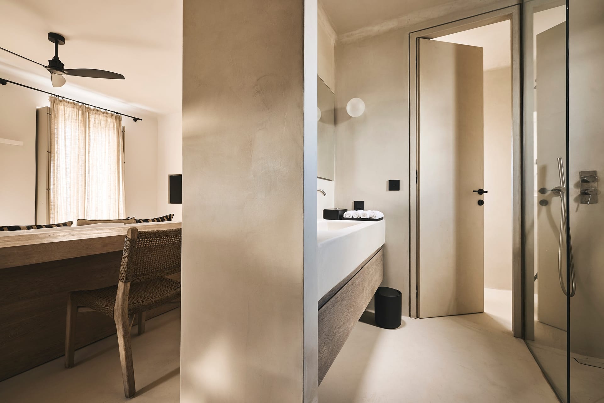 - 1 master suite (84 m2) with lounge/workspace area, en-suite bathroom with shower, safe room, kingsize bed, mini bar, safe box, flat Smart TV, type-C fast charge ports, outdoor lounge, direct access tothe main pool area, unobstructed sea and sunset views.