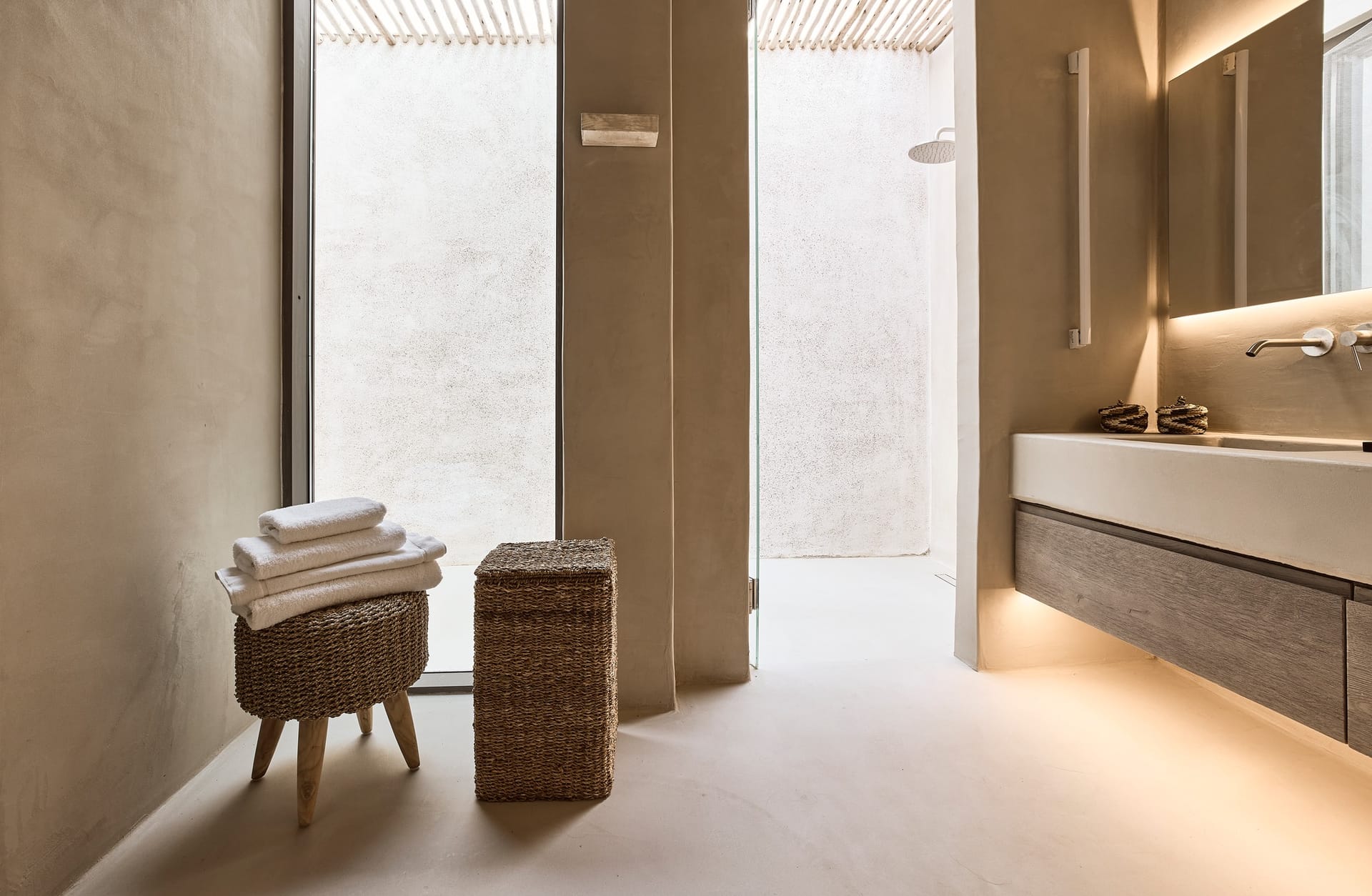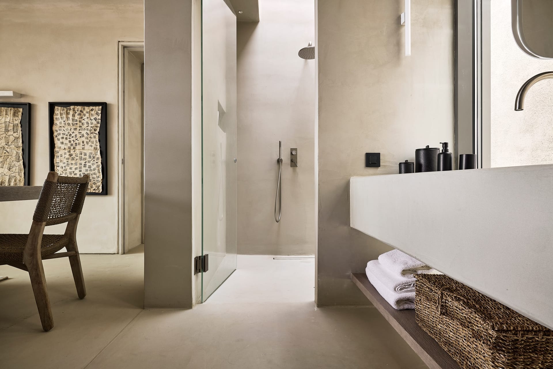 - 3 guestrooms (34 m2) 2 of which interconnected, with independent entrances (accessible from thehouse exterior only) each with an en-suite bathroom with shower, king size bed, mini bar, safe box,flat Smart TV, type-C fast charge ports, private outdoor lounge unobstructed sea and sunset views. Shared back patio with outdoor showers.
