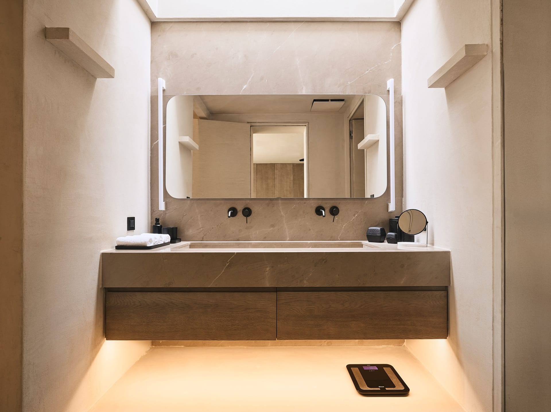 - 1 master suite (92 m2) with lounge/workspace area, en-suite bathroom with full-sized tub, dressingarea, king size bed, mini bar, safe box, flat Smart TV, type-C fast charge ports, outdoor lounge, directaccess to the main pool area, unobstructed sea and sunset views.