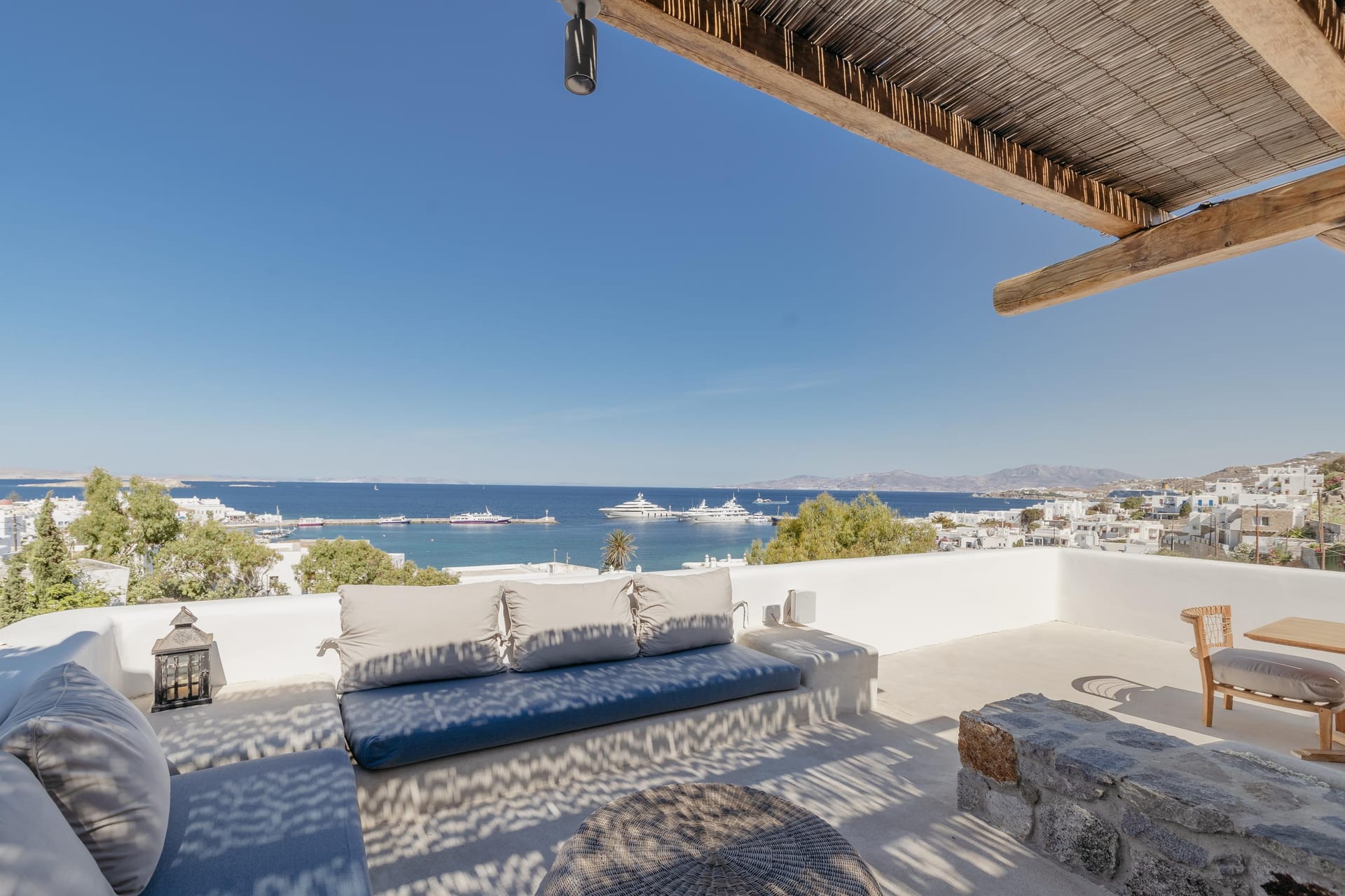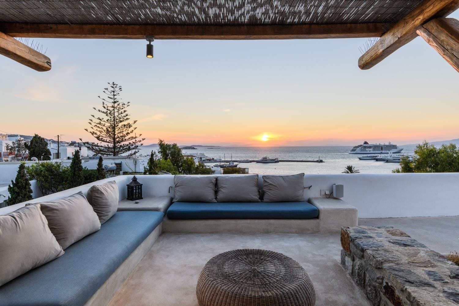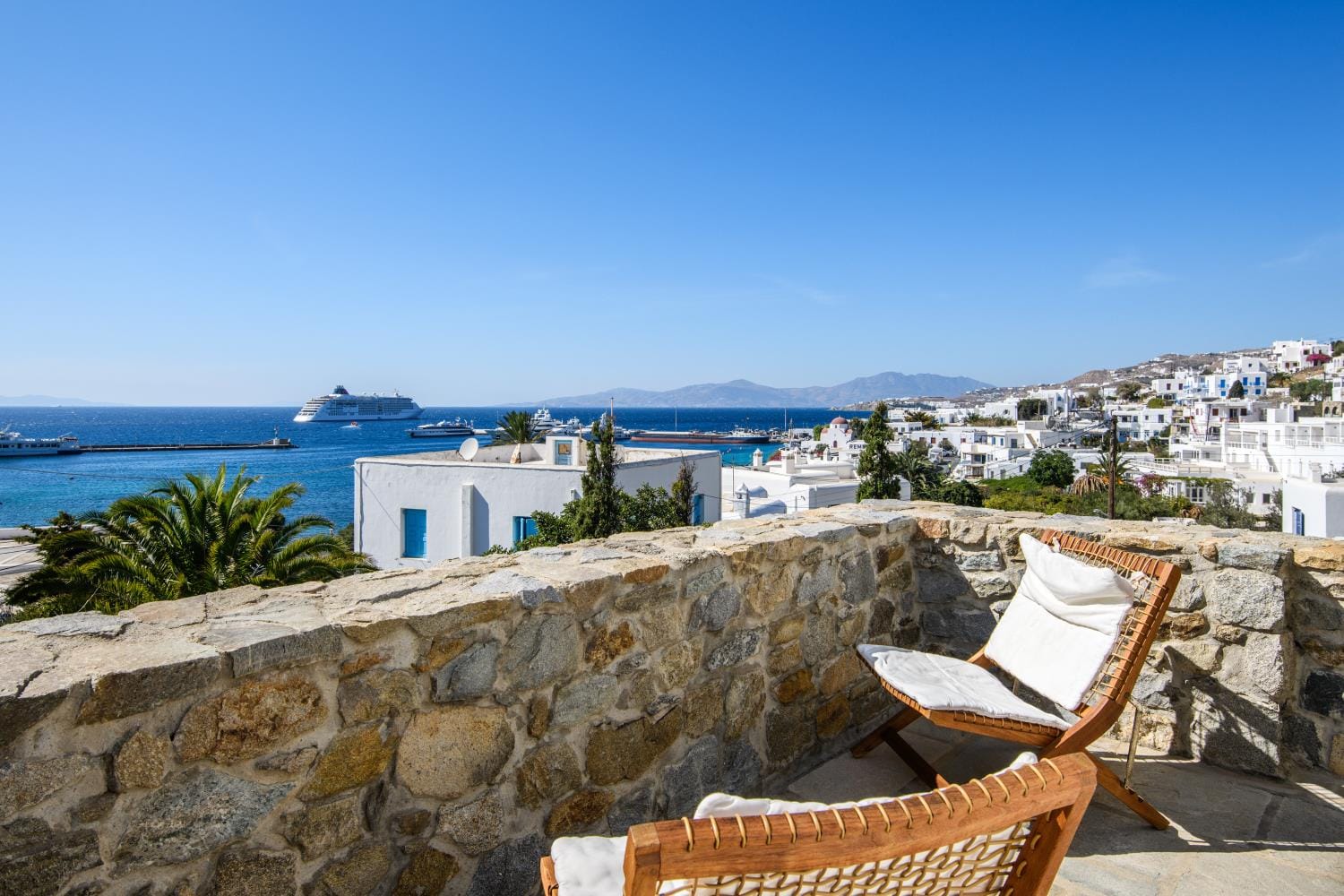 Villa Kipos the only Villa that is located in Mykonos Town and offers its guests the ultimate Mediterranean experience, with a superb panoramic view of the Aegean Sea, Mykonos Town, the old and new port, and breathtaking sunsets.