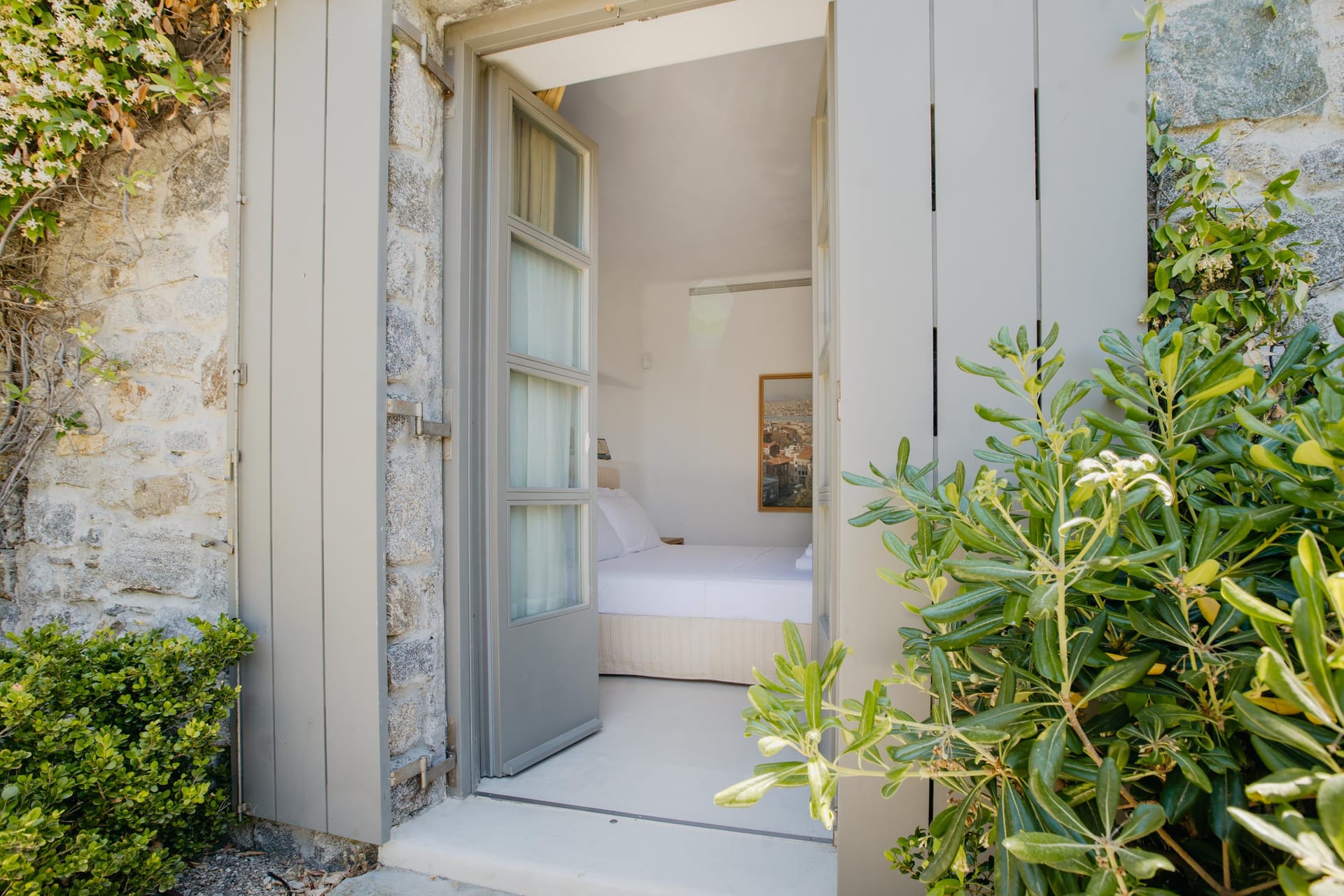 Room 5: 40m2 , 1 open patio with access to pool area through the small path, super king size bed. The room has a small living area and it is equipped with a safe box, hairdryer, A/C, bathroom amenities and towels.