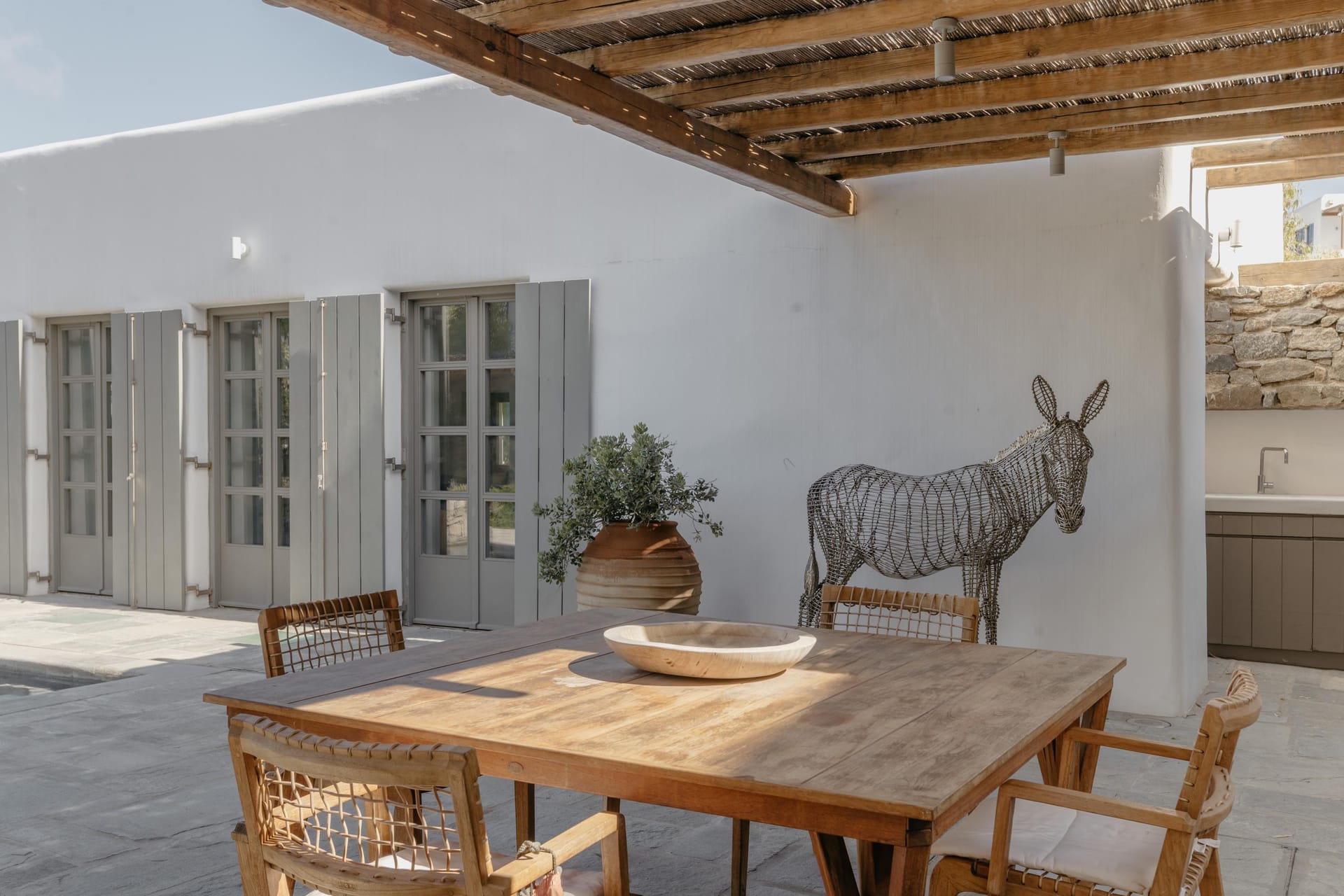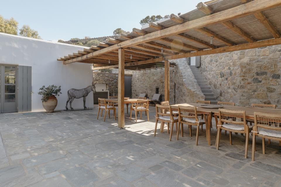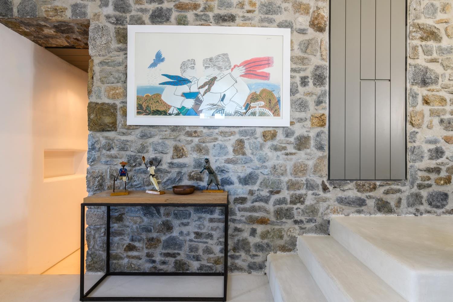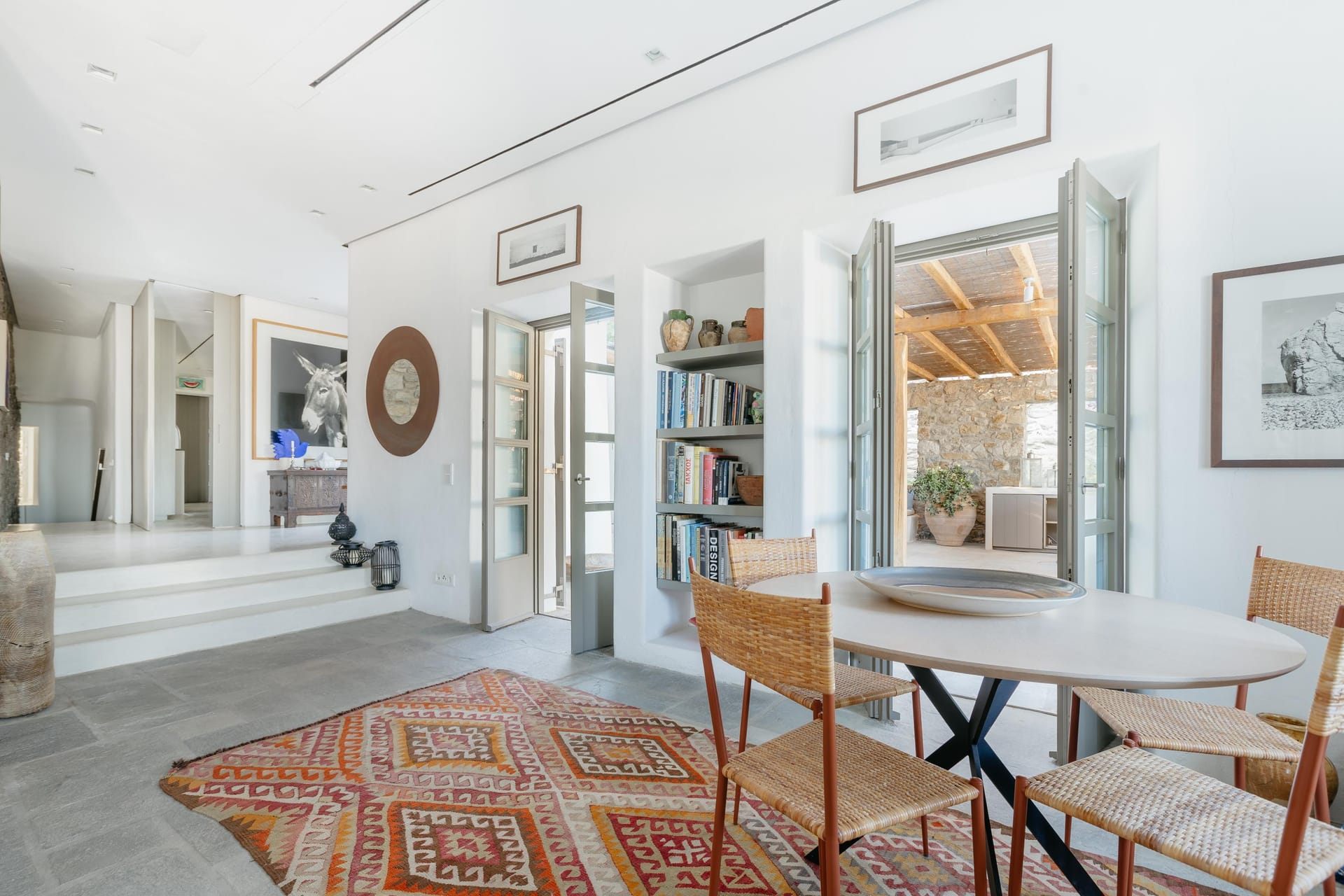 Bathed in the world-famous Cycladic light and cooled by the Aegean breeze, it is one of the largest Villas in Mykonos (1091 sqm), with an adjacent Gym (50sqm), built on a plot of 3,200sqm, and offers the ideal holiday destination for large families or groups of friends up to 16 people.