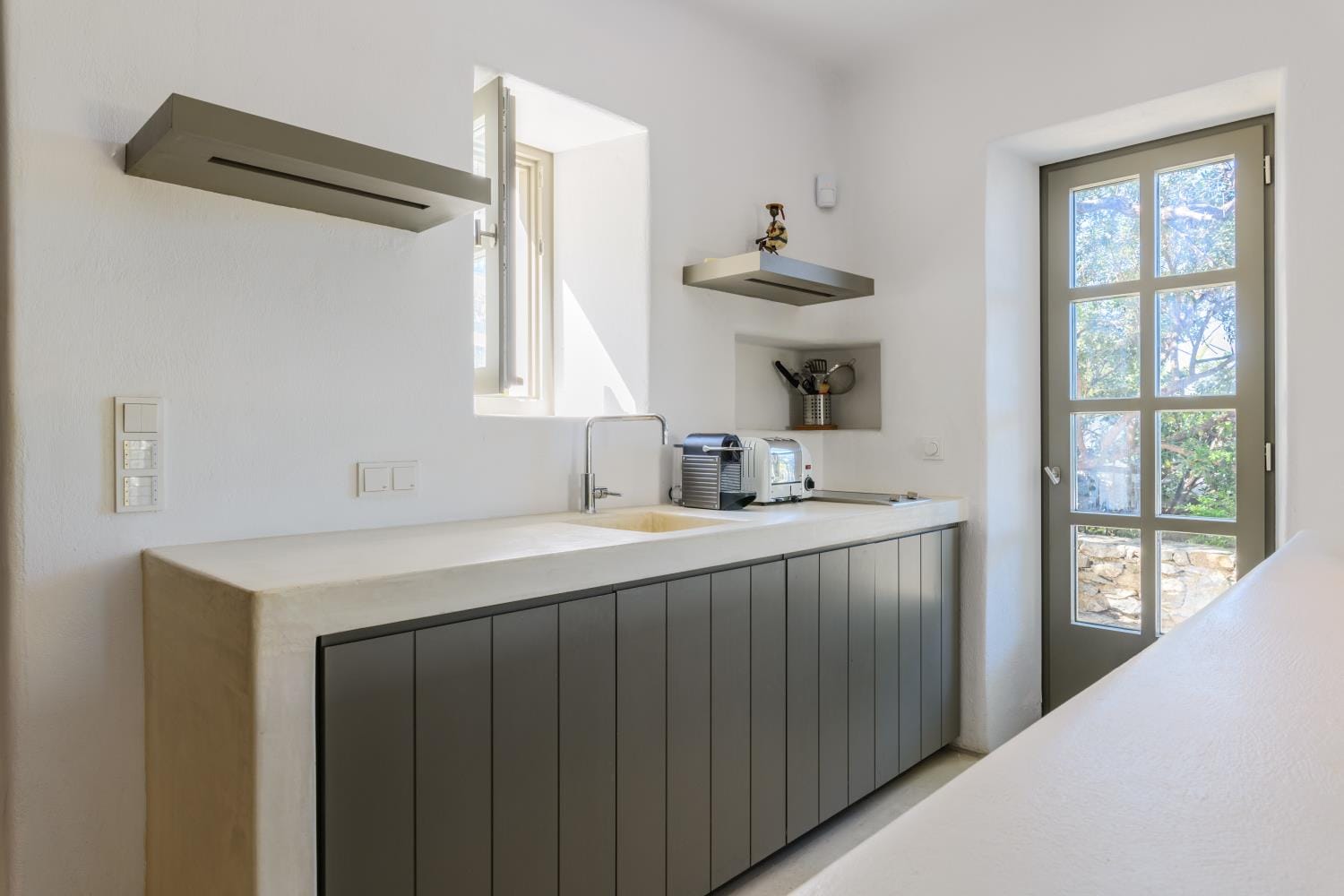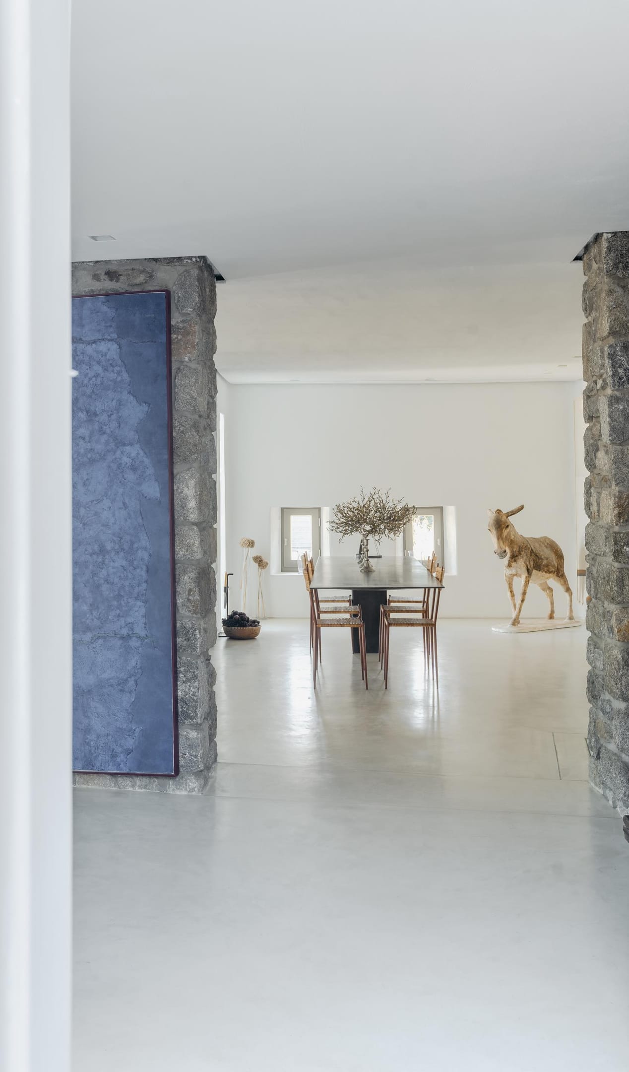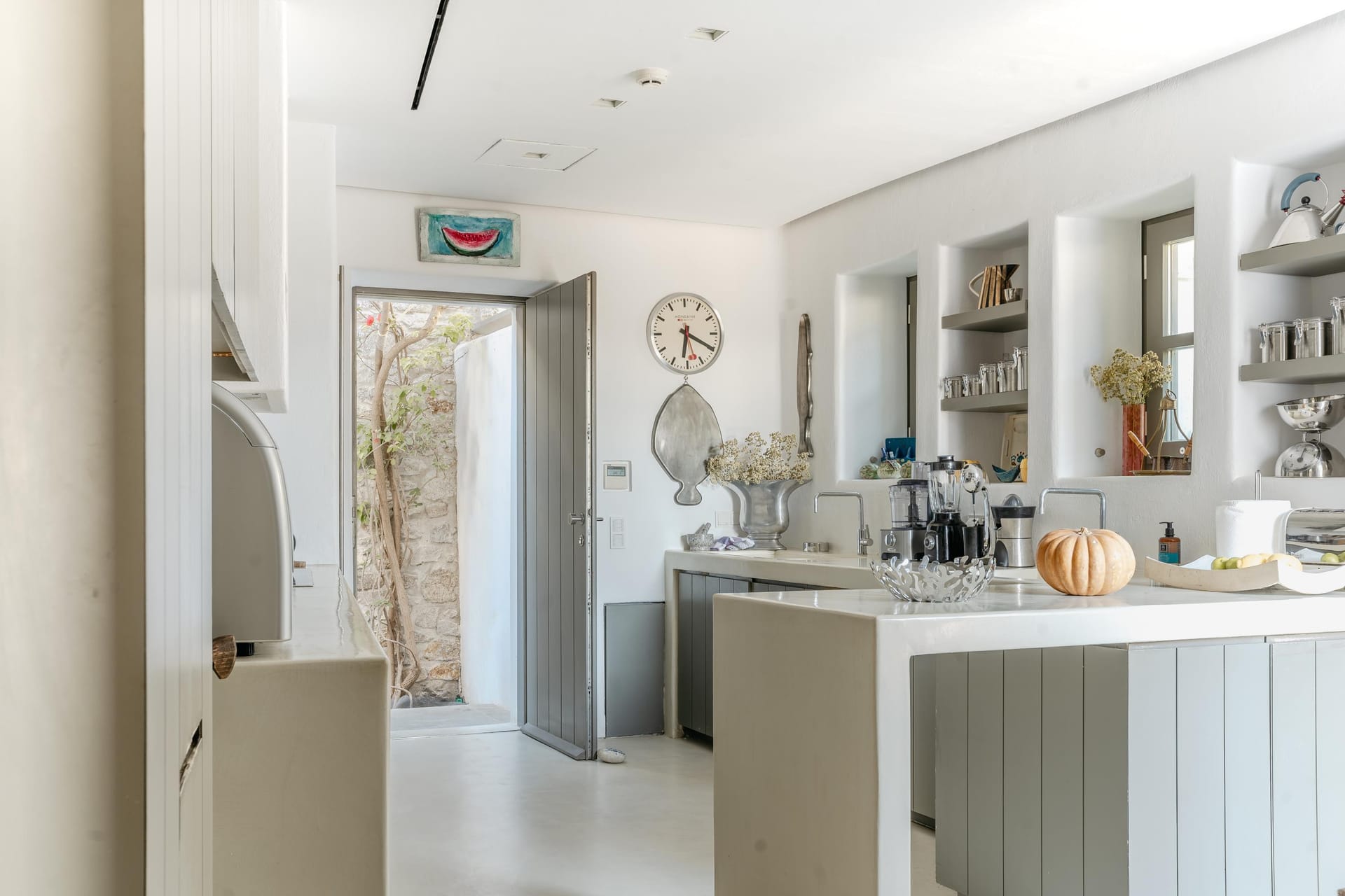 Bathed in the world-famous Cycladic light and cooled by the Aegean breeze, it is one of the largest Villas in Mykonos (1091 sqm), with an adjacent Gym (50sqm), built on a plot of 3,200sqm, and offers the ideal holiday destination for large families or groups of friends up to 16 people.