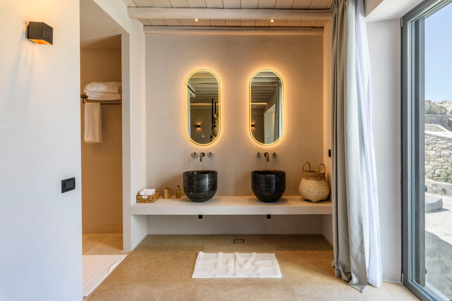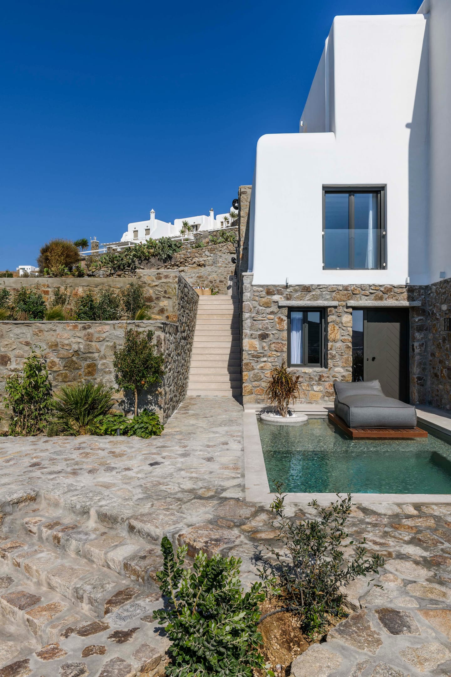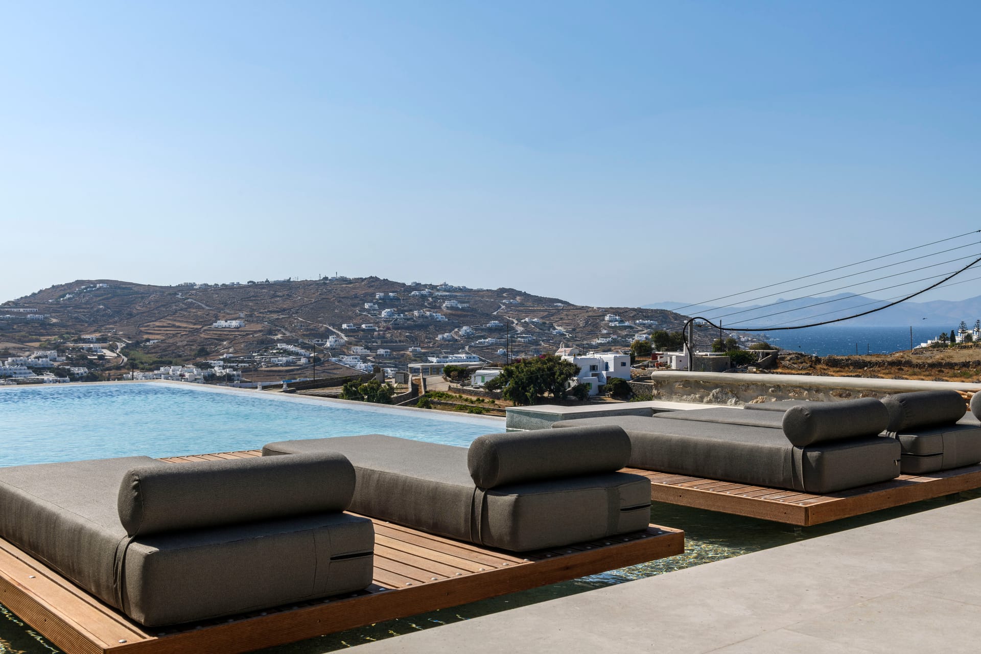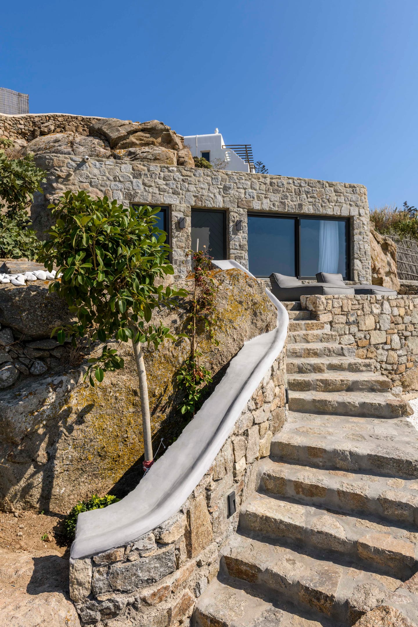 Villa Muse is A brand new high- end property, built on a 2500sq m plot. It features 9 master bedrooms on three different levels. The villa is a piece of jewel in a perfect location, offering unobstructed sea views to the Aegean Sea and the surrounding Islands. Also, this stylish and modern Villa is located next to the cosmopolitan Ornos Beach and Mykonos Town.