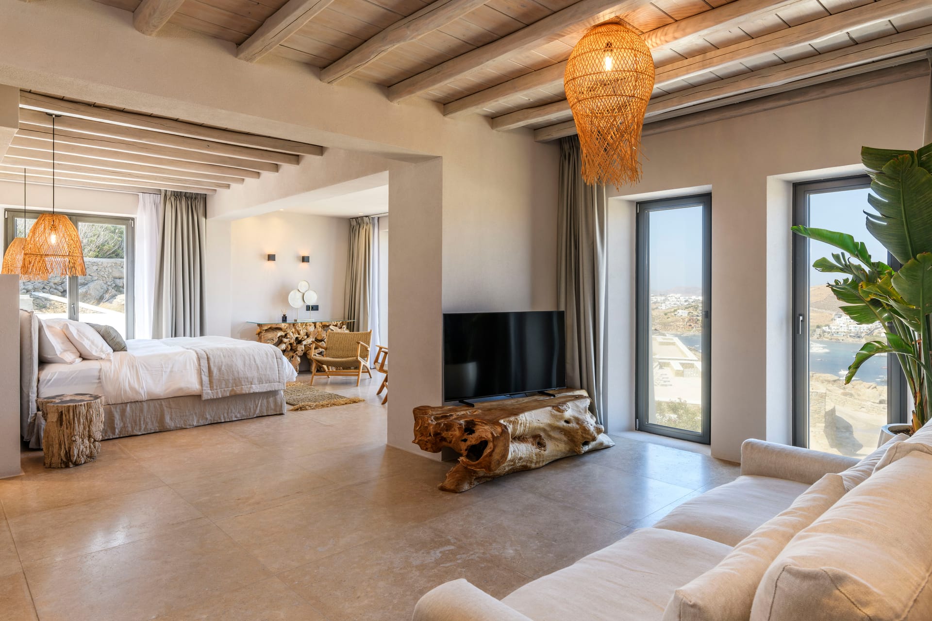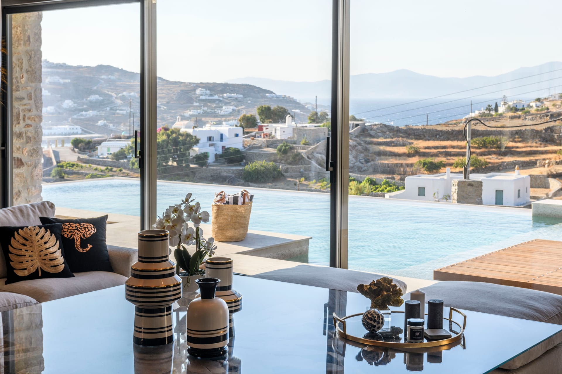Villa Muse follows a modern style with elegant and stylish touches in the interior and outdoor spaces. Guests can use the sunbeds around the pool in order to have a drink, relax and enjoy the spectacular views with their beloved ones. This Villa is ideal either for friends who want to have the time of their lives or for a family who wants to spend unforgettable moments all together.