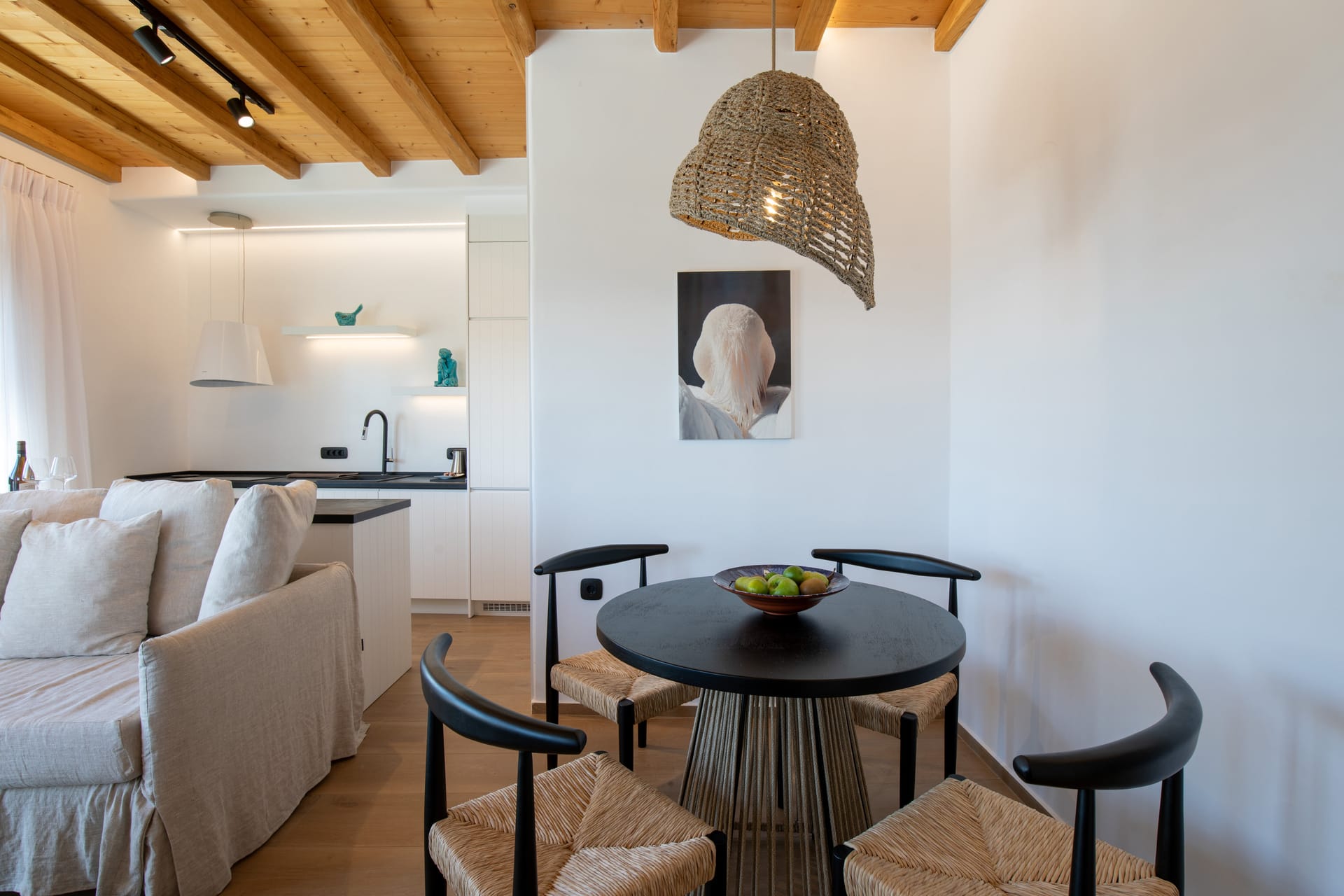 Relax on the plush sofa, which can be converted into a single bed, or enjoy a meal at the elegant dining table.