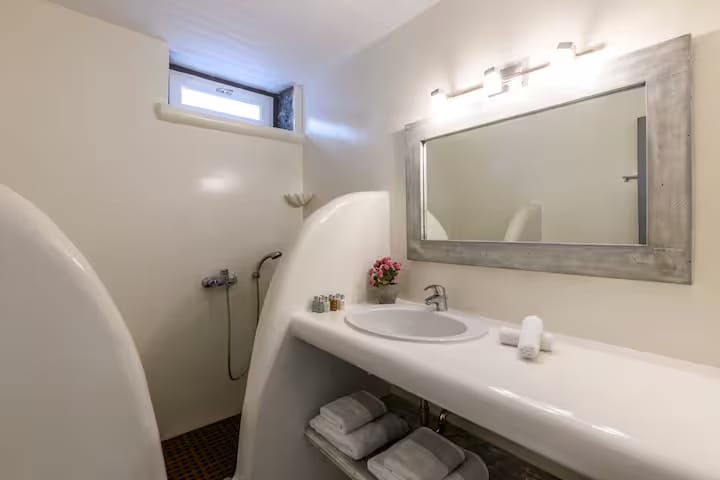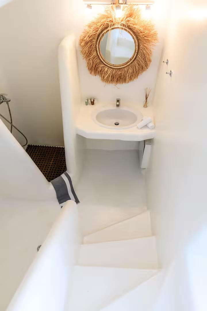 1 master bedroom 18 m², 1 double size bed. The room has direct access to the parking area with a view to Kalafatis beach and it is equipped with a safe box, hairdryer, bathroom amenities and towels.