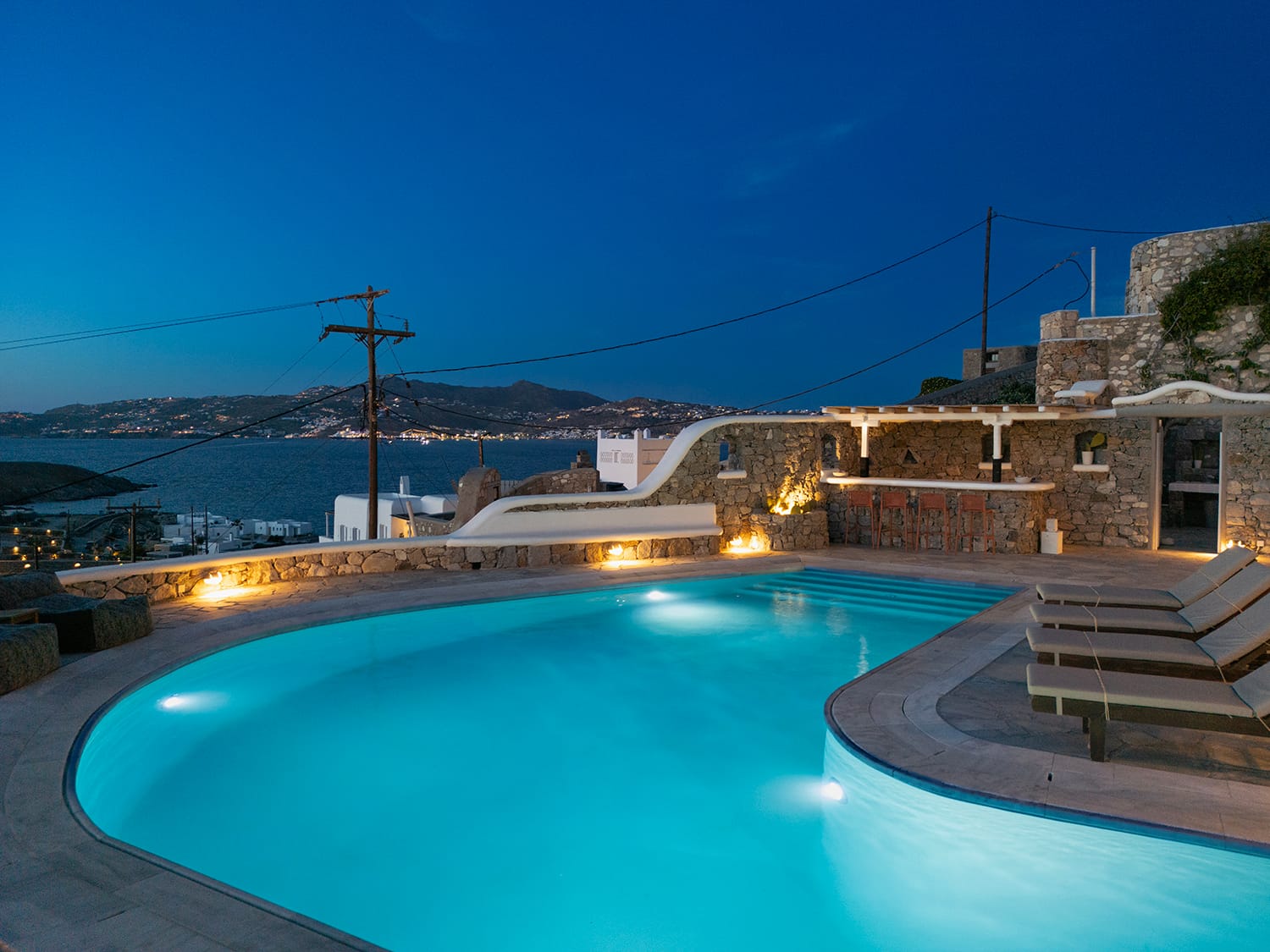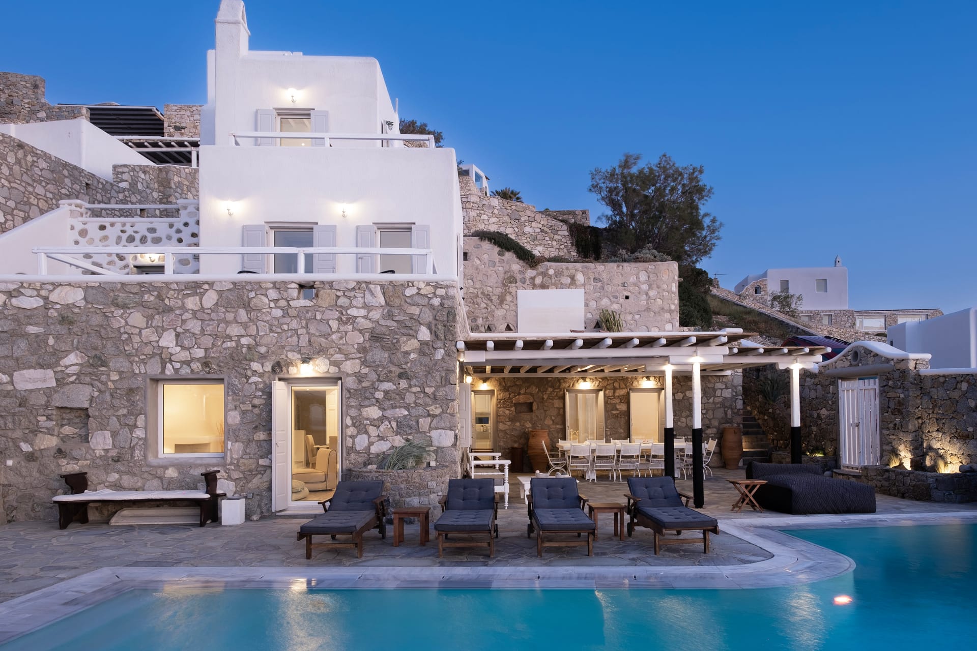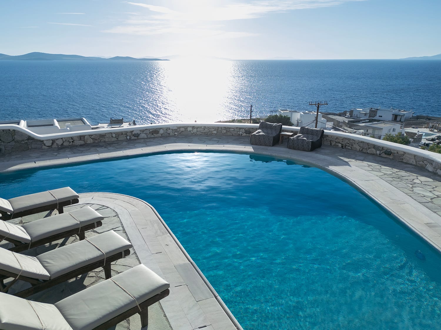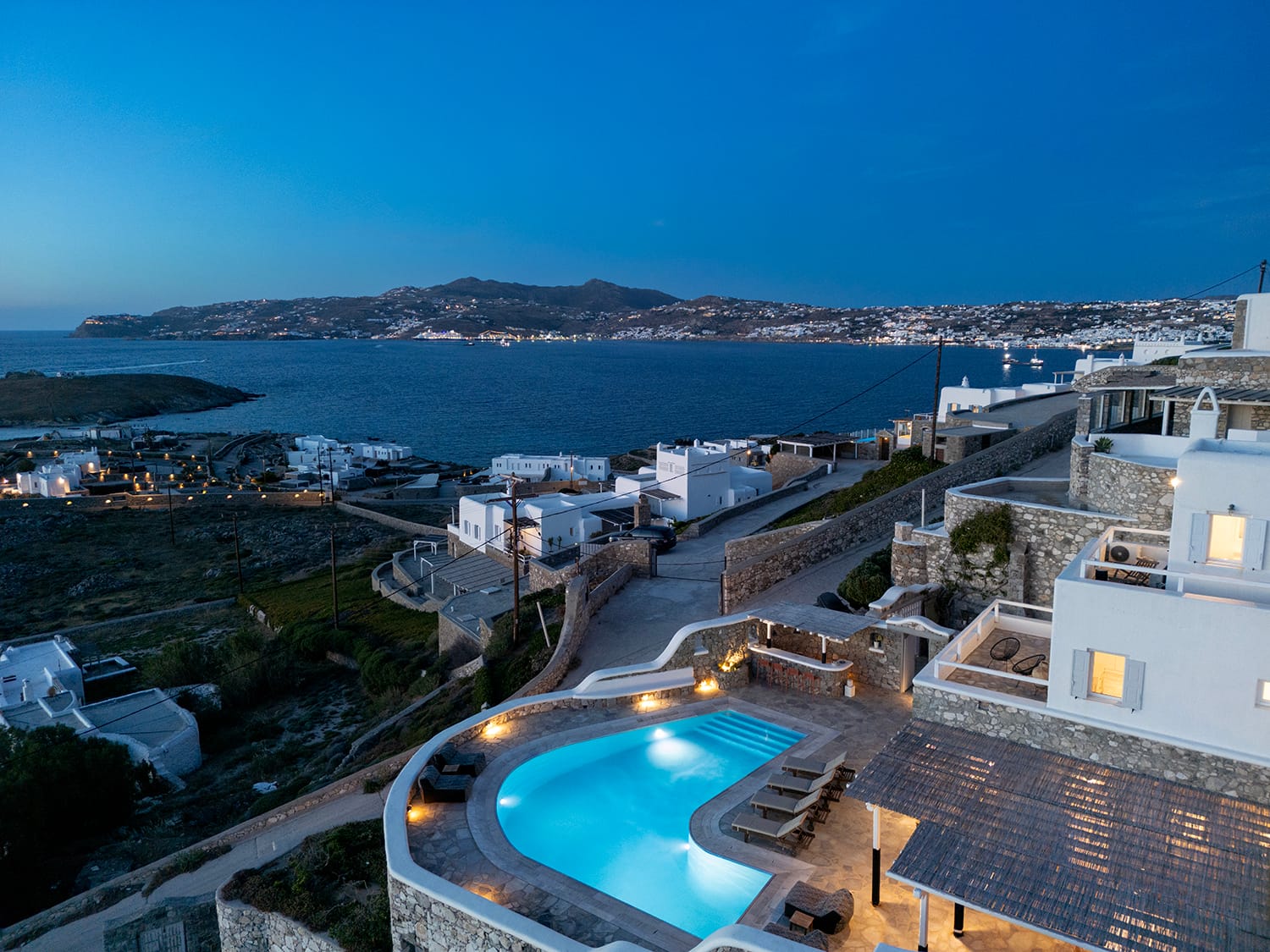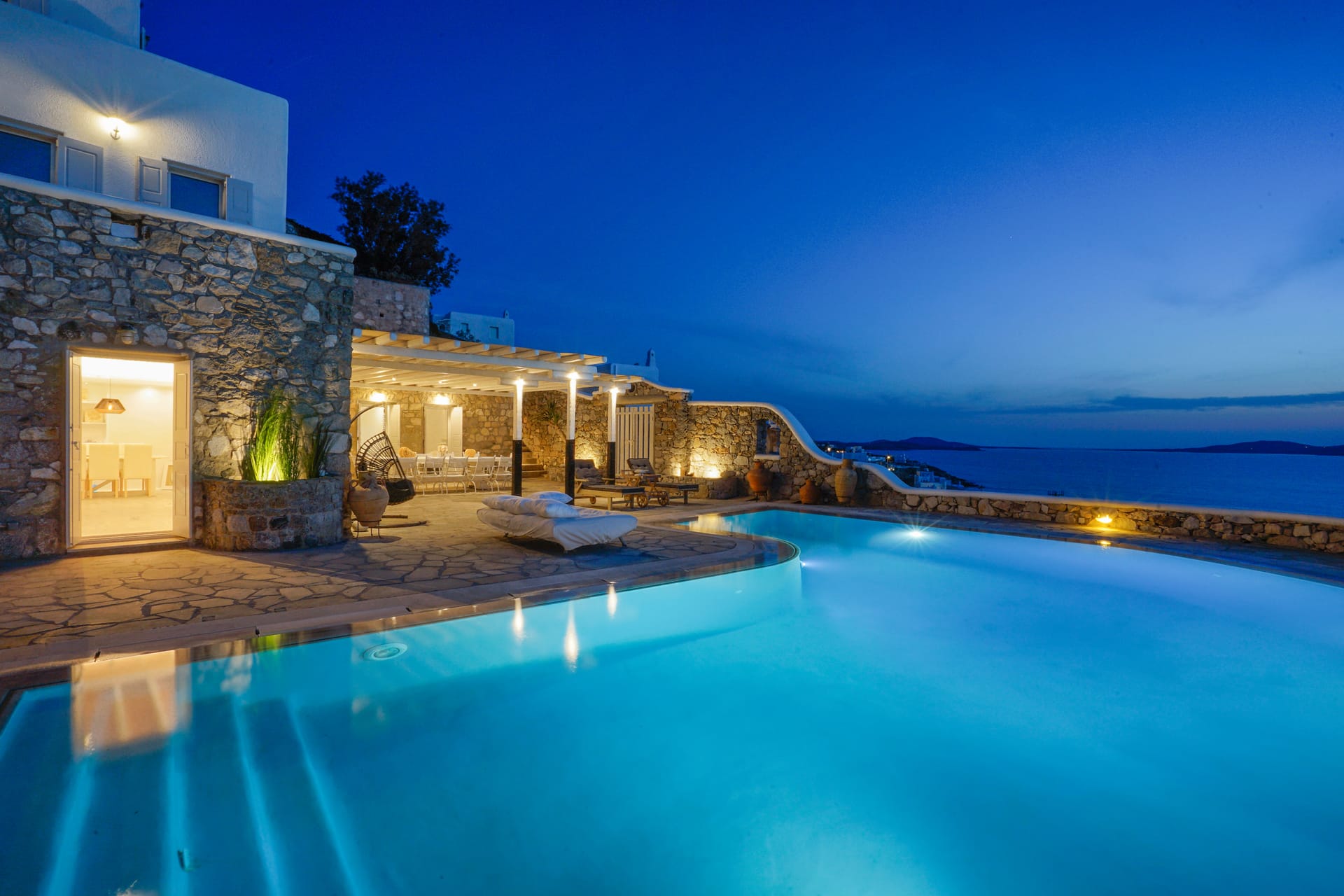 Mykonos airport is about 6 km away, while the port is 9 km approximately.A transfer to/from the airport or port can be arranged from our team. Guests will be met at the Villa to proceed with the check-in and collect the keys. We do accomodate early check-in subject to availability.The Villa Manager is on call anytime for whatever you might need. Our Concierge team is available to support you for any enquires you think necessary to make your staying comfortable.