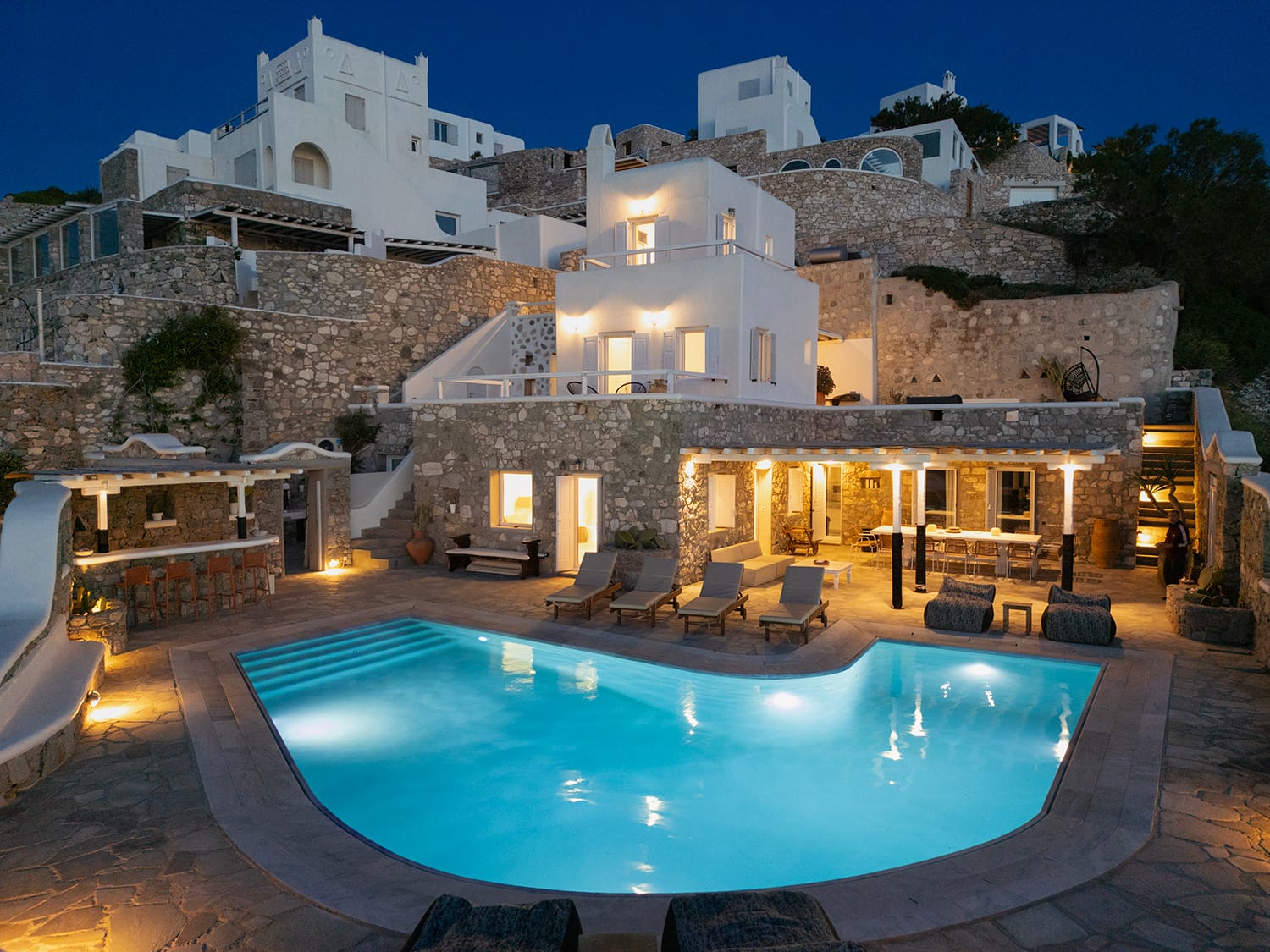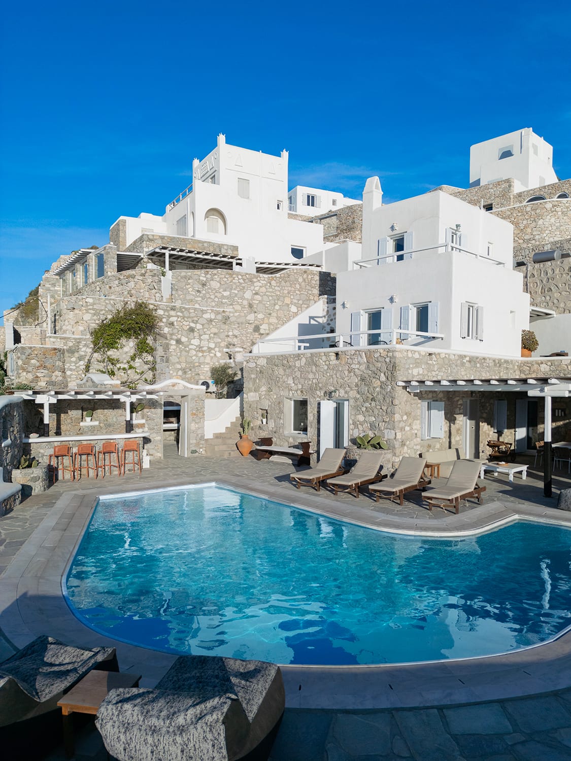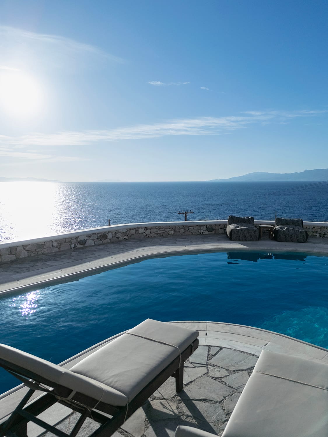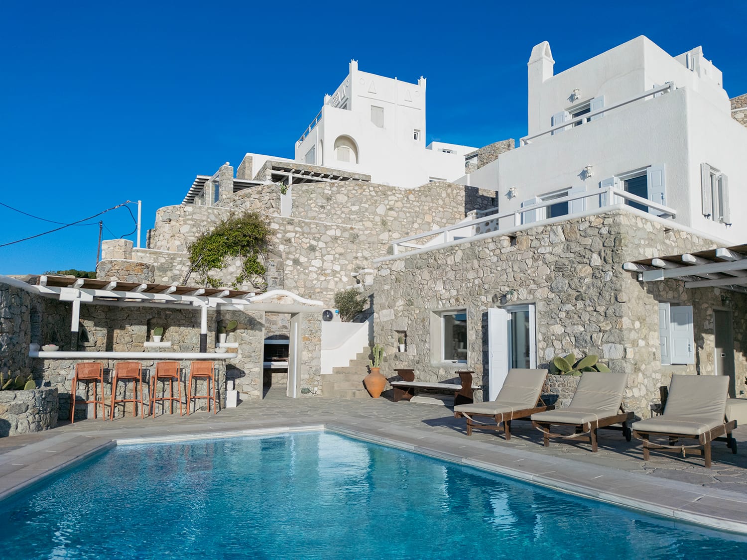 Mykonos airport is about 6 km away, while the port is 9 km approximately.A transfer to/from the airport or port can be arranged from our team. Guests will be met at the Villa to proceed with the check-in and collect the keys. We do accomodate early check-in subject to availability.The Villa Manager is on call anytime for whatever you might need. Our Concierge team is available to support you for any enquires you think necessary to make your staying comfortable.