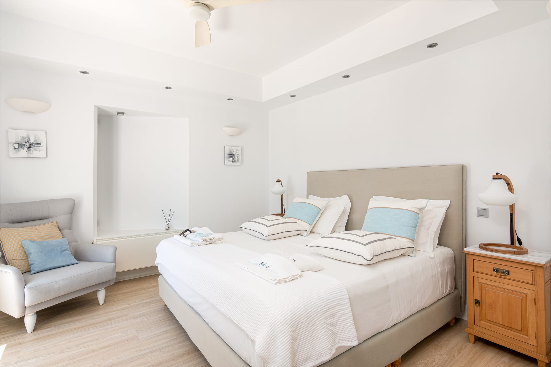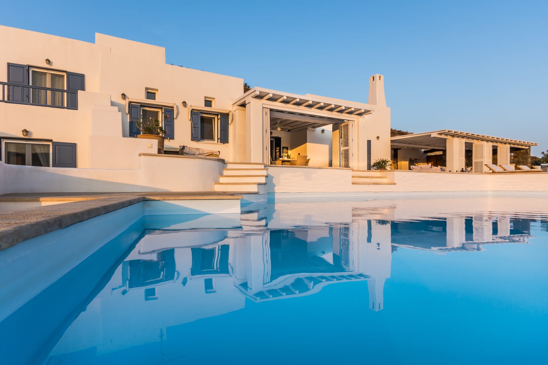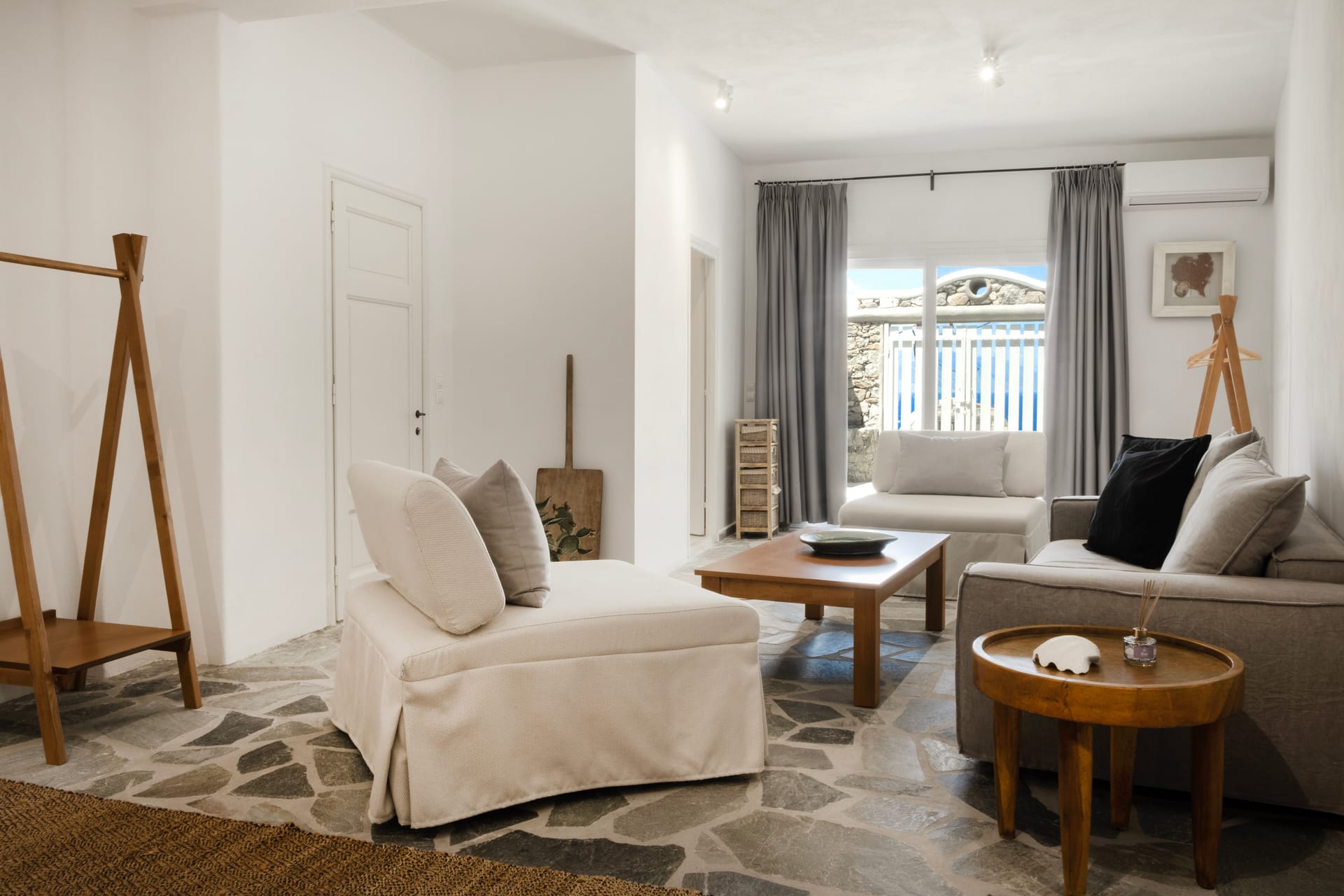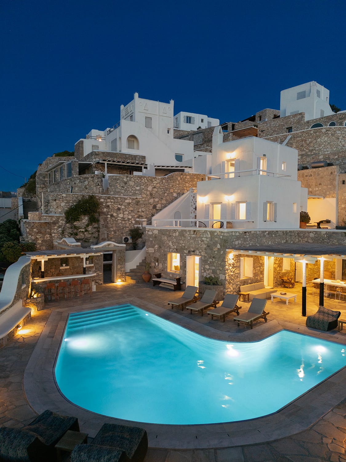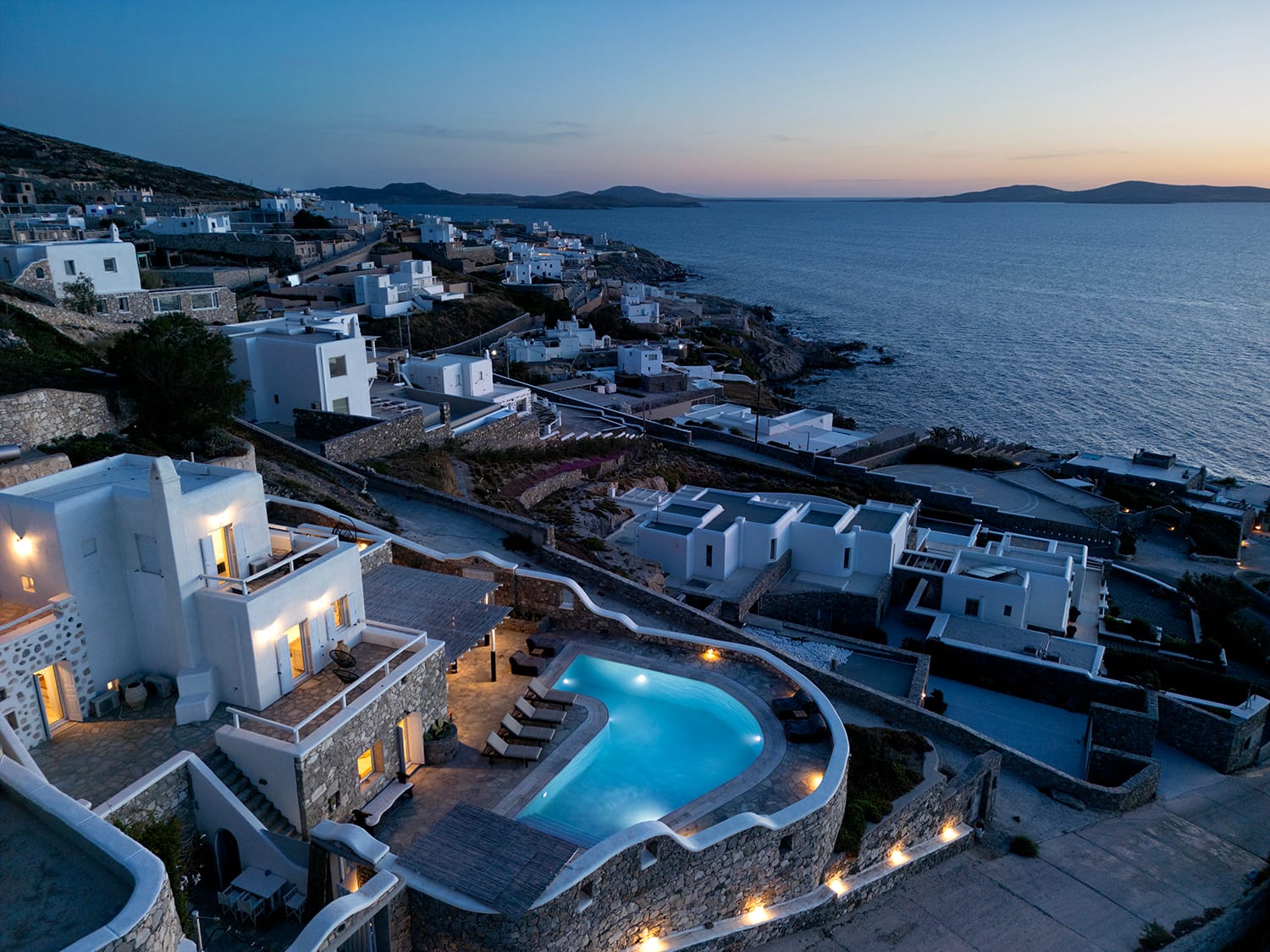 Mykonos airport is about 6 km away, while the port is 9 km approximately.A transfer to/from the airport or port can be arranged from our team. Guests will be met at the Villa to proceed with the check-in and collect the keys. We do accomodate early check-in subject to availability.The Villa Manager is on call anytime for whatever you might need. Our Concierge team is available to support you for any enquires you think necessary to make your staying comfortable.