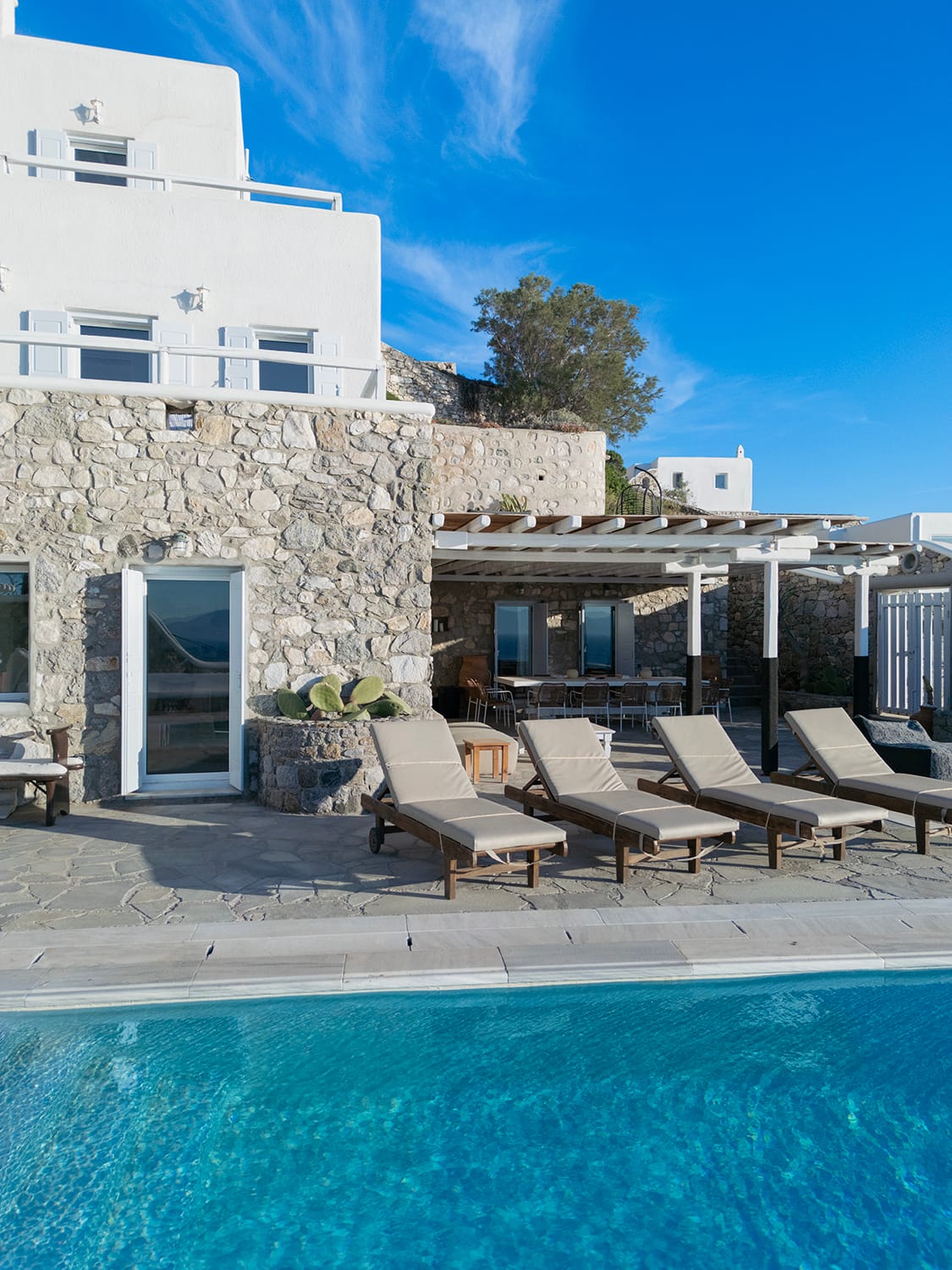 Villa Patron is one of the most original properties in Mykonos due to its traditional core being revived by a spectacular and meticulous renovation that classify this property among the most exclusive of the island.