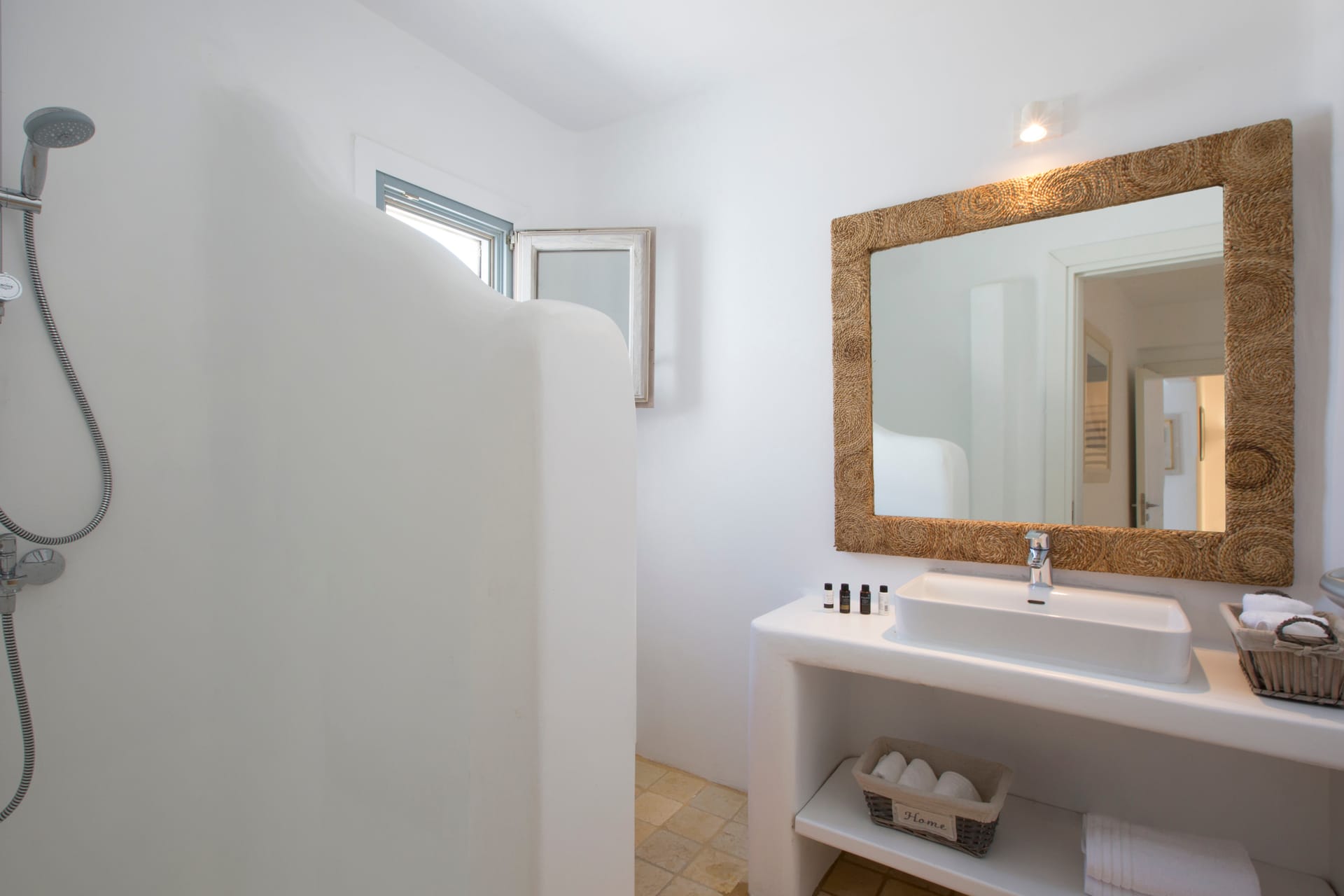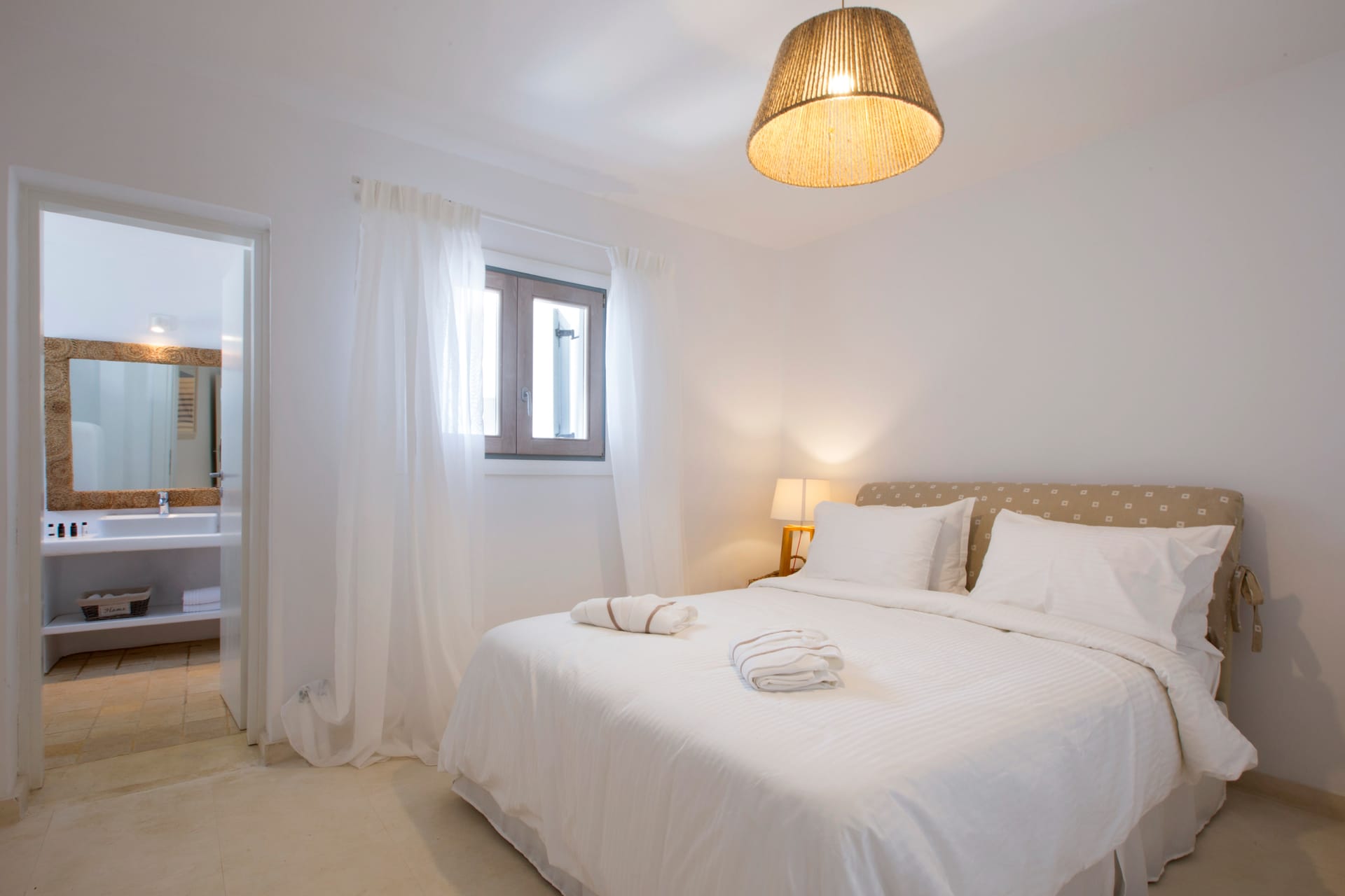 Distances: Ano Mera - 9 km, Mykonos Town - 16 km, Two small coves within walking distance, Mykonos Airport (JMK) - 16 km, nearest shop - 9 km