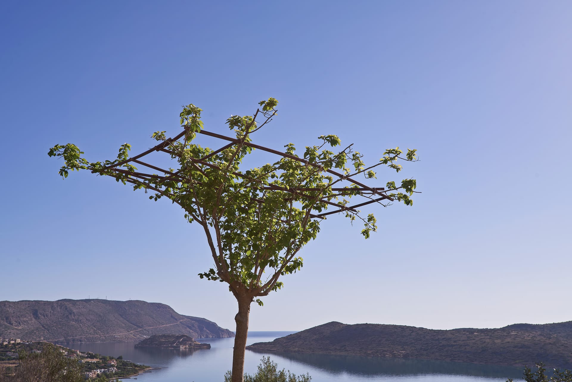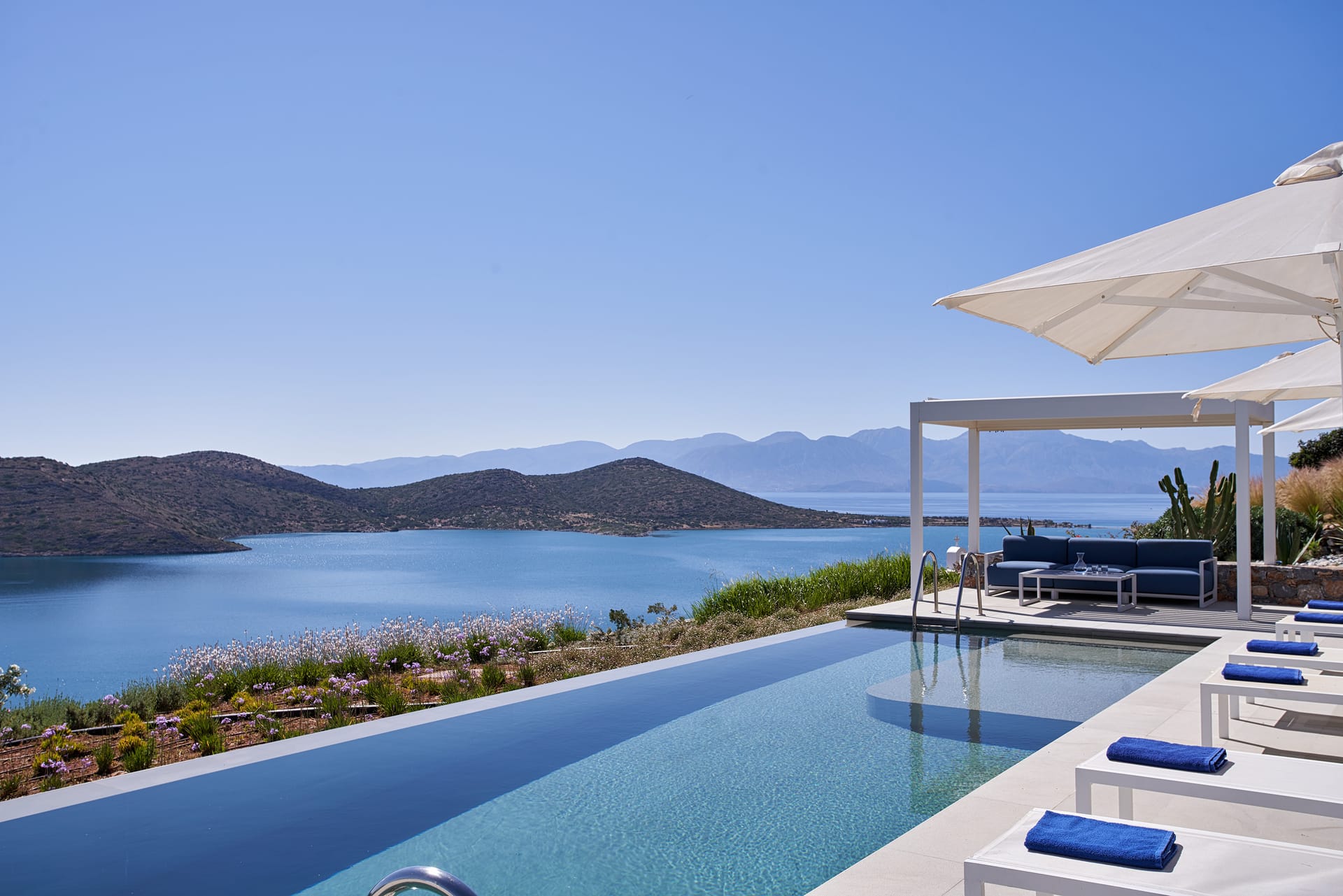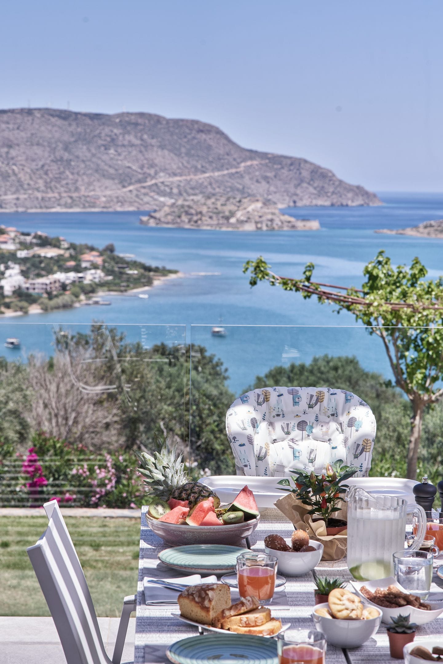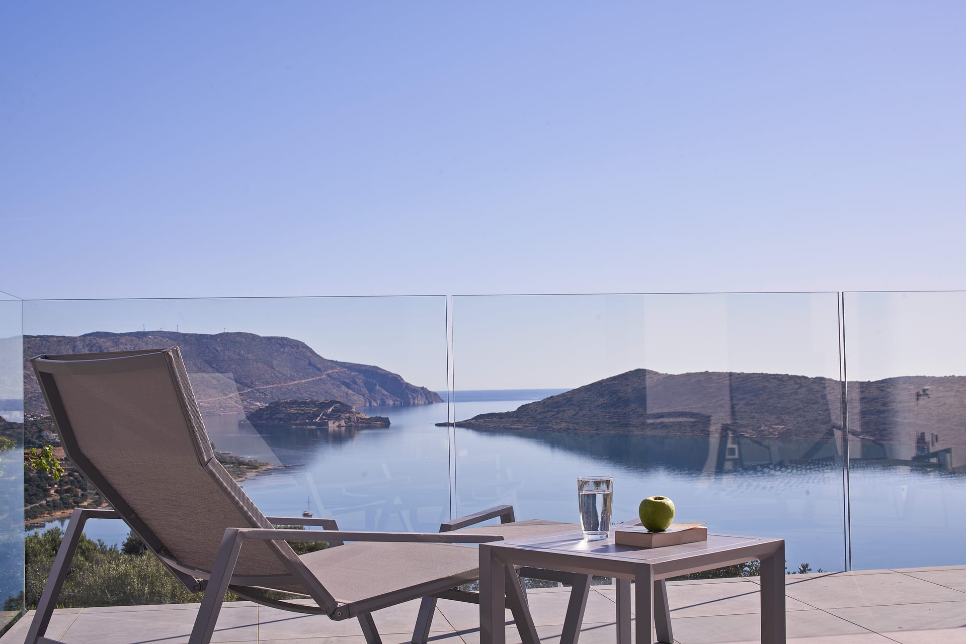 The villa was designed by a renowned French architect. You will feel at the end of the world (no direct neighborhood) while being only a few minutes away from the famous village of Elounda. It has many terraces equipped with adjustable bioclimatic pergolas and offers breathtaking views of the UNESCO heritage island of Spinalonga, the bay of Mirabello, and the mountains of Sitia in the background. The bay windows allow you to enjoy this incredible landscape and give the impression of sailing on the turquoise waters of the Aegean Sea.