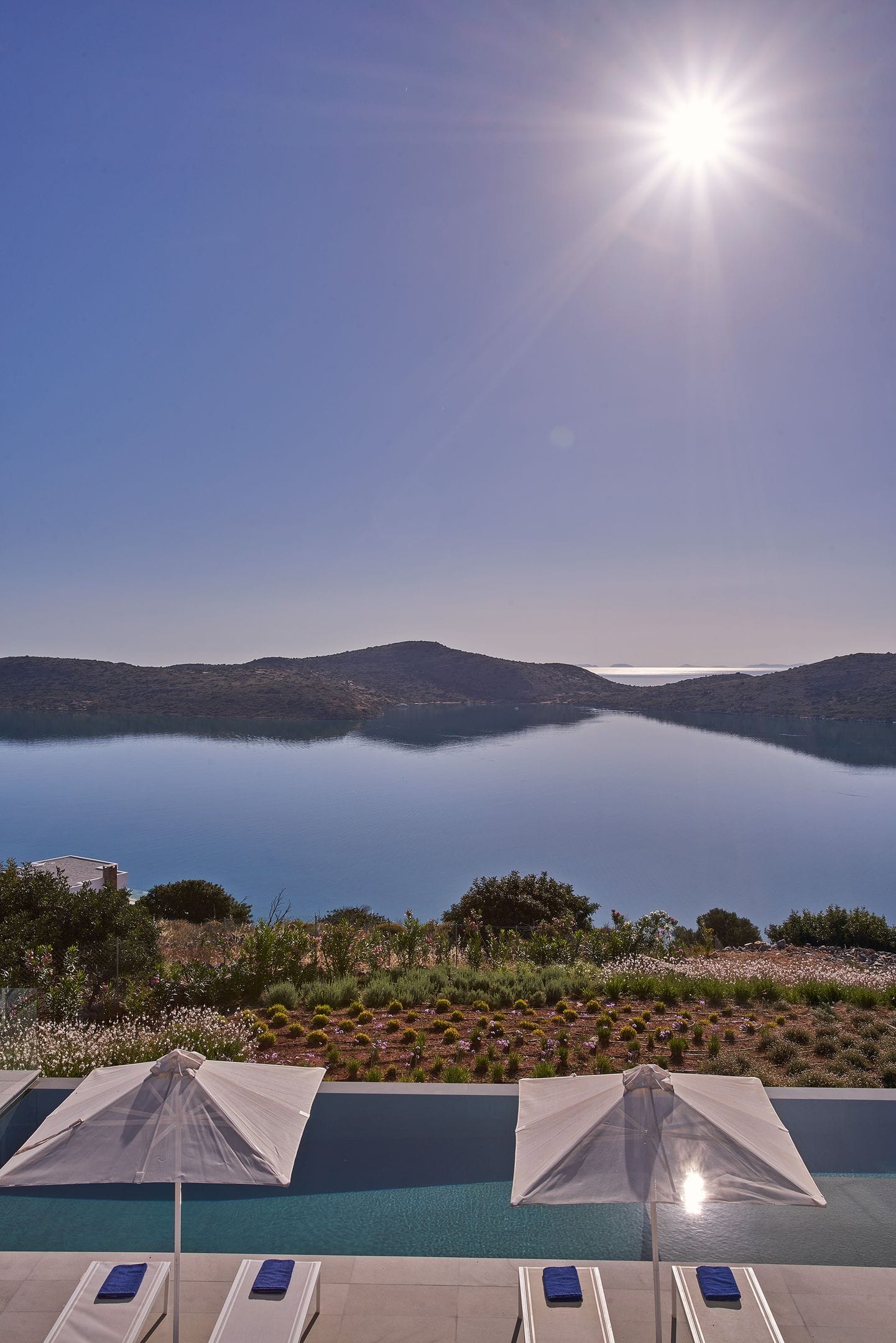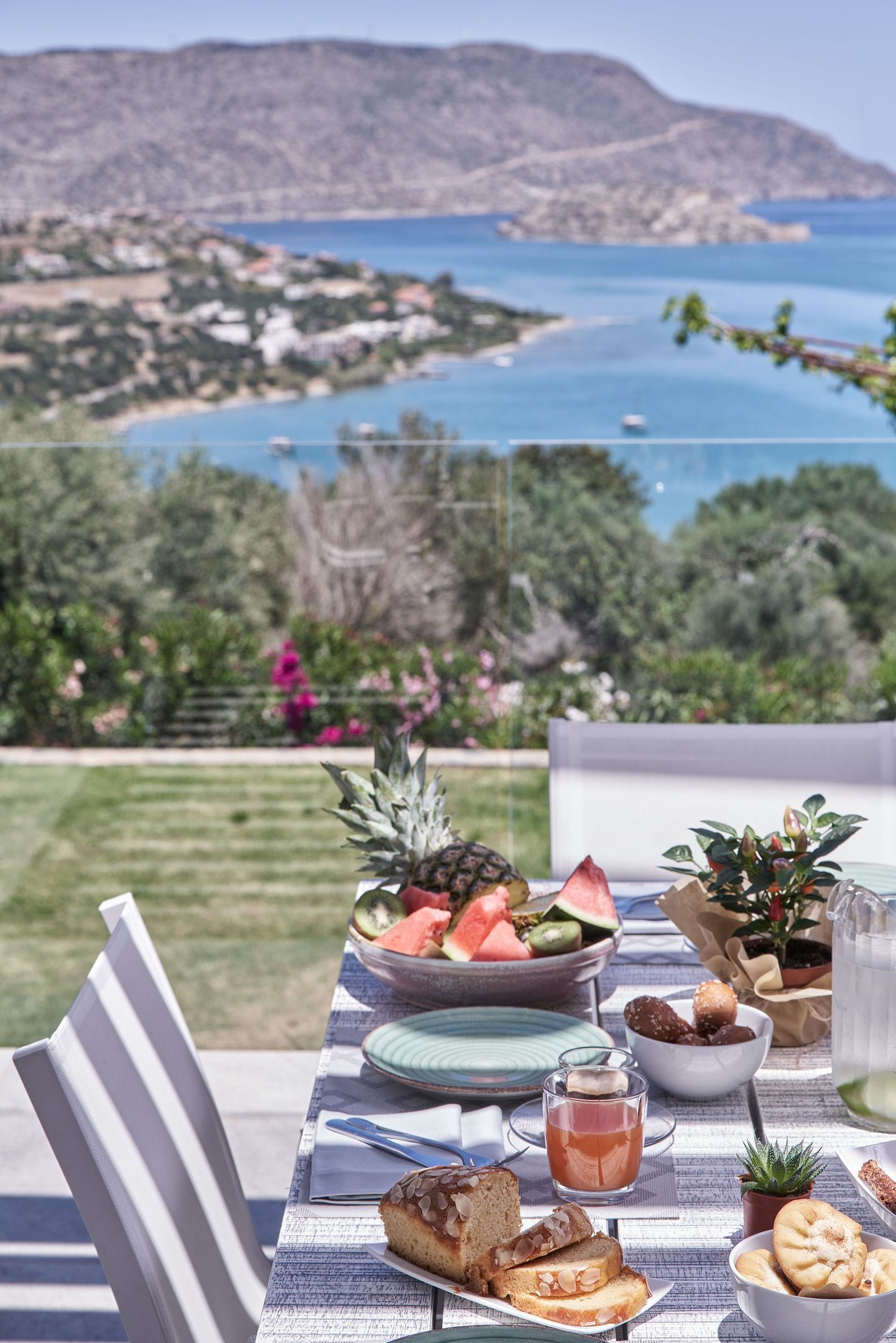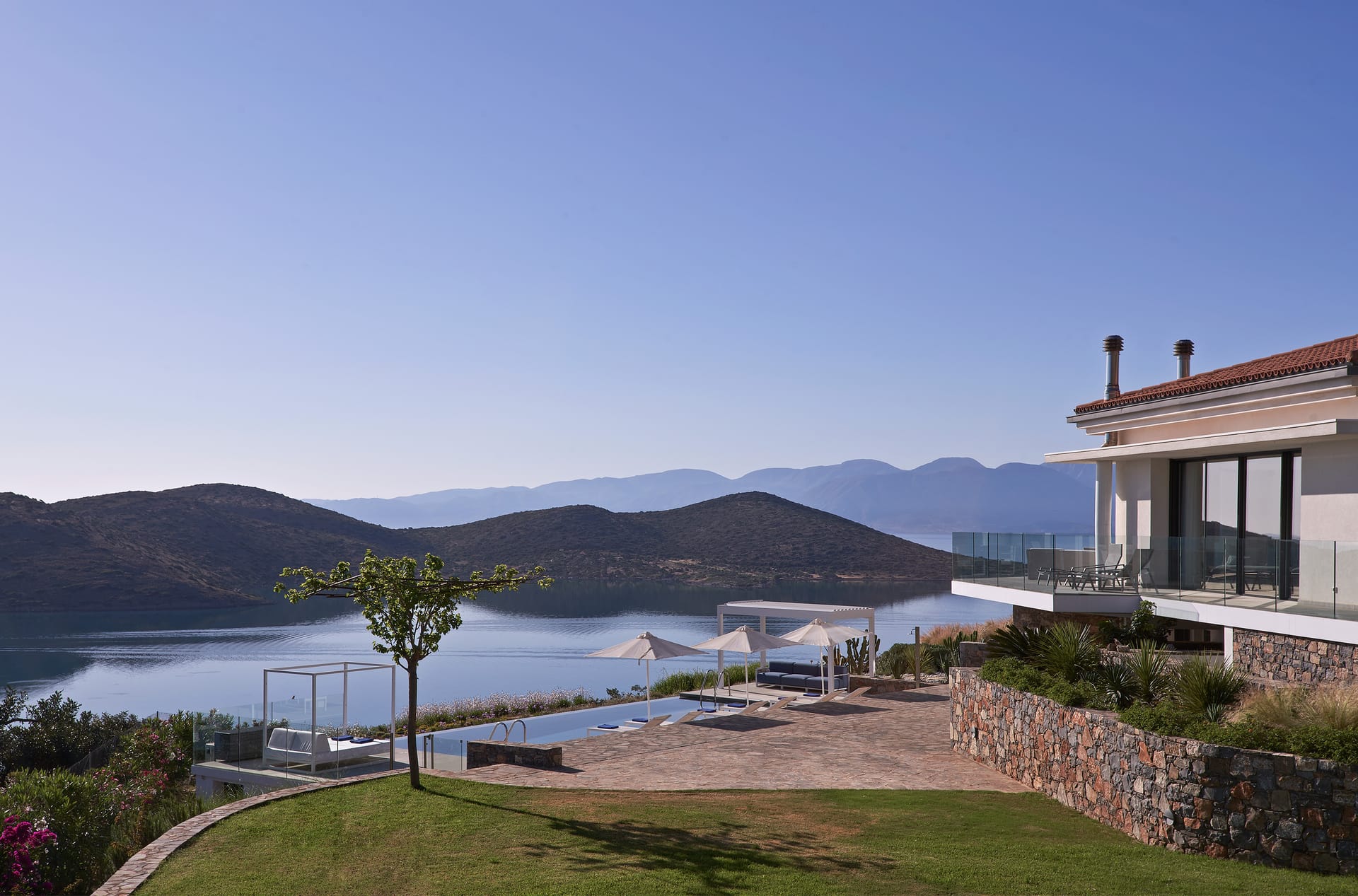 The villa was designed by a renowned French architect. You will feel at the end of the world (no direct neighborhood) while being only a few minutes away from the famous village of Elounda. It has many terraces equipped with adjustable bioclimatic pergolas and offers breathtaking views of the UNESCO heritage island of Spinalonga, the bay of Mirabello, and the mountains of Sitia in the background. The bay windows allow you to enjoy this incredible landscape and give the impression of sailing on the turquoise waters of the Aegean Sea.