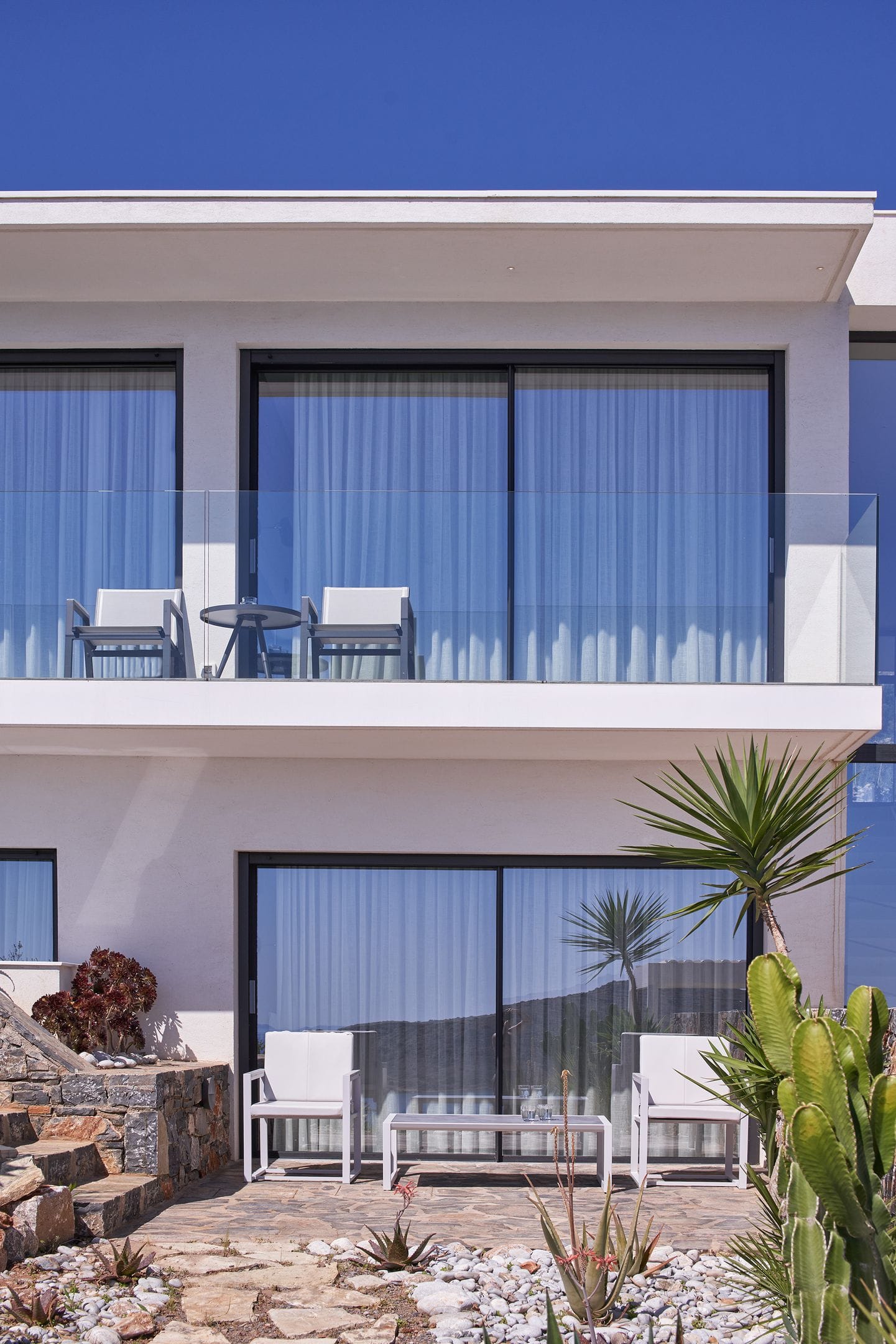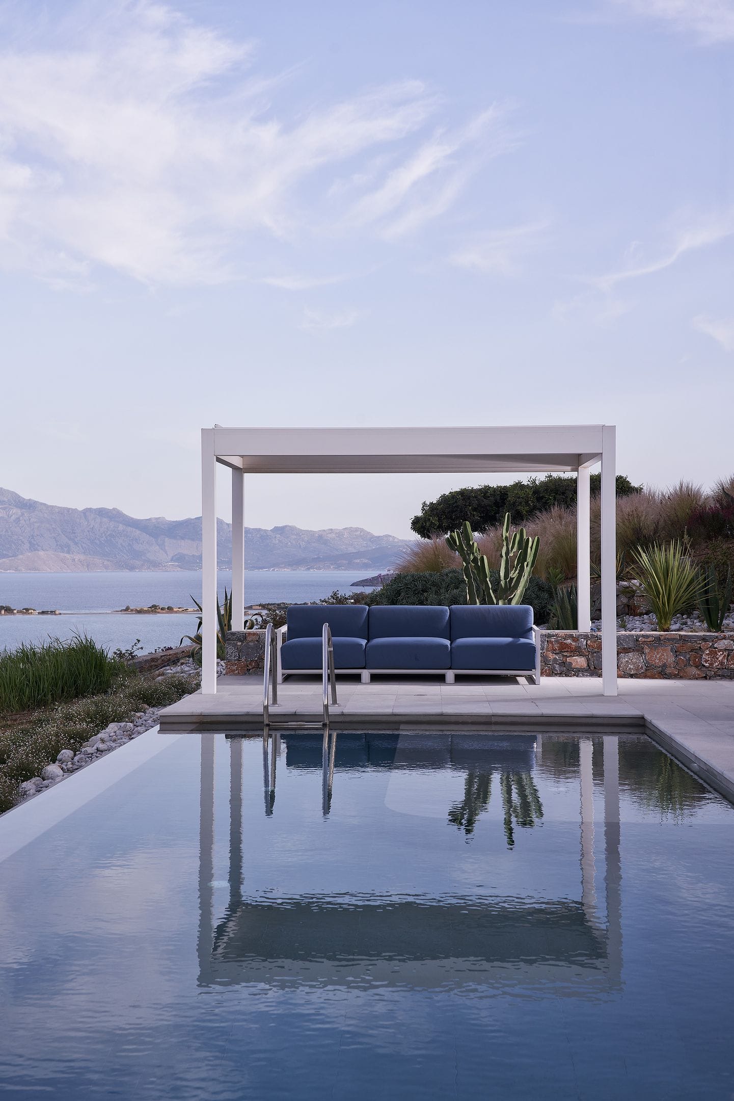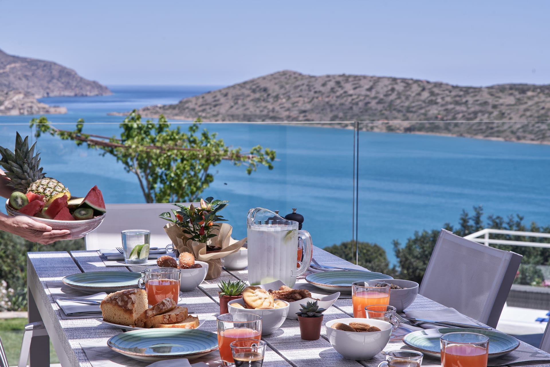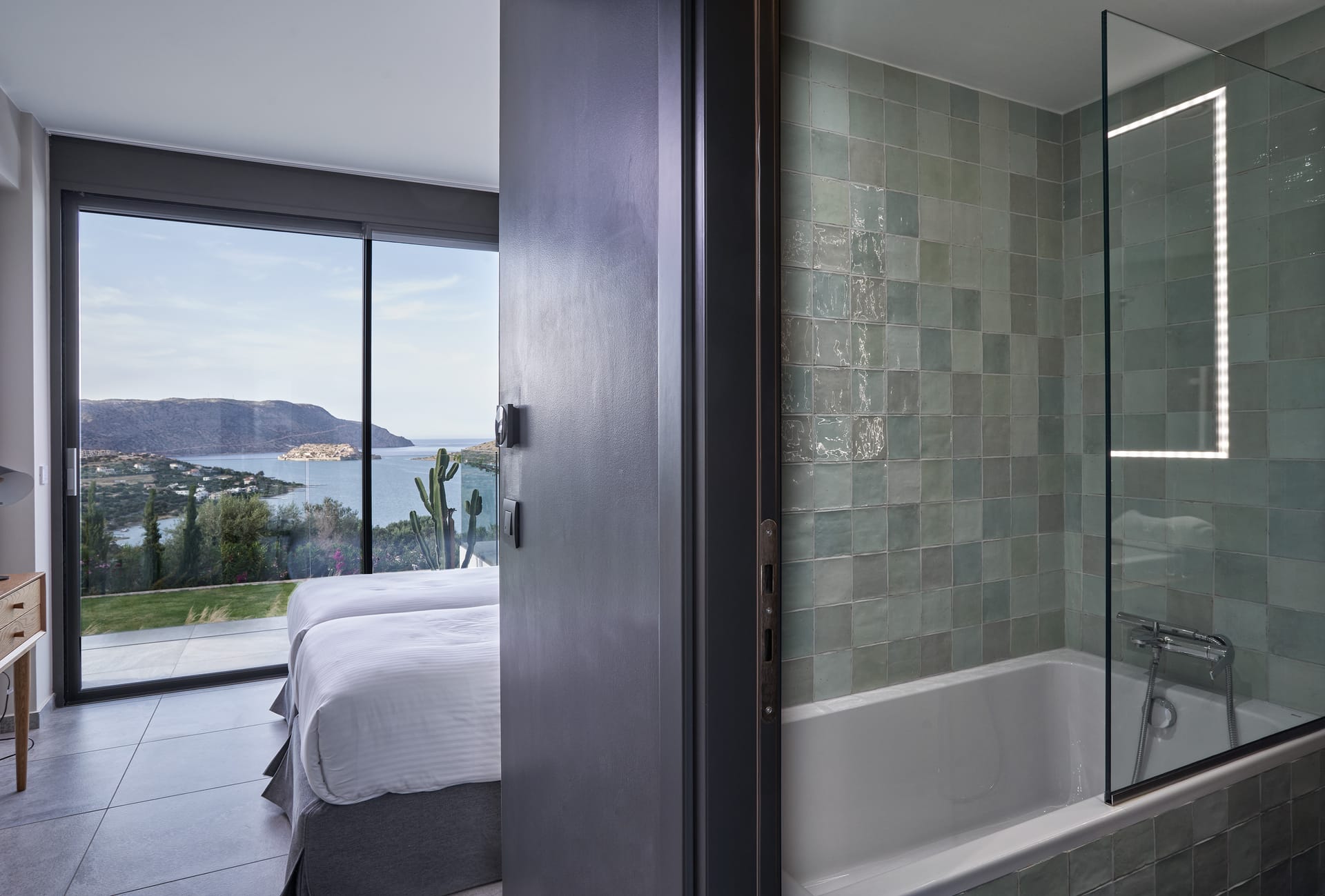 The villa was designed by a renowned French architect. You will feel at the end of the world (no direct neighborhood) while being only a few minutes away from the famous village of Elounda. It has many terraces equipped with adjustable bioclimatic pergolas and offers breathtaking views of the UNESCO heritage island of Spinalonga, the bay of Mirabello, and the mountains of Sitia in the background. The bay windows allow you to enjoy this incredible landscape and give the impression of sailing on the turquoise waters of the Aegean Sea.
