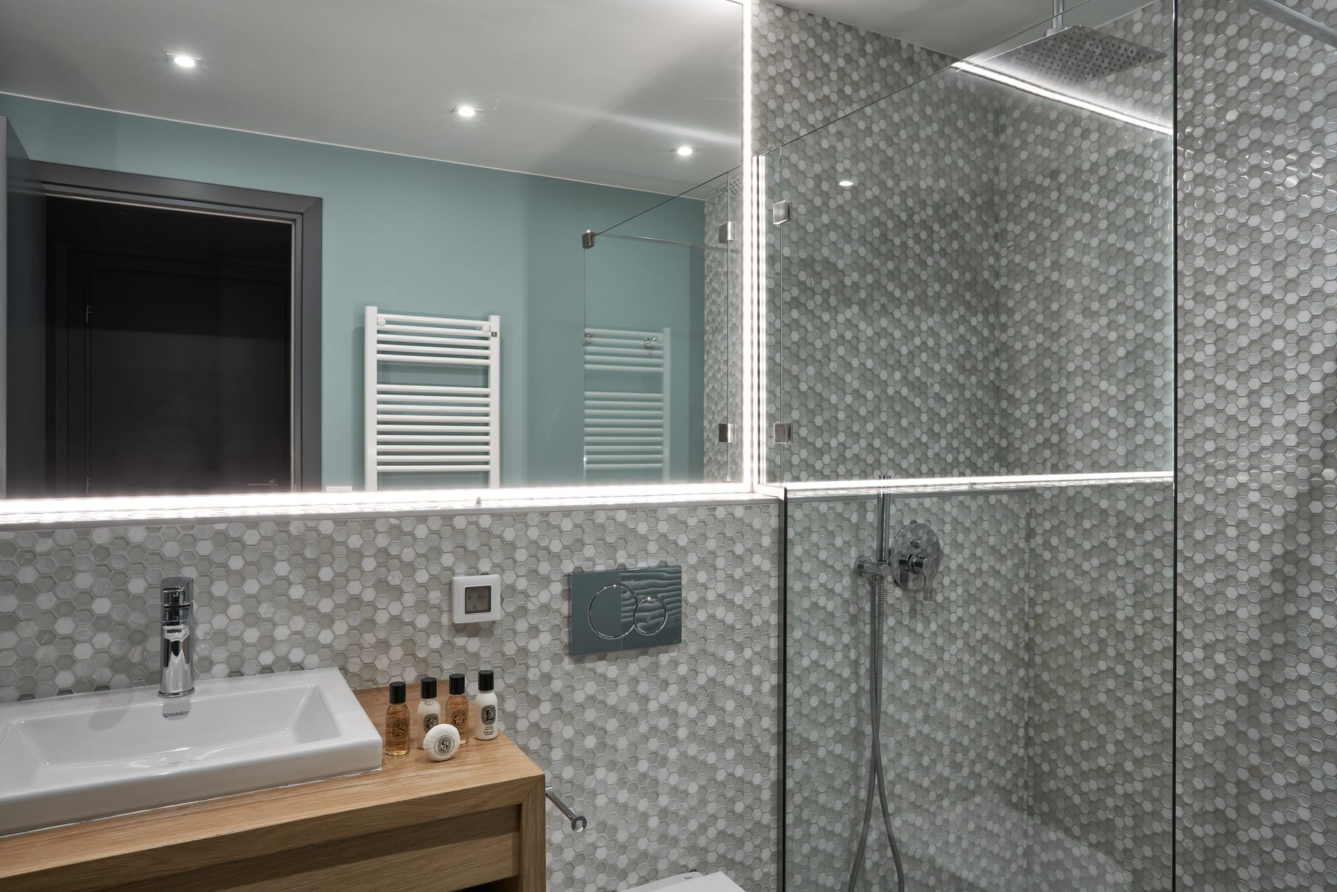 The house offers all the comforts with perfect insulation (acoustic and thermal) and a very functional plan guaranteeing privacy and tranquility for everyone. It is organized into three separate wings (two on the upper floor and one on the lower floor), each wing comprising 2 bedrooms. Thus, the villa can easily accommodate three families. Each of the 6 rooms has its own shower/bath and offers an incredible view of the island of Spinalonga or the beautiful bay of Elounda.
