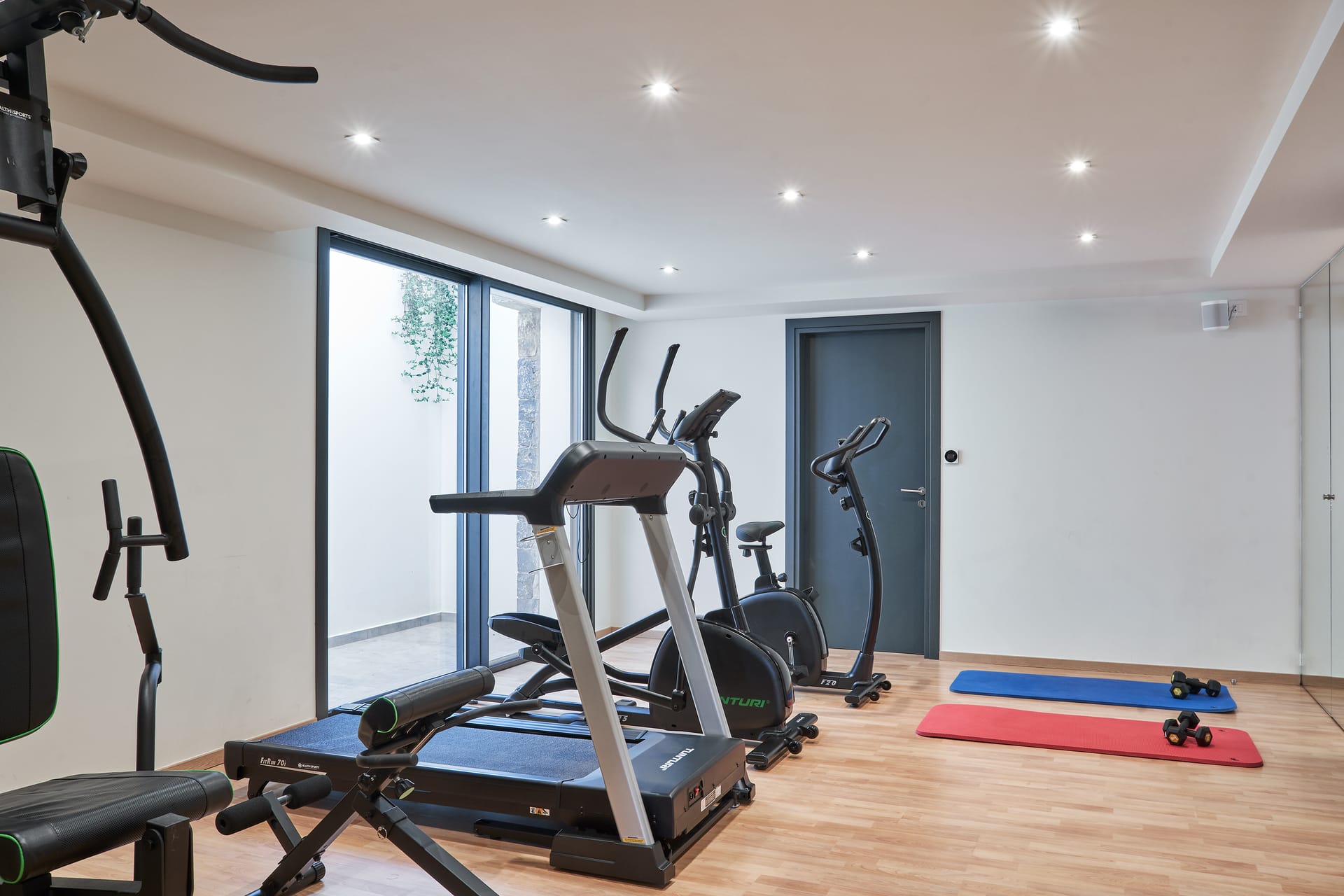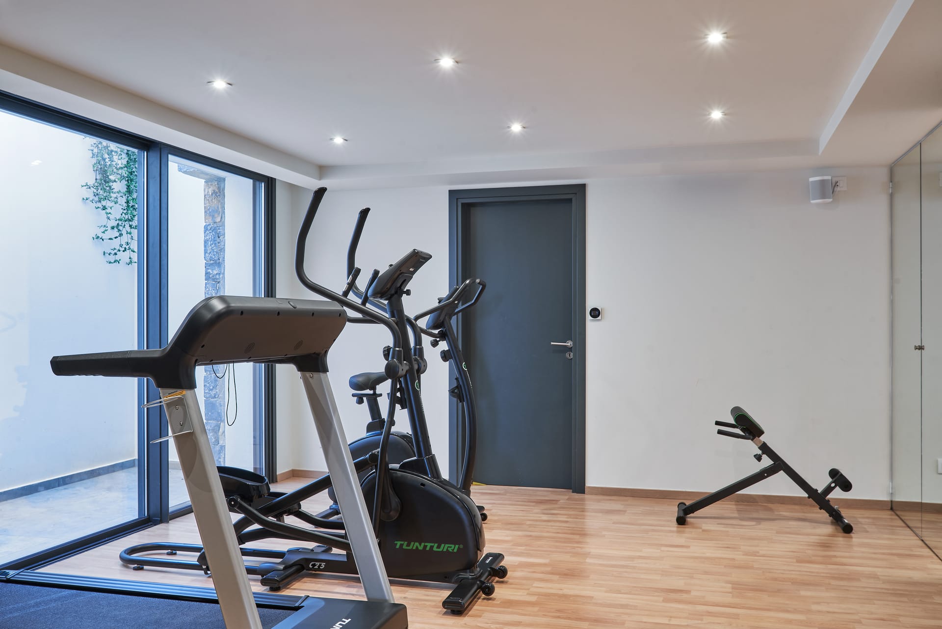 For those who want to stay in shape, you can enjoy a fully equipped gym, while watching the news or listening to music. The villa is also equipped with a cinema room with incredible sound and image quality. For music lovers, the house has sound speakers in every room and around the pool. Finally, for families with young children, we have all the necessary equipment (cots, high chairs, baby cook...)