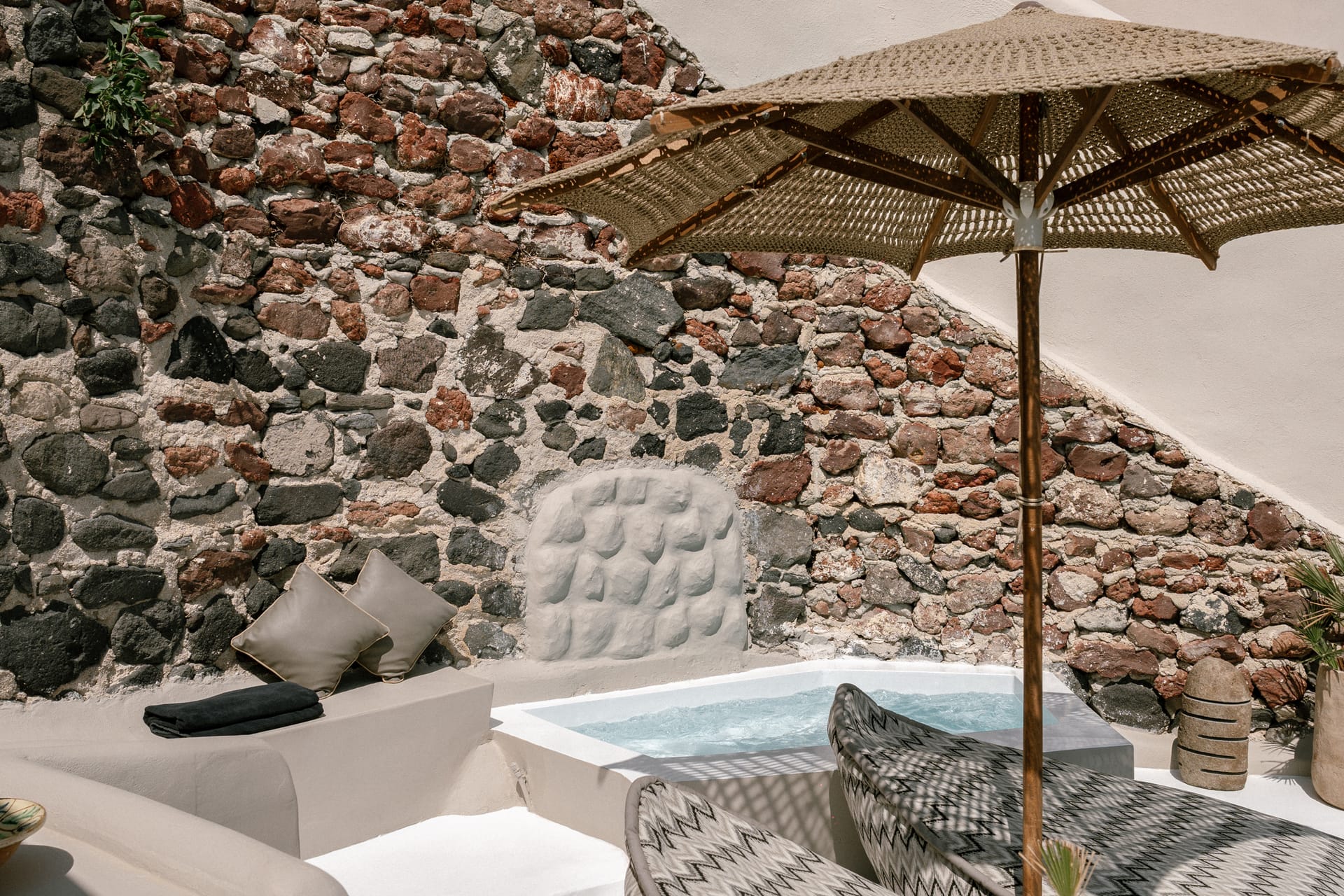 Outdoor Hot Tub: Relax in your private outdoor hot tub, perfect for a soothing soak while enjoying the panoramic caldera view .
