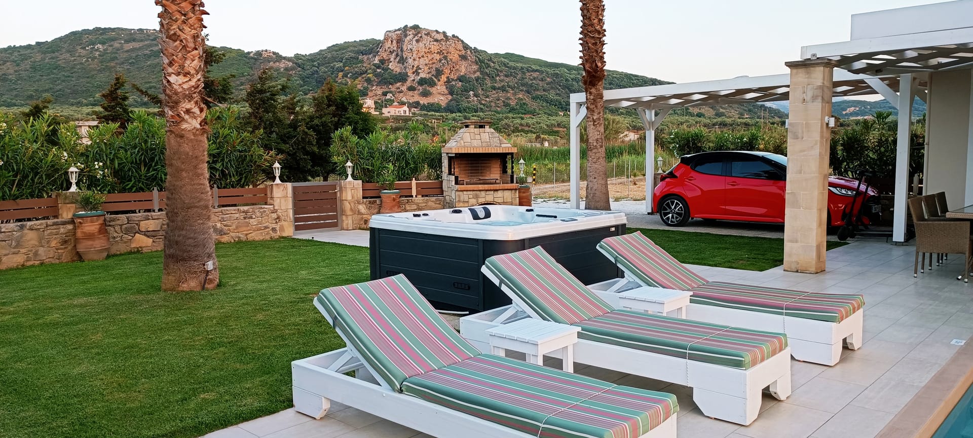 Villa Alexandros is a luxurious villa 130 square meters with unique minimal architectural design, located at Nopigia 5 km east of Kissamos town and 30km west of Chania town. It is a marvelous luxurious property that offers exceptional accommodation over two levels with the indoor modern decoration but also with the outdoor relaxing area. The outdoor area has a private pool 30m2, an open-air living room with sofas, barbeque facilities with an open dining area & a beautiful garden with flowers and grass lawn.