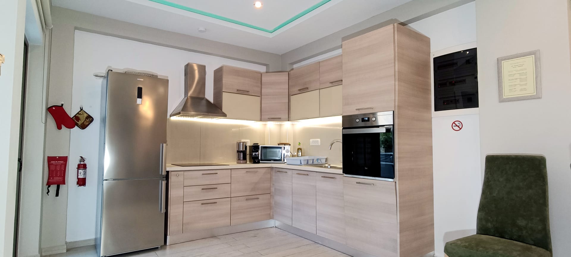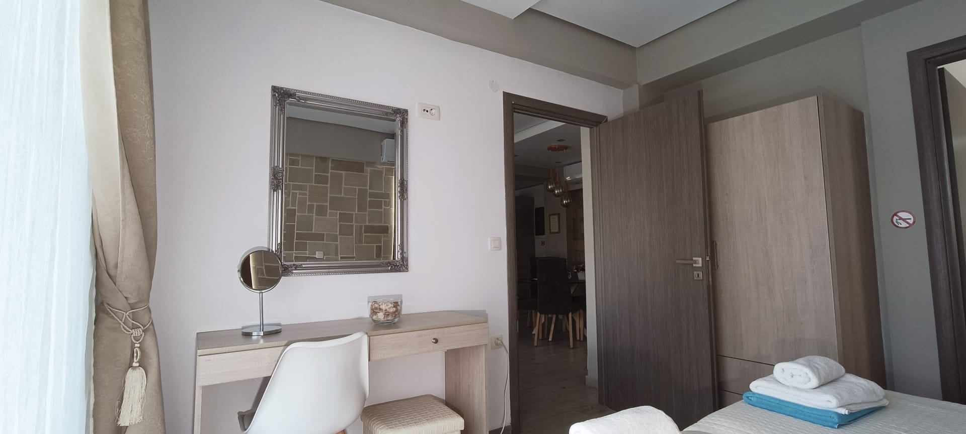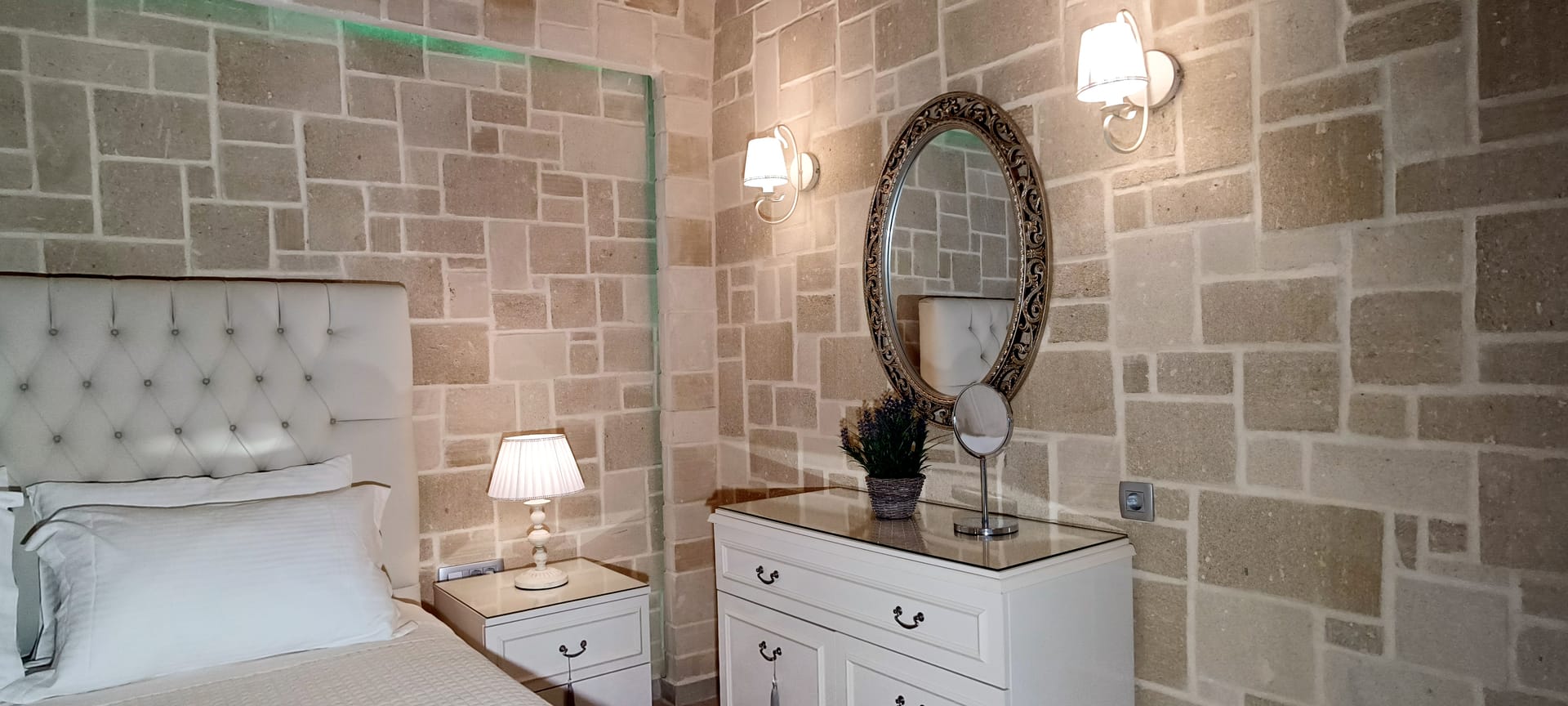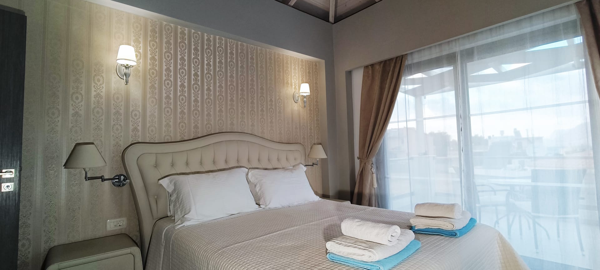 It can accommodate 5 guests in the two luxurious suite bedrooms and a bed sofa. On the lower level there is a modern furnished living room with a dining table with the lounge next to the fireplace with pool and garden view. A large 43’’ satellite led TV with DVD player and cd/radio player, a fully functional kitchen with fridge/freezer, oven, microwave, dishwasher, toaster, electric kettle, coffee machines and the all the necessary kitchen utensils . Also in the low level there is a bedroom with twin beds with hypoallergenic antistress mattresses offered with a private bathroom with jacuzzi shower. On the first floor is the master suite bedroom with a king size bed with hypoallergenic antistress mattress, a private bathroom with Jacuzzi shower, a led 32’’ satellite TV, a safety deposit box and a covered balcony with pool, garden and sea view. Also provided washing machine, air-conditioning in all rooms, free wireless internet, iron equipment. This is truly a lovely villa to spend memorable holidays in one of the most exquisite areas of Crete , it is ideal destination for families and group of friends who are looking for an ultimate experience of relaxation combined with a unique hospitality. The location of the villa is also perfect for ecotourism, outdoor activities and for exploring the beauties of Crete. The closest sandy beach with sun beds is only 200m away from the villa.