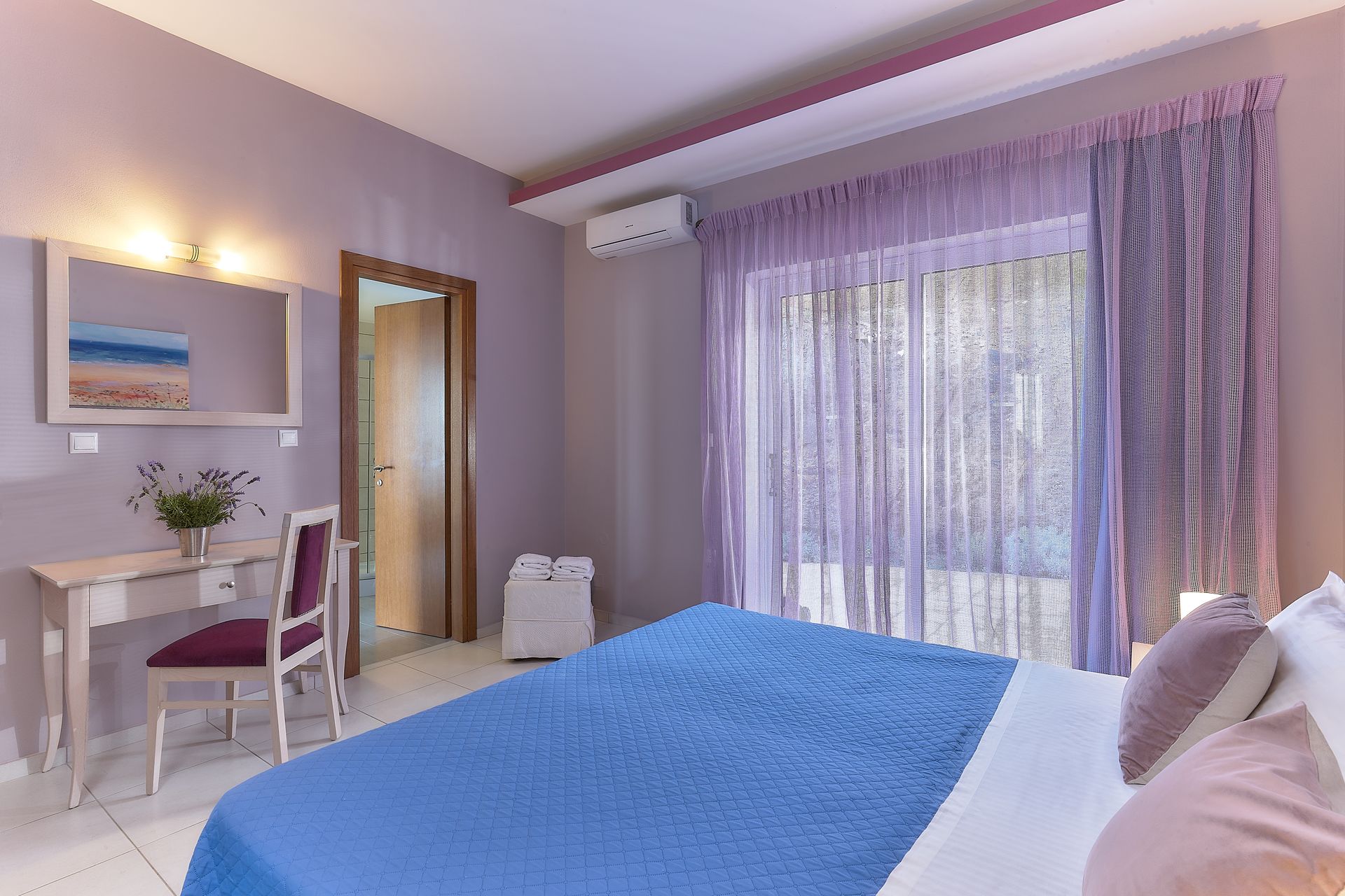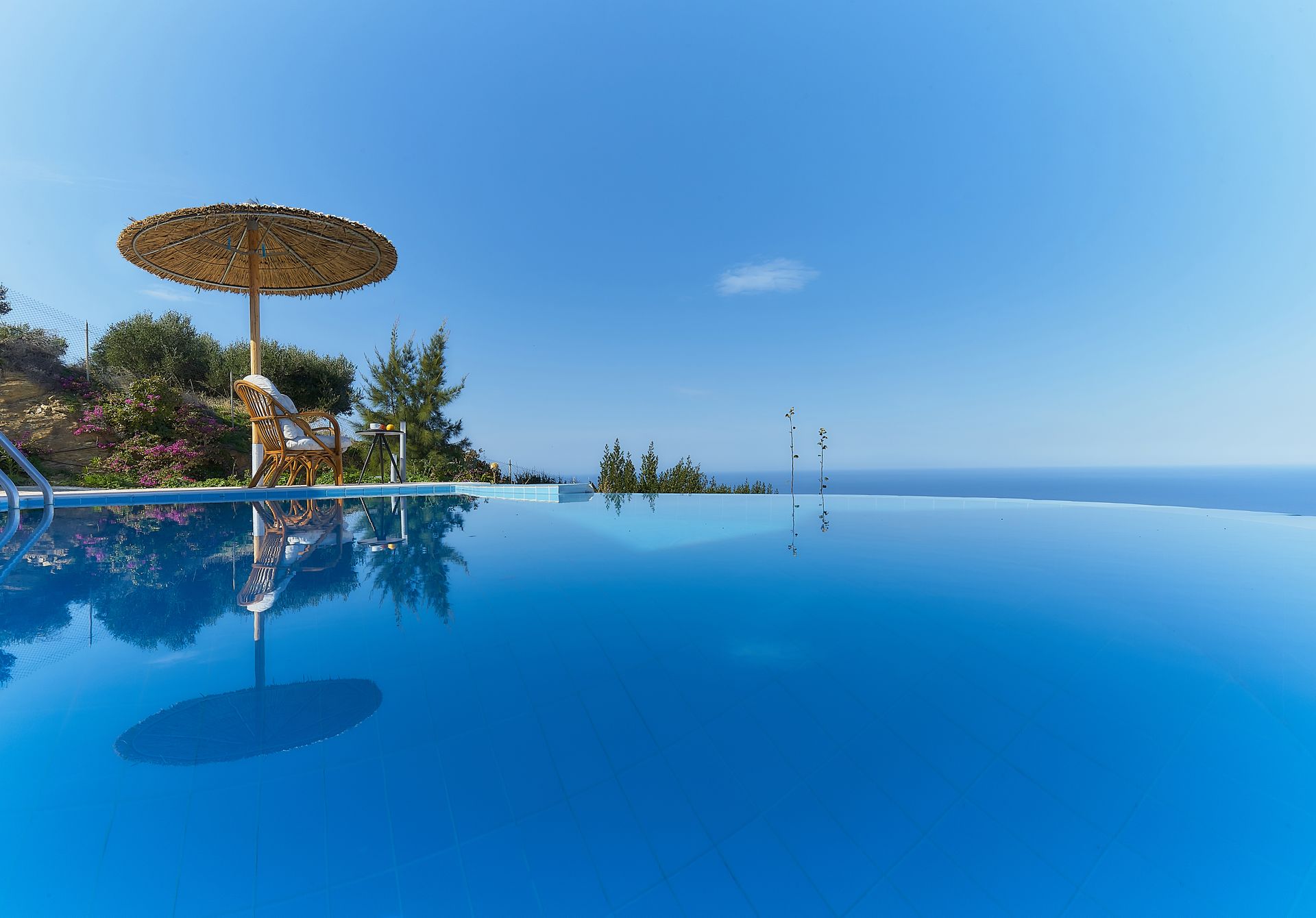 NYMPHES villas, with a private pool each one, are located on the top of the complex, in a private area, with a breathtaking view. Our guests say “you can catch the stars!!!”.