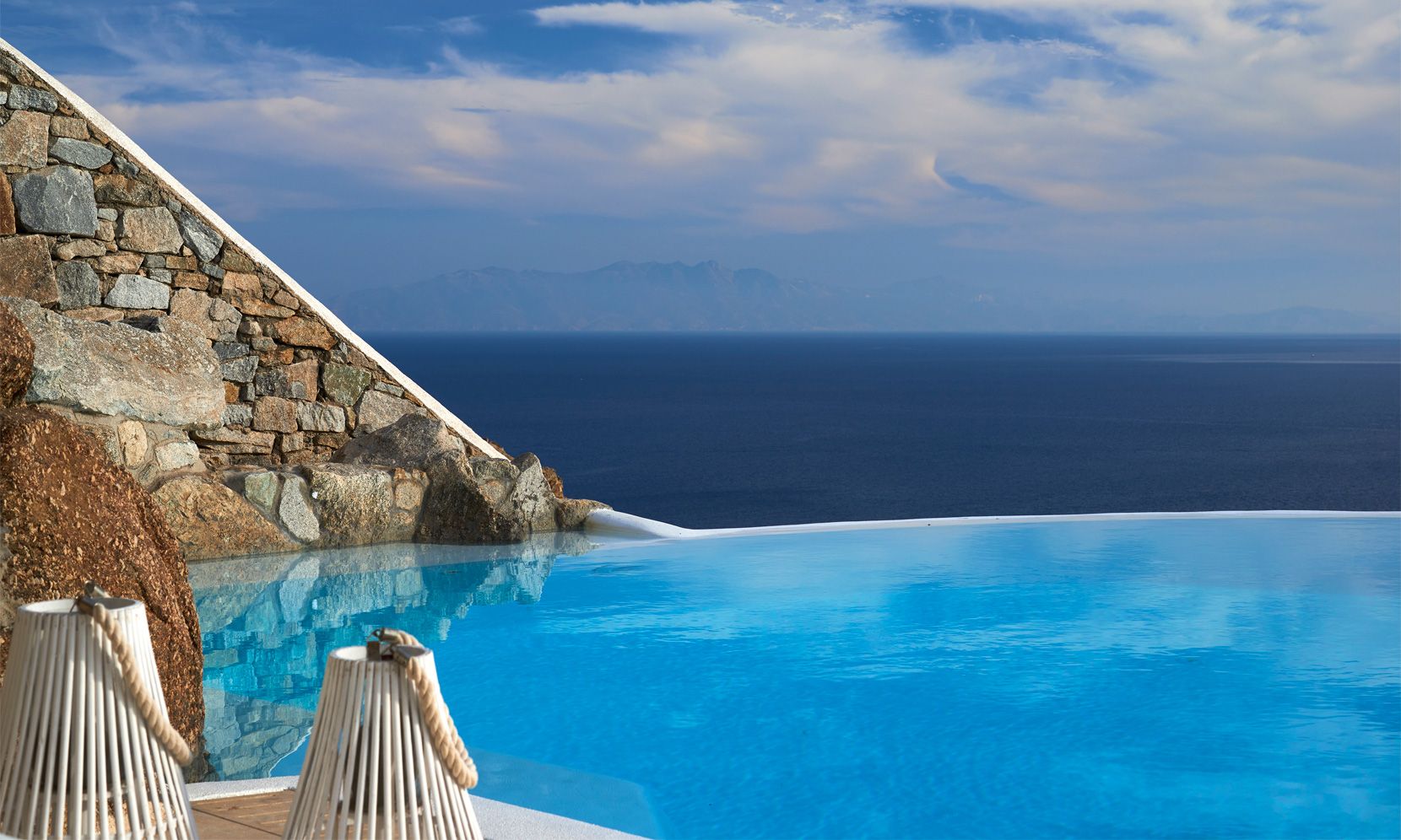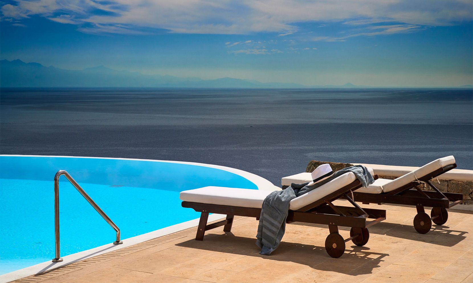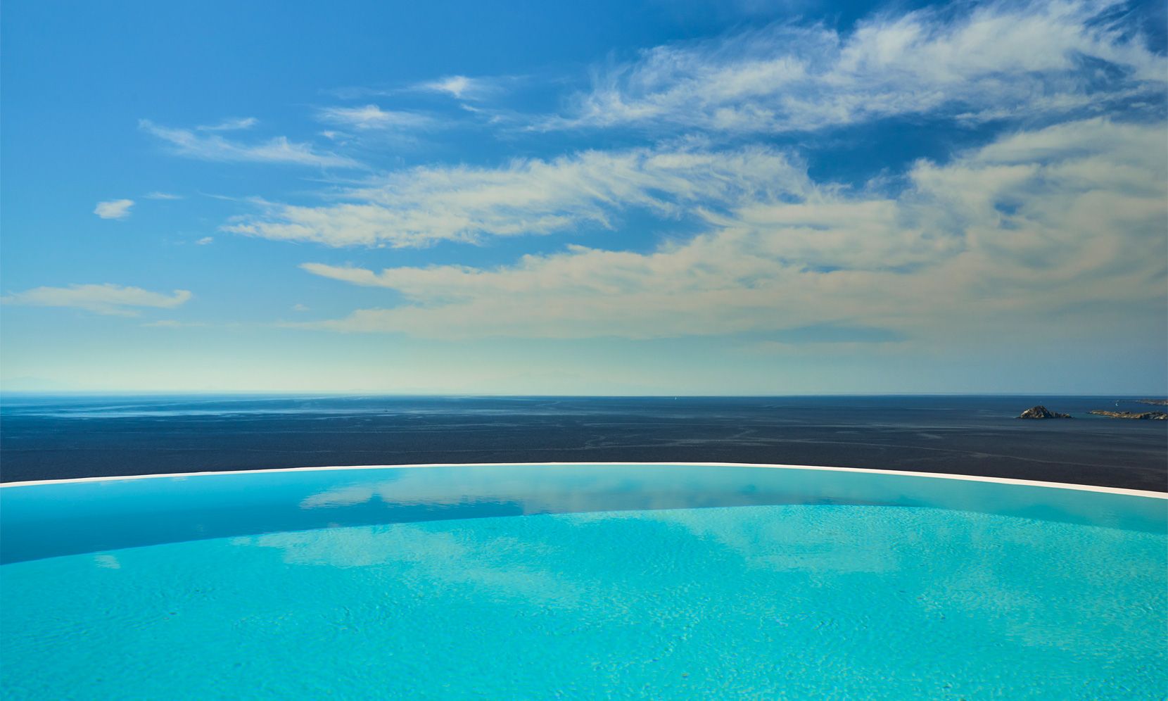 The outdoor area with the private swimming pool with jacuzzi and sunbeds is perfectly harmonized with the environment and creates a peaceful experience through the accommodation while offering breathtaking views over the Cretan Sea.